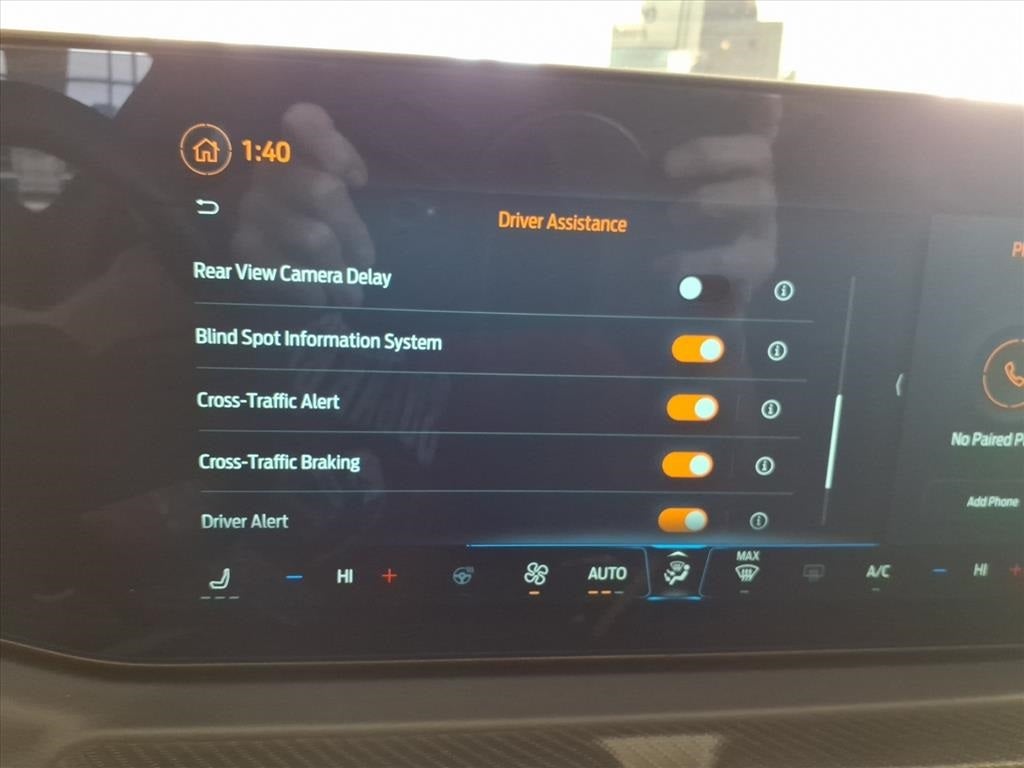 4-Wheel Disc Brakes, ABS brakes, Air Conditioning, Alloy wheels, AM/FM Stereo, Auto High-beam Headlights, Automatic temperature control, Brake assist, Bumpers: body-color, Compass, Delay-off headlights, Driver door bin, Driver vanity mirror, Dual front impact airbags, Dual front side impact airbags, Electronic Stability Control, Emergency communication system: 911 Assist, Exterior Parking Camera Rear, Four wheel independent suspension, Front anti-roll bar, Front Bucket Seats, Front Center Armrest, Front dual zone A/C, Front reading lights, Fully automatic headlights, Illuminated entry, Knee airbag, Leather Shift Knob, Low tire pressure warning, Occupant sensing airbag, Outside temperature display, Overhead airbag, Overhead console, Panic alarm, Passenger door bin, Passenger vanity mirror, Power door mirrors, Power steering, Power windows, Radio data system, Rain sensing wipers, Rear anti-roll bar, Rear Parking Sensors, Rear window defroster, Remote keyless entry, Speed control, Speed-sensing steering, Speed-Sensitive Wipers, Split folding rear seat, Sport steering wheel, Steering wheel mounted audio controls, SYNC 4, Tachometer, Telescoping steering wheel, Tilt steering wheel, Traction control, Trip computer, Variably intermittent wipers, Voltmeter, Wheels: 18 x 8 Painted Shadow Silver Cast Alum.