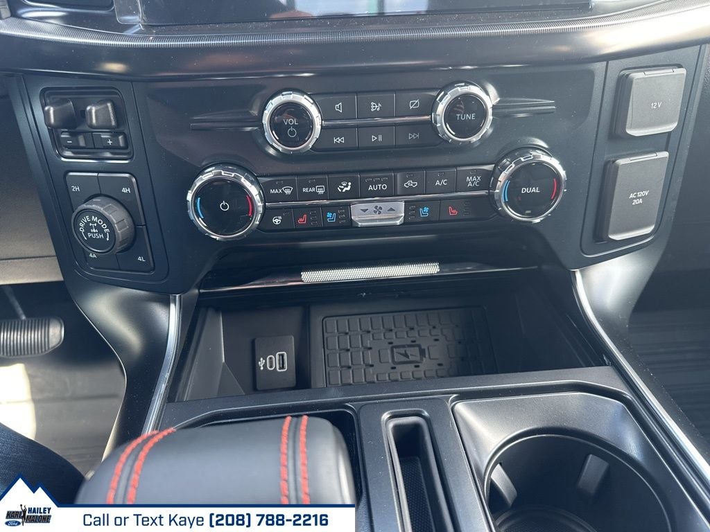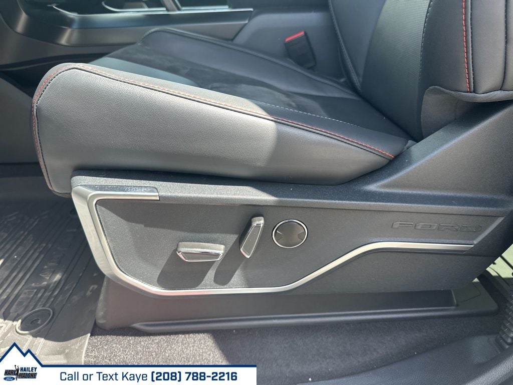 4WD, 14 Speakers, 17 Cast Aluminum Wheels, 4-Wheel Disc Brakes, ABS brakes, Adjustable pedals, Air Conditioning, Alloy wheels, AM/FM radio: SiriusXM with 360L, Auto High-beam Headlights, Auto tilt-away steering wheel, Auto-dimming door mirrors, Auto-dimming Rear-View mirror, Automatic temperature control, Brake assist, Bumpers: body-color, Compass, Delay-off headlights, Driver door bin, Driver vanity mirror, Dual front impact airbags, Dual front side impact airbags, Electronic Locking with 4.10 Axle Ratio, Electronic Stability Control, Emergency communication system: SYNC 4 911 Assist, Ford Connectivity Package (1-Year Included), Front anti-roll bar, Front Bucket Seats, Front Center Armrest, Front dual zone A/C, Front fog lights, Front reading lights, Front wheel independent suspension, Fully automatic headlights, Garage door transmitter, Heated door mirrors, Heated front seats, Heated rear seats, Heated steering wheel, Illuminated entry, Internet access capable: 5G Modem - Ford Connectivity Package, Lane Departure Warning System, Leather steering wheel, Leather Trimmed Seats, Low tire pressure warning, Memory seat, Navigation system: Connected Navigation, Occupant sensing airbag, Outside temperature display, Overhead airbag, Overhead console, Panic alarm, Passenger door bin, Passenger vanity mirror, Pedal memory, Power door mirrors, Power driver seat, Power passenger seat, Power steering, Power windows, Radio data system, Radio: B&O Unleashed Sound System by Bang & Olufsen, Rain sensing wipers, Rear reading lights, Rear step bumper, Rear window defroster, Remote keyless entry, Security system, Speed control, Speed-sensing steering, Split folding rear seat, Steering wheel memory, Steering wheel mounted audio controls, SYNC 4 with Enhanced Voice Recognition, Tachometer, Telescoping steering wheel, Tilt steering wheel, Traction control, Trip computer, Turn signal indicator mirrors, Variably intermittent wipers, Ventilated front seats, 4WD.