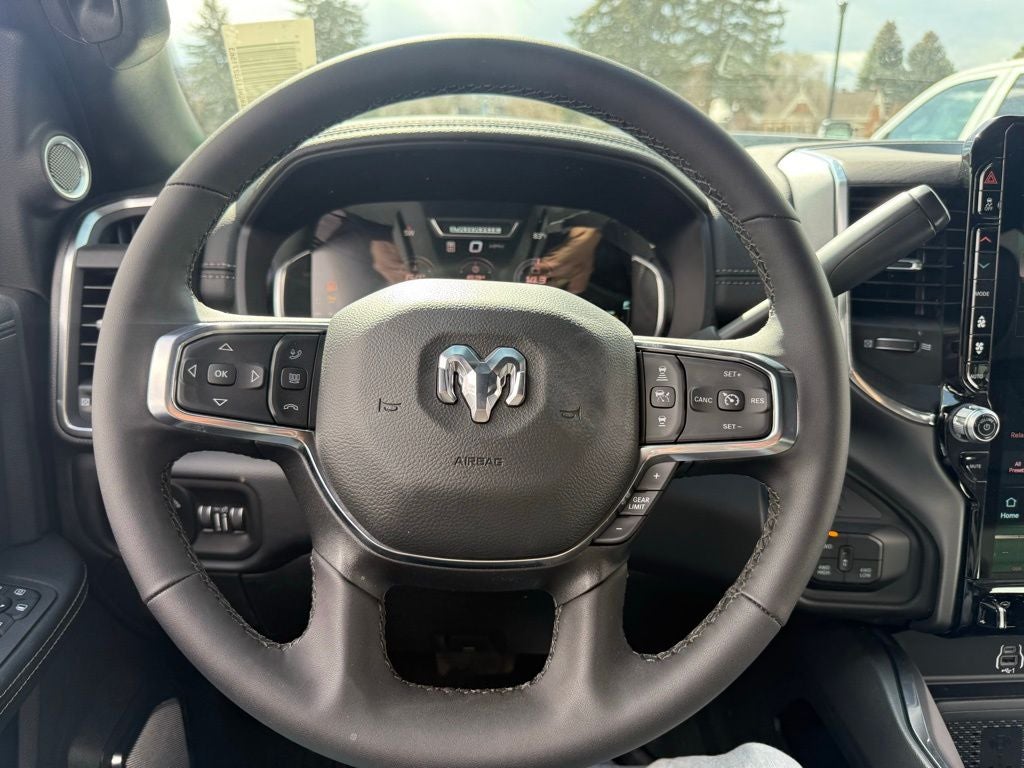 #1 Seat Foam Cushion, 10 Speakers, 115V Auxiliary Rear Power Outlet, 14.4 Touchscreen Display, 17 Speaker Harman/Kardon Premium Sound, 2 Way Rear Headrest Seat, 3.42 Axle Ratio, 4 Way Front Headrests, 4-Wheel Disc Brakes, 4G LTE Wi-Fi Hot Spot, ABS brakes, Active Lane Management System, Adaptive Steering System, Air Conditioning, Alexa Built-in, Alloy wheels, AM/FM radio: SiriusXM with 360L, Anti-Spin Differential Rear Axle, Apple CarPlay, Apple CarPlay/Android Auto, Auto Adjust in Reverse Exterior Mirrors, Auto Dim Exterior Mirror, Auto High Beam Headlamp Control, Auto Level Rear Air Suspension, Auto Power-Folding Mirrors, Auto-Dimming Exterior Passenger Mirror, Auto-dimming Rear-View mirror, Automatic temperature control, Black Exterior Truck Badging, Black Wheel Center Hub, Body Color Grille Surround, Brake assist, Bucket Seats, Bumpers: body-color, Center Stop Lamp with Cargo View Camera, Chrome Exterior Mirrors, Cold Weather Group, Compass, Connected Travel and Traffic Services, Connectivity - US/Canada, Delay-off headlights, Digital Rearview Mirror, Disassociated Touchscreen Display, Driver door bin, Driver vanity mirror, Drowsy Driver Detection, Dual front impact airbags, Dual front side impact airbags, Dual Wireless Charging Pad, Electronic Stability Control, Emergency Vehicle Alert System (EVAS), Engine Block Heater, Exterior Mirrors Courtesy Lamps, Exterior Mirrors with Heating Element, Exterior Mirrors with Memory, Exterior Mirrors with Supplemental Signals, Foam Bottle Insert (door Trim Panel), For Details, Visit DriveUconnect.com, For More Info, Call 800-643-2112, Forward and Reverse Utility Lights, Front anti-roll bar, Front Center Armrest w/Storage, Front dual zone A/C, Front fog lights, Front License Plate Bracket, Front reading lights, Front Seat Back Map Pockets, Full Length Upgraded Floor Console, Fully automatic headlights, Garage door transmitter, Global Telematics Box Module, Gloss Black Grille Billets/Accents, Google Android Auto, GPS Antenna Input, GPS Navigation, HD Radio, Heated door mirrors, Heated Front Seats, Heated front seats, Heated Steering Wheel, Heated steering wheel, High Back Seats, Illuminated entry, Integrated Voice Command with Bluetooth®, Laramie Level 2 Plus Equipment Group, Leather Trim 40/20/40 Bench Seat, Leather Trimmed Bucket Seats, LED Bed Lighting, Low tire pressure warning, Manufacturer's Statement of Origin, Mirror Running Lights, MOPAR Deployable Bed Step, MOPAR Front and Rear Rubber Floor Mats, MOPAR Spray in Bedliner, MOPAR Trailer Camera Wiring with No Camera, MOPAR Winter Front Grille Cover, Navigation System, Night Edition, Occupant sensing airbag, Off-Road Information Pages, Outside temperature display, Overhead airbag, Overhead console, Panic alarm, ParkView Rear Back-Up Camera, Passenger door bin, Passenger vanity mirror, Power 2-Way Driver Lumbar Adjust, Power 2-Way Passenger Lumbar Adjust, Power Adjust 8-Way Driver Seat, Power Adjust 8-Way Front Passenger Seat, Power Adjust Mirrors, Power Adjustable Convex Aux Mirrors, Power Adjustable Pedals with Memory, Power Deployable Running Boards, Power door mirrors, Power driver seat, Power Heated Fold Telescope Mirrors w/Memory, Power passenger seat, Power steering, Power Sunroof, Power Telescoping Mirrors, Power windows, Quick Order Package 24H Laramie, Radio data system, Radio: Uconnect 5 Nav with 14.4 Display, Radio: Uconnect 5 Navigation with 12.0 Display, Rain Sensitive Windshield Wipers, Rear 60/40 Folding Seat, Rear anti-roll bar, Rear reading lights, Rear seat center armrest, Rear step bumper, Rear window defroster, Remote keyless entry, Remote Tailgate Release, Security system, Selectable Tire Fill Alert, SiriusXM Radio Service, SiriusXM with 360L, Speed control, Split folding rear seat, Sport Performance Hood, Steering wheel mounted audio controls, Surround View Camera S Price includes: $1000 - 2026 National Bonus Cash . Exp. 04/30/2