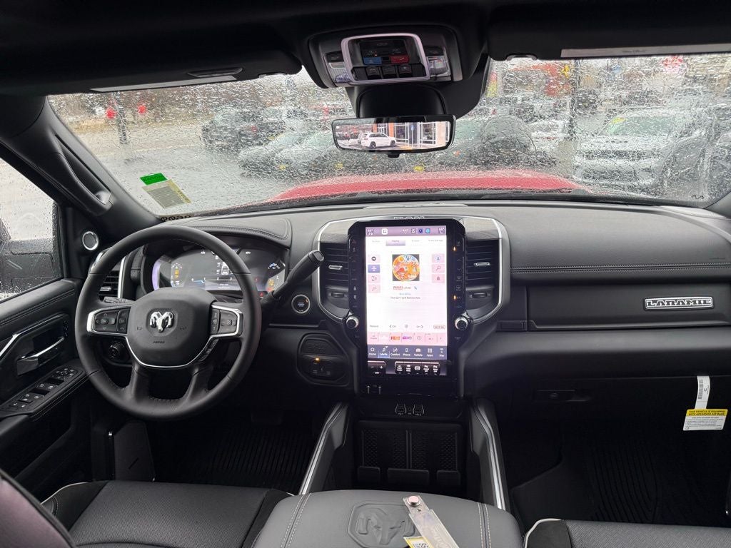 #1 Seat Foam Cushion, 10 Speakers, 115V Auxiliary Rear Power Outlet, 14.4 Touchscreen Display, 17 Speaker Harman/Kardon Premium Sound, 2 Way Rear Headrest Seat, 3.42 Axle Ratio, 4 Way Front Headrests, 4-Wheel Disc Brakes, 4G LTE Wi-Fi Hot Spot, ABS brakes, Active Lane Management System, Adaptive Steering System, Air Conditioning, Alexa Built-in, Alloy wheels, AM/FM radio: SiriusXM with 360L, Anti-Spin Differential Rear Axle, Apple CarPlay, Apple CarPlay/Android Auto, Auto Adjust in Reverse Exterior Mirrors, Auto Dim Exterior Mirror, Auto High Beam Headlamp Control, Auto Level Rear Air Suspension, Auto Power-Folding Mirrors, Auto-Dimming Exterior Passenger Mirror, Auto-dimming Rear-View mirror, Automatic temperature control, Black Exterior Truck Badging, Black Wheel Center Hub, Body Color Grille Surround, Brake assist, Bucket Seats, Bumpers: body-color, Center Stop Lamp with Cargo View Camera, Chrome Exterior Mirrors, Cold Weather Group, Compass, Connected Travel and Traffic Services, Connectivity - US/Canada, Delay-off headlights, Digital Rearview Mirror, Disassociated Touchscreen Display, Driver door bin, Driver vanity mirror, Drowsy Driver Detection, Dual front impact airbags, Dual front side impact airbags, Dual Wireless Charging Pad, Electronic Stability Control, Emergency Vehicle Alert System (EVAS), Engine Block Heater, Exterior Mirrors Courtesy Lamps, Exterior Mirrors with Heating Element, Exterior Mirrors with Memory, Exterior Mirrors with Supplemental Signals, Foam Bottle Insert (door Trim Panel), For Details, Visit DriveUconnect.com, For More Info, Call 800-643-2112, Forward and Reverse Utility Lights, Front anti-roll bar, Front Center Armrest w/Storage, Front dual zone A/C, Front fog lights, Front License Plate Bracket, Front reading lights, Front Seat Back Map Pockets, Full Length Upgraded Floor Console, Fully automatic headlights, Garage door transmitter, Global Telematics Box Module, Gloss Black Grille Billets/Accents, Google Android Auto, GPS Antenna Input, GPS Navigation, HD Radio, Heated door mirrors, Heated Front Seats, Heated front seats, Heated Steering Wheel, Heated steering wheel, High Back Seats, Illuminated entry, Integrated Voice Command with Bluetooth®, Laramie Level 2 Plus Equipment Group, Leather Trim 40/20/40 Bench Seat, Leather Trimmed Bucket Seats, LED Bed Lighting, Low tire pressure warning, Manufacturer's Statement of Origin, Mirror Running Lights, MOPAR Deployable Bed Step, MOPAR Front and Rear Rubber Floor Mats, MOPAR Spray in Bedliner, MOPAR Trailer Camera Wiring with No Camera, MOPAR Winter Front Grille Cover, Navigation System, Night Edition, Occupant sensing airbag, Off-Road Information Pages, Outside temperature display, Overhead airbag, Overhead console, Panic alarm, ParkView Rear Back-Up Camera, Passenger door bin, Passenger vanity mirror, Power 2-Way Driver Lumbar Adjust, Power 2-Way Passenger Lumbar Adjust, Power Adjust 8-Way Driver Seat, Power Adjust 8-Way Front Passenger Seat, Power Adjust Mirrors, Power Adjustable Convex Aux Mirrors, Power Adjustable Pedals with Memory, Power Deployable Running Boards, Power door mirrors, Power driver seat, Power Heated Fold Telescope Mirrors w/Memory, Power passenger seat, Power steering, Power Sunroof, Power Telescoping Mirrors, Power windows, Quick Order Package 24H Laramie, Radio data system, Radio: Uconnect 5 Nav with 14.4 Display, Radio: Uconnect 5 Navigation with 12.0 Display, Rain Sensitive Windshield Wipers, Rear 60/40 Folding Seat, Rear anti-roll bar, Rear reading lights, Rear seat center armrest, Rear step bumper, Rear window defroster, Remote keyless entry, Remote Tailgate Release, Security system, Selectable Tire Fill Alert, SiriusXM Radio Service, SiriusXM with 360L, Speed control, Split folding rear seat, Sport Performance Hood, Steering wheel mounted audio controls, Surround View Camera S Price includes: $1000 - 2026 National Bonus Cash . Exp. 04/30/2