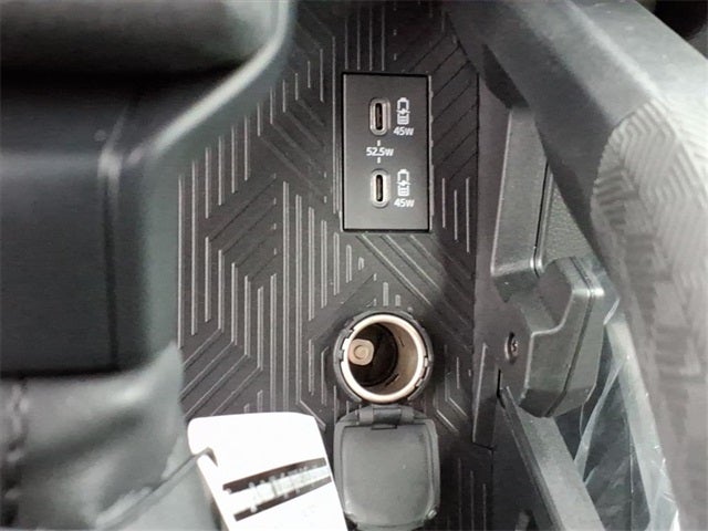 Dual illuminated rear center console-mounted USB charging ports.