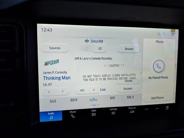 - SYNC 4 -inc: 12" LCD capacitive touchscreen w/swipe capability, wireless phone connection, cloud connected, 911 Assist, wireless Apple CarPlay and Android Auto compatibility, digital owner's manual and conversational voice command recognition