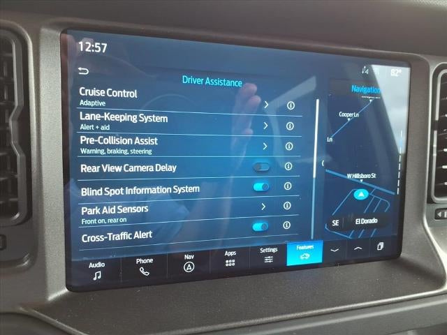 4-Wheel Disc Brakes, 4.7 Axle Ratio, 7 Speakers, ABS brakes, Air Conditioning, Alloy wheels, AM/FM radio: SiriusXM with 360L, AM/FM Stereo, Auto High-beam Headlights, Auto-dimming Rear-View mirror, Brake assist, Compass, Connected Navigation, Delay-off headlights, Driver door bin, Driver vanity mirror, Dual front impact airbags, Dual front side impact airbags, Electronic Stability Control, Emergency communication system: 911 Assist, Exterior Parking Camera Rear, Front anti-roll bar, Front Bucket Seats, Front Center Armrest, Front fog lights, Front reading lights, Front wheel independent suspension, Fully automatic headlights, Heated door mirrors, Heated front seats, Heated steering wheel, Illuminated entry, Integrated roll-over protection, Leather Shift Knob, Low tire pressure warning, Marine Grade Vinyl Heated Bucket Seats, Occupant sensing airbag, Outside temperature display, Overhead airbag, Overhead console, Panic alarm, Passenger door bin, Passenger vanity mirror, Power door mirrors, Power steering, Power windows, Radio data system, Remote keyless entry, Security system, SiriusXM w/360L, Speed control, Split folding rear seat, Steering wheel mounted audio controls, SYNC 4, Tachometer, Telescoping steering wheel, Tilt steering wheel, Traction control, Trip computer, Variably intermittent wipers, Voltmeter.