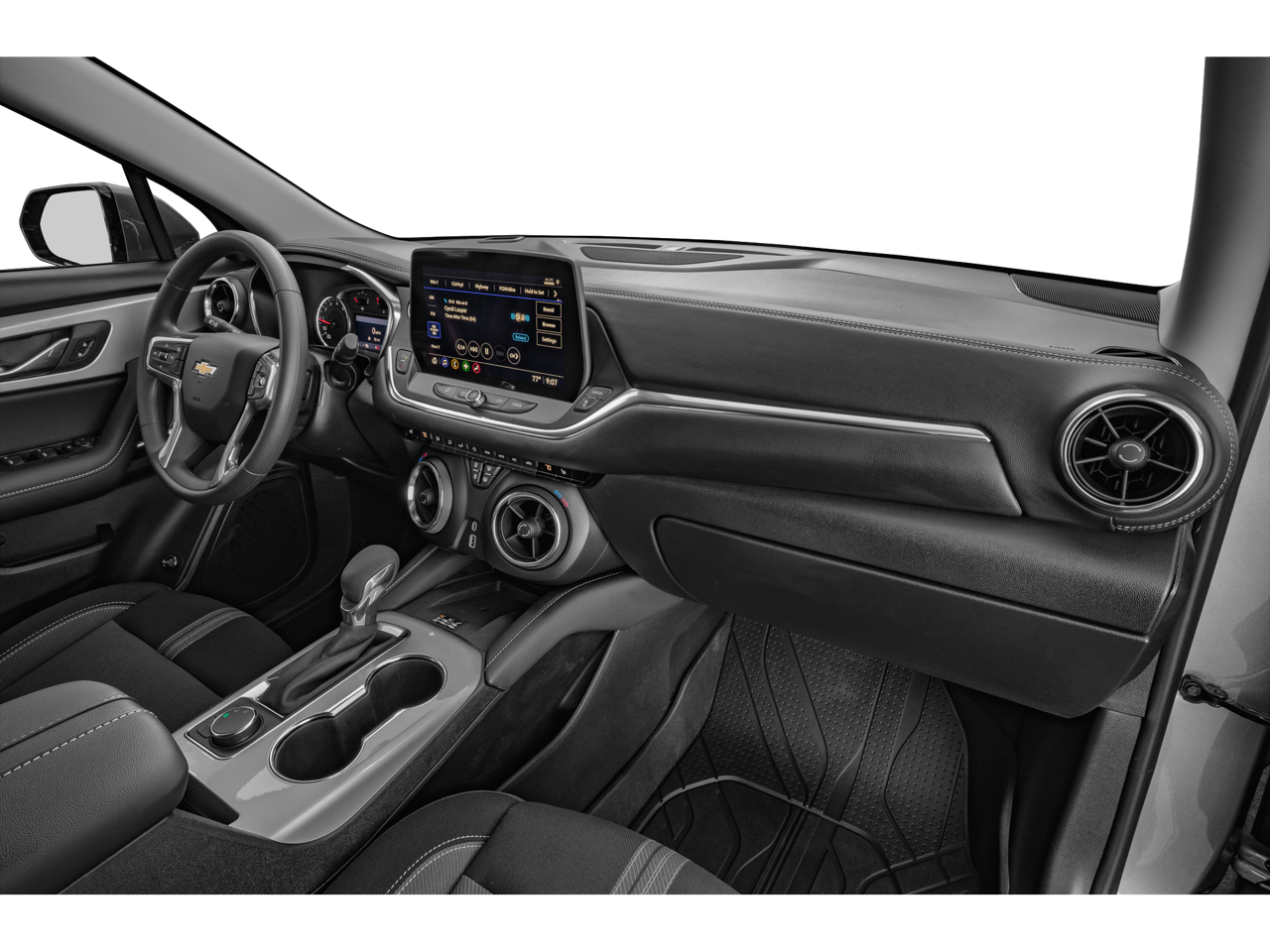 4-Wheel Disc Brakes, 6-Way Power Front Passenger Seat Adjuster, 8 Speakers, 8-Way Power Driver Seat Adjuster, ABS brakes, Air Conditioning, Alloy wheels, AM/FM radio: SiriusXM with 360L, Apple CarPlay/Android Auto, Auto High-beam Headlights, Auto-dimming door mirrors, Auto-dimming Rear-View mirror, Automatic temperature control, Bose Premium 8-Speaker Audio System Feature, Brake assist, Bumpers: body-color, Child-Seat-Sensing Airbag, Compass, Delay-off headlights, Driver door bin, Driver vanity mirror, Dual front impact airbags, Dual front side impact airbags, Electronic Stability Control, Emergency communication system: OnStar and Chevrolet connected services capable, Four wheel independent suspension, Front anti-roll bar, Front Bucket Seats, Front Center Armrest, Front dual zone A/C, Front reading lights, Fully automatic headlights, Garage door transmitter, Heated door mirrors, Heated Driver and Front Passenger Seats, Heated front seats, Heated steering wheel, Illuminated entry, Knee airbag, Leather Shift Knob, Leather steering wheel, Low tire pressure warning, Navigation System, Occupant sensing airbag, Outside temperature display, Overhead airbag, Overhead console, Panic alarm, Passenger door bin, Passenger vanity mirror, Perforated Leather-Appointed Seat Trim, Power door mirrors, Power Driver Lumbar Control, Power driver seat, Power Liftgate, Power passenger seat, Power steering, Power windows, Preferred Equipment Group 1RS, Premium audio system: Chevrolet Infotainment 3 Premium, Radio data system, Radio: Chevrolet Infotainment 3 Premium System, Rear anti-roll bar, Rear reading lights, Rear seat center armrest, Rear window defroster, Rear window wiper, Remote keyless entry, Ride and Handling Suspension, Security system, SiriusXM with 360L Trial Subscription, Speed control, Speed-sensing steering, Split folding rear seat, Spoiler, Steering wheel mounted audio controls, Stop-Start Engine Control System, Tachometer, Telescoping steering wheel, Tilt steering wheel, Traction control, Trip computer, Turn signal indicator mirrors, Variably intermittent wipers, Voltmeter, Wheels: : 20 Technical Gray Aluminum, Wireless Apple CarPlay/Wireless Android Auto.