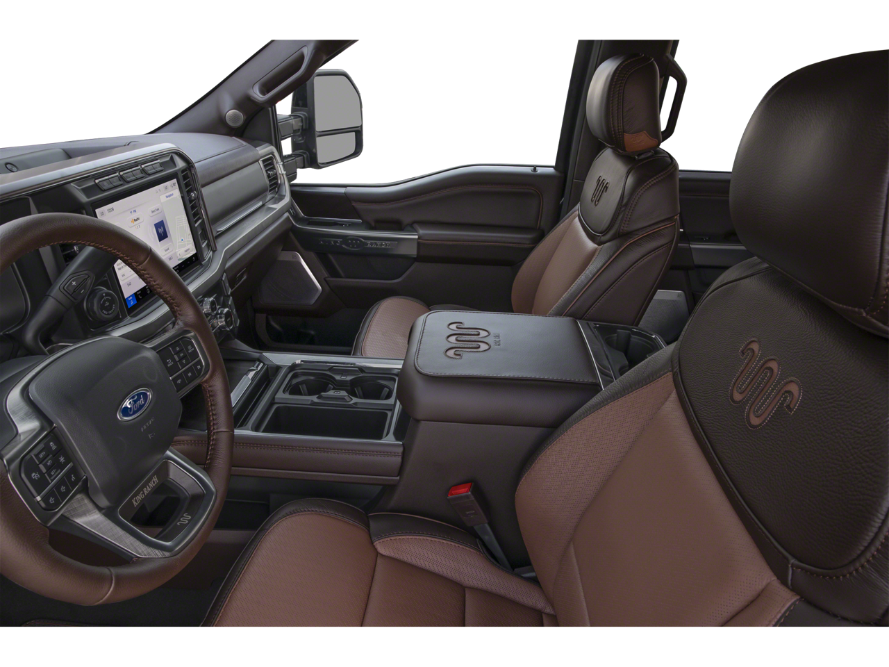 14 Speakers, 3.73 Axle Ratio, 4-Wheel Disc Brakes, 410 Amp Dual Alternators, ABS brakes, Adjustable pedals, Air Conditioning, Alloy wheels, AM/FM radio: SiriusXM with 360L, Auto High-beam Headlights, Auto tilt-away steering wheel, Auto-dimming Rear-View mirror, Automatic temperature control, Brake assist, Compass, Delay-off headlights, Driver door bin, Driver vanity mirror, Dual front impact airbags, Dual front side impact airbags, Electronic Stability Control, Emergency communication system: SYNC 4 911 Assist, Flow-Through Console, Ford Connectivity Package (1-Year Included), Front anti-roll bar, Front Bucket Seats, Front Center Armrest, Front dual zone A/C, Front fog lights, Front reading lights, Fully automatic headlights, Garage door transmitter, GVWR: F-250 >10K Package, Heads-Up Display, Heated door mirrors, Heated front seats, Heated rear seats, Heated steering wheel, Illuminated entry, Internet access capable: 5G Modem - Ford Connectivity Package, Leather steering wheel, Low tire pressure warning, Memory seat, Navigation system: Connected Navigation, Outside temperature display, Overhead airbag, Overhead console, Panic alarm, Passenger door bin, Passenger vanity mirror, Pedal memory, Power door mirrors, Power driver seat, Power passenger seat, Power steering, Power windows, Radio: B&O Unleashed Sound System by Bang & Olufsen, Rain sensing wipers, Rear reading lights, Rear seat center armrest, Rear step bumper, Rear window defroster, Remote keyless entry, Security system, SiriusXM with 360L, Speed control, Split folding rear seat, Steering wheel memory, Steering wheel mounted A/C controls, Steering wheel mounted audio controls, SYNC 4 with Enhanced Voice Recognition, Tachometer, Telescoping steering wheel, Tilt steering wheel, Traction control, Trip computer, Turn signal indicator mirrors, Unique King Ranch Leather 40/Console/40 Seats, Variably intermittent wipers, Ventilated front seats, Wheels: 20 Bright Machined Aluminum.