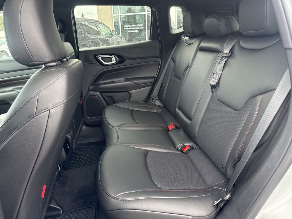 4WD, 10.1 Touchscreen Display, 4 Pin Wiring Harness, 4-Wheel Disc Brakes, 4.398 Final Drive Ratio, 4G LTE Wi-Fi Hot Spot, 6 Speakers, ABS brakes, Air Conditioning, Alexa Built-In, Alloy wheels, AM/FM radio: SiriusXM, Auto High-beam Headlights, Auto-dimming Rear-View mirror, Automatic temperature control, Brake assist, Bumpers: body-color, Class III Receiver Hitch, Cluster 10.25 TFT Color Display, Compass, Connected Travel and Traffic Services, Delay-off headlights, Driver door bin, Driver vanity mirror, Dual front impact airbags, Dual front side impact airbags, Electronic Stability Control, Emergency communication system: SiriusXM Guardian, Four wheel independent suspension, Front anti-roll bar, Front Bucket Seats, Front Center Armrest w/Storage, Front dual zone A/C, Front fog lights, Front License Plate Bracket, Front reading lights, Fully automatic headlights, Global Telematics Box Module, GPS Navigation, HD Radio, Heated door mirrors, Heated front seats, Heated steering wheel, Illuminated entry, Integrated Voice Command with Bluetooth®, Knee airbag, Leather Shift Knob, Leather steering wheel, Low tire pressure warning, Occupant sensing airbag, Outside temperature display, Overhead airbag, Overhead console, Panic alarm, ParkView Rear Back-Up Camera, Passenger door bin, Passenger vanity mirror, Power door mirrors, Power driver seat, Power Front/Fixed Rear Full Sunroof, Power Liftgate, Power steering, Power windows, Premium Alpine Speaker System, Premium audio system: UConnect 5, Premium Cloth/Leather Trim Bucket Seats, Quick Order Package 29E, Radio: Uconnect 5 with 10.1 Display, Rain sensing wipers, Rear anti-roll bar, Rear seat center armrest, Rear window defroster, Rear window wiper, Remote keyless entry, Security system, SiriusXM Guardian - Included Trail (B), SiriusXM Radio Service, SiriusXM with 360L, Speed control, Split folding rear seat, Spoiler, Steering wheel mounted audio controls, Sun, Sound and Navigation Group, Tachometer, Telescoping steering wheel, Tilt steering wheel, Traction control, Trailer Tow Group, Trip computer, Turn signal indicator mirrors, Variably intermittent wipers, Wheels: 17 x 6.5 Painted Black Aluminum, 4WD.