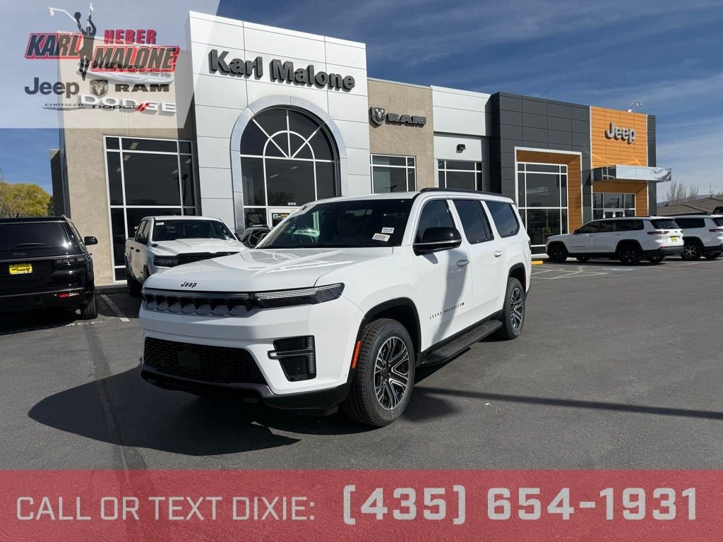 118 MPH Maximum Speed Calibration, 3 Panel Sunroof, 3rd row seats: bench, 4-Wheel Disc Brakes, 9 Speakers, ABS brakes, Adjustable Roof Rail Crossbars, Air Conditioning, All-Season Floor Mats, Alloy wheels, AM/FM radio: SiriusXM with 360L, Anti-whiplash front head restraints, Apple CarPlay/Android Auto, Audio memory, Auto Adjust in Reverse Exterior Mirrors, Auto High-beam Headlights, Auto Power-Folding Mirrors, Auto-dimming door mirrors, Auto-Dimming Exterior Driver Mirror, Auto-dimming Rear-View mirror, Auto-leveling suspension, Auto-Power-Folding Exterior Mirrors, Automatic temperature control, Black Exterior Accents, Blind Spot with Trailer Detection, Brake assist, Bumpers: body-color, Cargo Tray, Compass, Delay-off headlights, Driver door bin, Driver vanity mirror, Driver's Seat Mounted Armrest, Dual front impact airbags, Dual front side impact airbags, Elec Rear Limited Slip Differential, Electronic Stability Control, Emergency communication system: Jeep Connect, Exterior Mirrors Approach Lamps, Exterior Mirrors with Memory, Exterior Mirrors with Supplemental Signals, Exterior Parking Camera Rear, Four wheel independent suspension, Front anti-roll bar, Front Bucket Seats, Front Center Armrest w/Storage, Front dual zone A/C, Front fog lights, Front reading lights, Fully automatic headlights, Garage door transmitter, HD Trailer Tow Package, Heated door mirrors, Heated Exterior Mirrors, Heated front seats, Heated steering wheel, Illuminated entry, Interior Rear Facing Camera, Knee airbag, Low tire pressure warning, Luxury Front and Rear Floor Mats, Manufacturer Statement of Origin, Memory seat, MOPAR Interior Protection Package, Navigation System, Normal Duty Suspension, Occupant sensing airbag, Outside temperature display, Overhead airbag, Overhead console, P and P Park and Unpark Assist with Stop System, Panic alarm, Passenger door bin, Passenger seat mounted armrest, Passenger vanity mirror, Power door mirrors, Power driver seat, Power Liftgate, Power passenger seat, Power steering, Power windows, Premium Group I, Quick Order Package 29E Grand Wagoneer, Radio data system, Radio: Uconnect 5 Nav with 12 Display, Rain sensing wipers, Rear air conditioning, Rear anti-roll bar, Rear reading lights, Rear seat center armrest, Rear window defroster, Rear window wiper, Reclining 3rd row seat, Remote keyless entry, Removable Rear Tow Hooks, Reversible Carpet/Vinyl Cargo Mat, Security system, Selec-Speed Control, Side Distance Warning, Speed control, Speed-sensing steering, Speed-Sensitive Wipers, Split folding rear seat, Steering wheel memory, Steering wheel mounted audio controls, Surround View Camera System, Tachometer, Telescoping steering wheel, Tilt steering wheel, Traction control, Trailer Brake Control, Trailer Hitch Zoom, Trailer Light Monitoring, Trailer Tire Pressure Monitoring System, Trip computer, Turn signal indicator mirrors, Vapor Tow Hooks, Variably intermittent wipers, Ventilated front seats, Voltmeter, Wheels: 20 x 9.0 Machine Face Painted Aluminum.