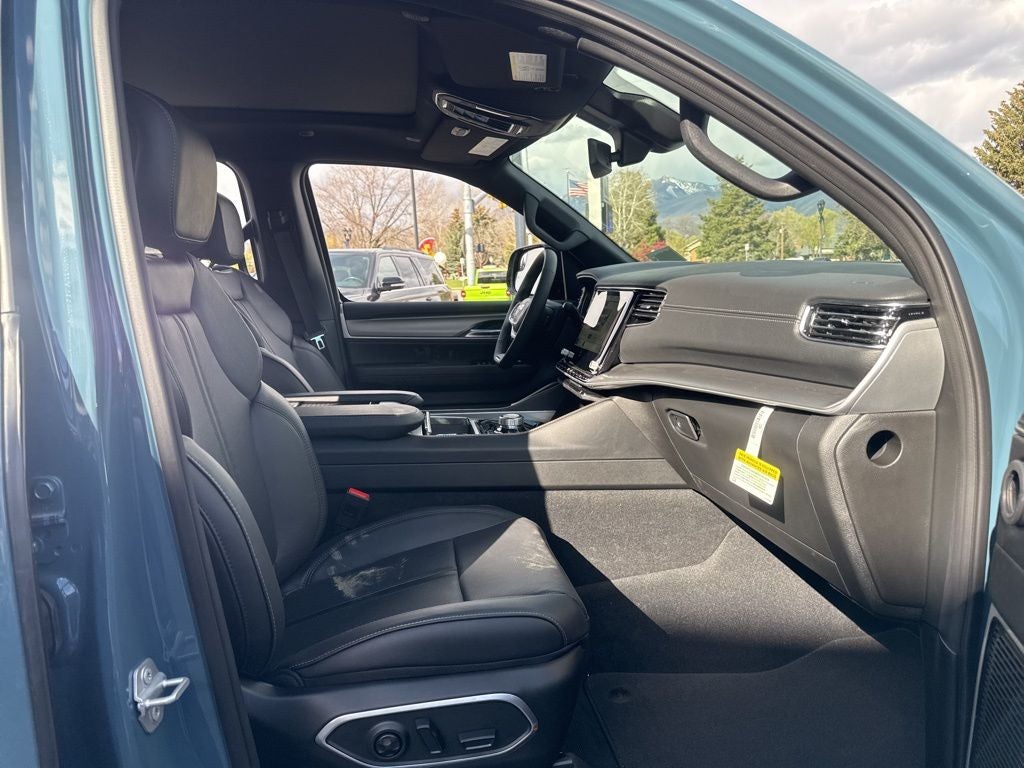 118 Mph Maximum Speed Calibration, 19 Speaker McIntosh Audio System, 3 Panel Sunroof, 3.55 Rear Axle Ratio, 3rd row seats: bench, 4-Wheel Disc Brakes, 9 Speakers, ABS brakes, Air Conditioning, Alloy wheels, Altitude Appearance Package, AM/FM radio: SiriusXM with 360L, Anti-whiplash front head restraints, Apple CarPlay/Android Auto, Audio memory, Auto Adjust in Reverse Exterior Mirrors, Auto High-beam Headlights, Auto-dimming door mirrors, Auto-Dimming Exterior Driver Mirror, Auto-dimming Rear-View mirror, Auto-leveling suspension, Automatic temperature control, Black Exterior Accents, Brake assist, Bumpers: body-color, Cargo Cover, Compass, Delay-off headlights, Driver door bin, Driver vanity mirror, Driver's Seat Mounted Armrest, Dual front impact airbags, Dual front side impact airbags, Electronic Stability Control, Emergency communication system: Jeep Connect, Exterior Mirrors Approach Lamps, Exterior Mirrors with Memory, Exterior Mirrors with Supplemental Signals, Exterior Parking Camera Rear, Four wheel independent suspension, Front anti-roll bar, Front Bucket Seats, Front Center Armrest w/Storage, Front dual zone A/C, Front fog lights, Front reading lights, Fully automatic headlights, Garage door transmitter, Heated door mirrors, Heated Exterior Mirrors, Heated front seats, Heated rear seats, Heated steering wheel, Illuminated entry, Interior Rear Facing Camera, Knee airbag, Leather Trimmed Bucket Seats, Low tire pressure warning, Luxury Front and Rear Floor Mats, Manufacturer Statement of Origin, Memory seat, Navigation System, Normal Duty Suspension, Occupant sensing airbag, Outside temperature display, Overhead airbag, Overhead console, Panic alarm, Passenger door bin, Passenger seat mounted armrest, Passenger vanity mirror, Power Deployable Running Boards, Power door mirrors, Power driver seat, Power Liftgate, Power passenger seat, Power steering, Power windows, Premium Group II, Quick Order Package 29X Altitude, Radio data system, Radio: Uconnect 5 Nav with 12.0 Display, Rain sensing wipers, Rear air conditioning, Rear anti-roll bar, Rear reading lights, Rear seat center armrest, Rear window defroster, Rear window wiper, Reclining 3rd row seat, Remote keyless entry, Reversible Carpet/Vinyl Cargo Mat, Security system, Speed control, Speed-sensing steering, Speed-Sensitive Wipers, Split folding rear seat, Steering wheel memory, Steering wheel mounted audio controls, Tachometer, Telescoping steering wheel, Tilt steering wheel, Titanium Daylight Opening Upper, Titanium Upper Grille Applique, Traction control, Trip computer, Turn signal indicator mirrors, Variably intermittent wipers, Ventilated front seats, Ventilated rear seats, Voltmeter, Wheels: 20 x 9 Aluminum Painted.