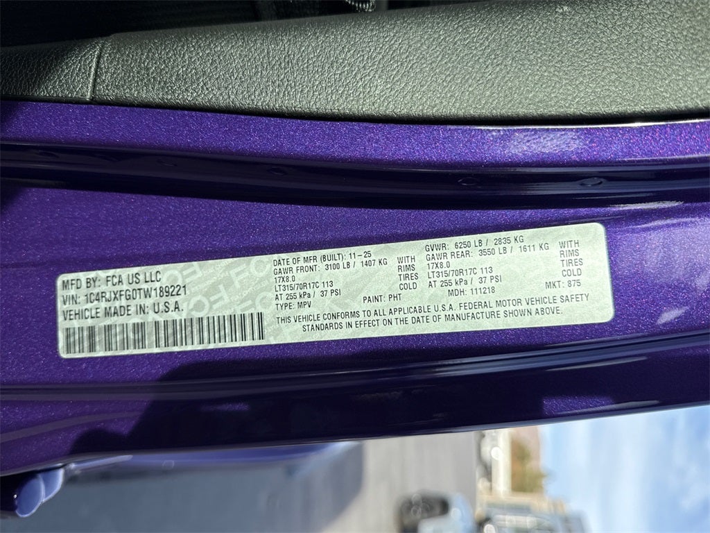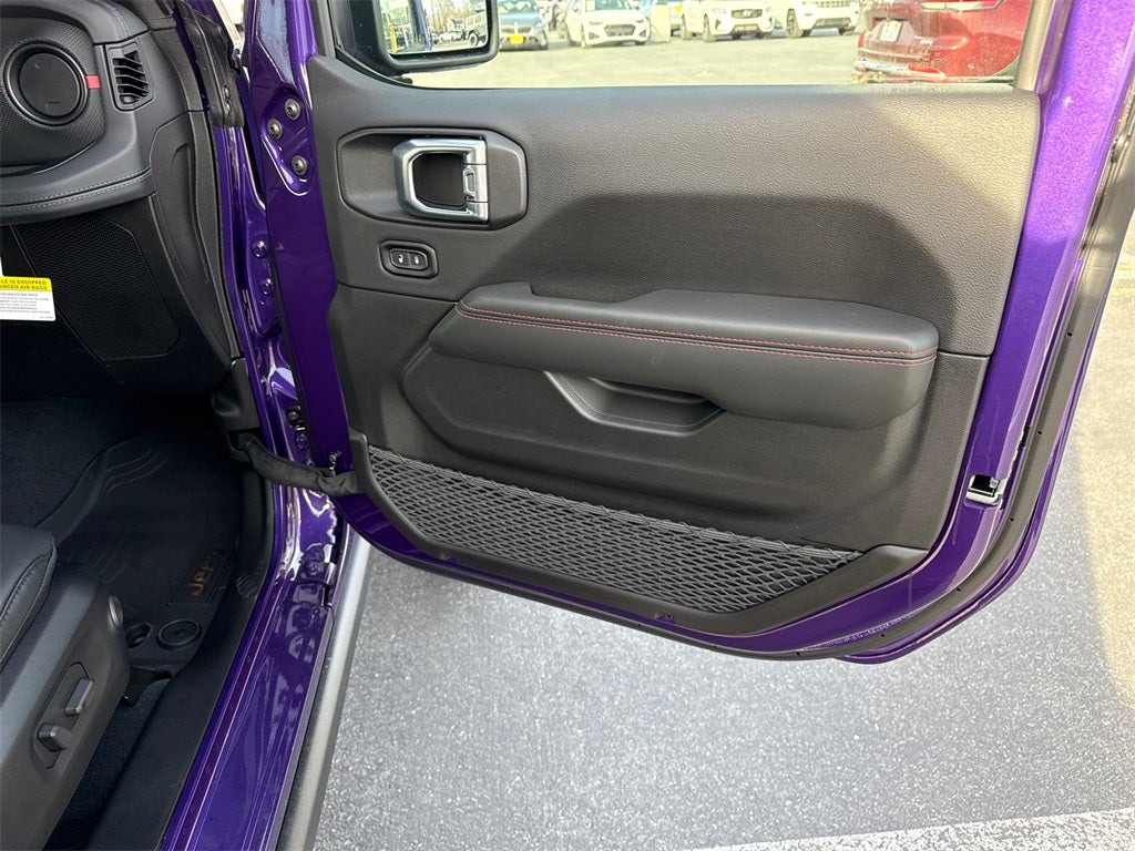 12.3 Touchscreen Display, 35 Tire Suspension, 4-Wheel Disc Brakes, 4G LTE Wi-Fi Hot Spot, 8 Speakers, ABS brakes, Acoustic Front Seat Area Carpet, Acoustic Laminated Front Door Glass, Air Conditioning, Alloy wheels, Alpine Premium Audio System, AM/FM radio: SiriusXM with 360L, Apple CarPlay, Apple CarPlay/Android Auto, Auto High Beam Headlamp Control, Auto-Dimming Rear-View Mirror, Automatic temperature control, Aux Battery, Auxiliary Switches, Blind Spot and Cross Path Detection, Body Color 3-Piece Hard Top, Body Color Rubicon Highline Flare, Brake assist, Class II Receiver Hitch, Cloth Low-Back Bucket Seats, Compass, Connected Travel and Traffic Services, Connectivity - US/Canada, Delay-off headlights, Driver door bin, Driver vanity mirror, Dual front impact airbags, Dual front side impact airbags, Electronic Stability Control, Emergency communication system: Jeep Connect, For More Info, Call 800-643-2112, Freedom Panel Storage Bag, Front anti-roll bar, Front Bucket Seats, Front Center Armrest w/Storage, Front dual zone A/C, Front fog lights, Front License Plate Bracket, Front reading lights, Fully automatic headlights, Google Android Auto, HD Radio, Heated door mirrors, Heated Front Seats, Heated Steering Wheel, Illuminated entry, Integrated Center Stack Radio, Integrated Off-Road Camera, Integrated roll-over protection, Integrated Voice Command with Bluetooth®, Leather Wrapped Park Brake Handle, Leather Wrapped Shift Knob, Low tire pressure warning, MOPAR All-Weather Floor Mats, MOPAR Hardtop Headliner, MOPAR Hinge-Gate Reinforcement, MOPAR Multi-Function Accessory Rail, MOPAR Single Hoop Grille Guard, Nappa Leather Seats, No Soft Top, Non-Lock Fuel Cap Without Discriminator, Occupant sensing airbag, Outside temperature display, Overhead airbag, Panic alarm, ParkSense Rear Park Assist System, ParkView Rear Back-Up Camera, Passenger door bin, Passenger vanity mirror, Performance Suspension, Power 4-Way Driver Lumbar Adjust, Power 4-Way Passenger Lumbar Adjust, Power Adjust 8-Way Driver Seat, Power Adjust 8-Way Front Passenger Seat, Power door mirrors, Power steering, Power windows, Premium Door Trim Panel, Quick Order Package 24Y Rubicon X, Radio data system, Radio: Uconnect 5 Navigation with 12.3 Display, Radio: Uconnect 5 with 12.3 Display, Rear anti-roll bar, Rear reading lights, Rear Window Defroster, Rear Window Wiper/Washer, Remote keyless entry, Security system, SiriusXM Radio Service, SiriusXM with 360L, Speed control, Split folding rear seat, Steel Front Bumper, Steel Rear Bumper, Steering wheel mounted audio controls, Stop-Start Dual Battery System, Tachometer, Telescoping steering wheel, Tilt steering wheel, Traction control, Trailer Tow and Auxiliary Switch Group, Trailer Tow Prep Package, Trip computer, Universal Garage Door Opener, Variably intermittent wipers, Voltmeter, Warn Winch, Wheels: 17 x 7.5 Machined/Painted Black, Wheels: 17 x 8 Machined with Black Pockets.