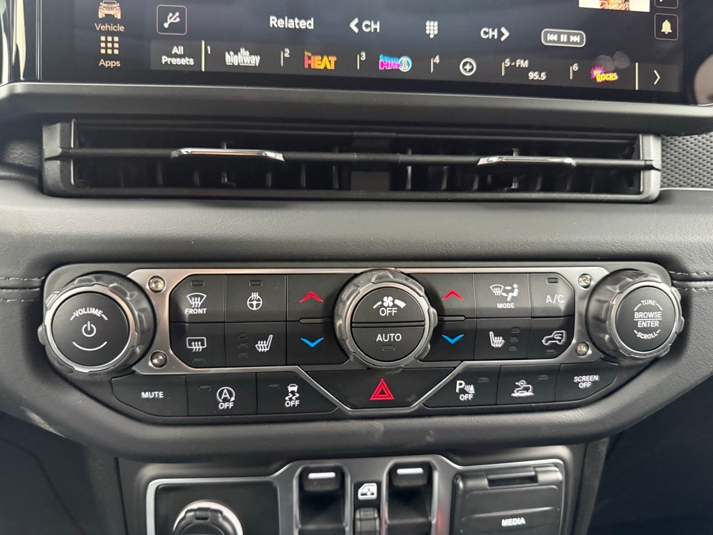 12.3 Touchscreen Display, 35 Tire Suspension, 4-Wheel Disc Brakes, 4G LTE Wi-Fi Hot Spot, 8 Speakers, ABS brakes, Acoustic Front Seat Area Carpet, Acoustic Laminated Front Door Glass, Air Conditioning, Alloy wheels, Alpine Premium Audio System, AM/FM radio: SiriusXM with 360L, Apple CarPlay, Apple CarPlay/Android Auto, Auto High Beam Headlamp Control, Auto-Dimming Rear-View Mirror, Automatic temperature control, Aux Battery, Auxiliary Switches, Blind Spot and Cross Path Detection, Body Color 3-Piece Hard Top, Body Color Rubicon Highline Flare, Brake assist, Class II Receiver Hitch, Cloth Low-Back Bucket Seats, Compass, Connected Travel and Traffic Services, Connectivity - US/Canada, Delay-off headlights, Driver door bin, Driver vanity mirror, Dual front impact airbags, Dual front side impact airbags, Electronic Stability Control, Emergency communication system: Jeep Connect, For More Info, Call 800-643-2112, Freedom Panel Storage Bag, Front anti-roll bar, Front Bucket Seats, Front Center Armrest w/Storage, Front dual zone A/C, Front fog lights, Front License Plate Bracket, Front reading lights, Fully automatic headlights, Google Android Auto, HD Radio, Heated door mirrors, Heated Front Seats, Heated Steering Wheel, Illuminated entry, Integrated Center Stack Radio, Integrated Off-Road Camera, Integrated roll-over protection, Integrated Voice Command with Bluetooth®, Leather Wrapped Park Brake Handle, Leather Wrapped Shift Knob, Low tire pressure warning, MOPAR All-Weather Floor Mats, MOPAR Hardtop Headliner, MOPAR Hinge-Gate Reinforcement, MOPAR Performance Satin Black Grille, MOPAR Single Hoop Grille Guard, Nappa Leather Seats, No Soft Top, Non-Lock Fuel Cap Without Discriminator, Occupant sensing airbag, Outside temperature display, Overhead airbag, Panic alarm, ParkSense Rear Park Assist System, ParkView Rear Back-Up Camera, Passenger door bin, Passenger vanity mirror, Performance Hood, Performance Suspension, Power 4-Way Driver Lumbar Adjust, Power 4-Way Passenger Lumbar Adjust, Power Adjust 8-Way Driver Seat, Power Adjust 8-Way Front Passenger Seat, Power door mirrors, Power steering, Power windows, Premium Door Trim Panel, Quick Order Package 24Y Rubicon X, Radio data system, Radio: Uconnect 5 Navigation with 12.3 Display, Radio: Uconnect 5 with 12.3 Display, Rear anti-roll bar, Rear reading lights, Rear Window Defroster, Rear Window Wiper/Washer, Remote keyless entry, Security system, SiriusXM Radio Service, SiriusXM with 360L, Speed control, Split folding rear seat, Steel Front Bumper, Steel Performance Hood Package, Steel Rear Bumper, Steering wheel mounted audio controls, Stop-Start Dual Battery System, Tachometer, Telescoping steering wheel, Tilt steering wheel, Traction control, Trailer Tow and Auxiliary Switch Group, Trailer Tow Prep Package, Trip computer, Universal Garage Door Opener, Variably intermittent wipers, Voltmeter, Warn Winch, Wheels: 17 x 7.5 Machined/Painted Black, Wheels: 17 x 8 Machined with Black Pockets.