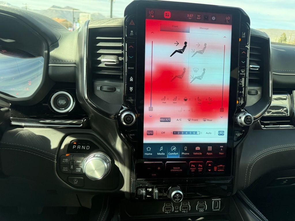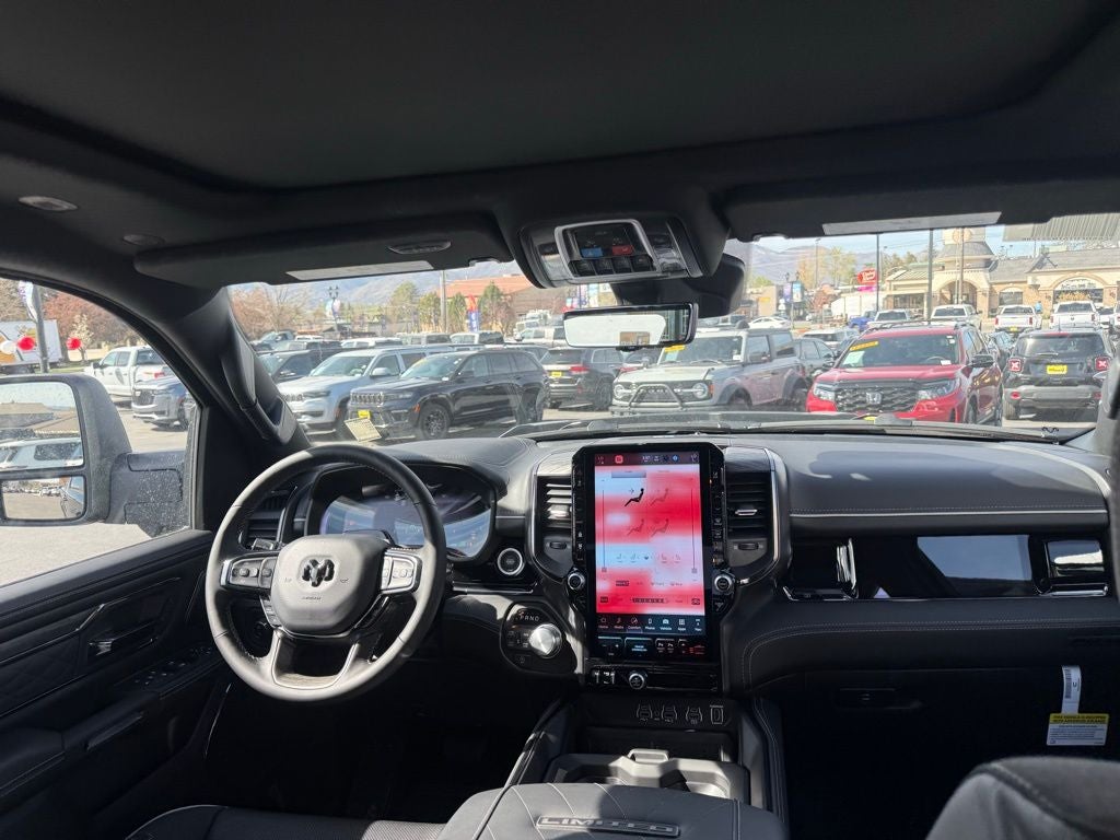 12-Way/1-Way Trailer Connector, 14.4 Touchscreen Display, 19 Speakers, 240 Amp Alternator, 3.92 Rear Axle Ratio, 4-Wheel Disc Brakes, 4G LTE Wi-Fi Hot Spot, ABS brakes, Accent Color Door Handles, Accent Color Premium Power Mirrors, Accent Color Tailgate Handle, Active Noise Control System, Adjustable pedals, Air Conditioning, Alloy wheels, AM/FM radio, Apple CarPlay, Apple CarPlay/Android Auto, Audio memory, Auto High-beam Headlights, Auto Power-Folding Mirrors, Auto-dimming door mirrors, Auto-Dimming Exterior Driver Mirror, Auto-Dimming Exterior Passenger Mirror, Auto-dimming Rear-View mirror, Auto-leveling suspension, Automatic temperature control, Bed Utility Group, Black Day Light Opening Moldings, Black Exterior Mirrors, Black Exterior Truck Badging, Black Grille Surround Texture 7 Black, Black Headlamp Bezels, Black Painted Exterior Mirrors Caps, Black Power-Fold Trailer Tow Mirrors, Black Tail Lamp Bezels, Body Color Front Bumper, Body Color Rear Bumper with Step Pads, Bodyside moldings, Brake assist, Bumpers: chrome, Chrome Exterior Mirrors, Compass, Connected Travel and Traffic Services, Connectivity - US/Canada, Convex Wide-Angle Exterior Mirror Insert, Delay-off headlights, Disassociated Touchscreen Display, Dome Dual LED Reading Lamp, Driver door bin, Driver vanity mirror, Drowsy Driver Detection, Dual Exhaust with Black Tips, Dual front impact airbags, Dual front side impact airbags, Dual-Pane Panoramic Sunroof, Electronic Stability Control, Evasive Steer Assist, Exterior 115V AC Outlet, Exterior Mirrors Courtesy Lamps, Exterior Mirrors with Heating Element, Exterior Mirrors with Memory, Exterior Mirrors with Supplemental Signals, Exterior Parking Camera Rear, Forward and Reverse Utility Lights, Front anti-roll bar, Front Bucket Seats, Front Center Armrest w/Storage, Front dual zone A/C, Front fog lights, Front License Plate Bracket, Front reading lights, Front wheel independent suspension, Fully automatic headlights, Garage door transmitter, Genuine wood console insert, Genuine wood dashboard insert, Genuine wood door panel insert, Global Telematics Box Module, Google Android Auto, GPS Antenna Input, GPS Navigation, Hands-Free Active Driving Assist System, harman/kardon® Speakers, HD Radio, Heads-Up Display, Heated door mirrors, Heated front seats, Heated rear seats, Heated steering wheel, Illuminated entry, Integrated Center Stack Radio, Integrated Voice Command with Bluetooth®, Intersection Collision Assist System, Leather steering wheel, LED CHMSL Lamp, LED Dome/Reading Lamp, Limited Level A Equipment Group, Low tire pressure warning, Manufacturer's Statement of Origin, Memory seat, Mirror Clearance/Running Lights, MOPAR 4 Adjustable Cargo Tie-Down Hooks, Navigation System, Night Edition, Occupant sensing airbag, Outside temperature display, Overhead airbag, Overhead console, Panic alarm, Passenger door bin, Passenger vanity mirror, Pedal memory, Pirelli Brand Tires, Power door mirrors, Power driver seat, Power passenger seat, Power steering, Power Telescoping Mirrors, Power windows, Power-Adjustable Convex Aux Mirrors, Premium Quilted Leather Bucket Seats, Quick Order Package 27M Limited, Radio data system, Radio: Uconnect 5 Nav with 14.4 Display, Radio: Uconnect 5 Navigation with 12.0 Display, Rain sensing wipers, RAM Grille Badge - Black, RamBox Cargo Management System, Rear anti-roll bar, Rear reading lights, Rear seat center armrest, Rear step bumper, Rear window defroster, Remote keyless entry, Security system, SiriusXM Radio Service, SiriusXM with 360L, Smartphone as a Key Capable, Speed control, Split folding rear seat, Sport Performance Hood, Steering wheel mounted audio controls, Surround View Camera System, Tachometer, Telescoping steering wheel, Tilt steering wheel, Traction control, Traffic Sign Reco Price includes: $3500 - 2026 National Retail Bonus Cash . Exp. 04/30/2