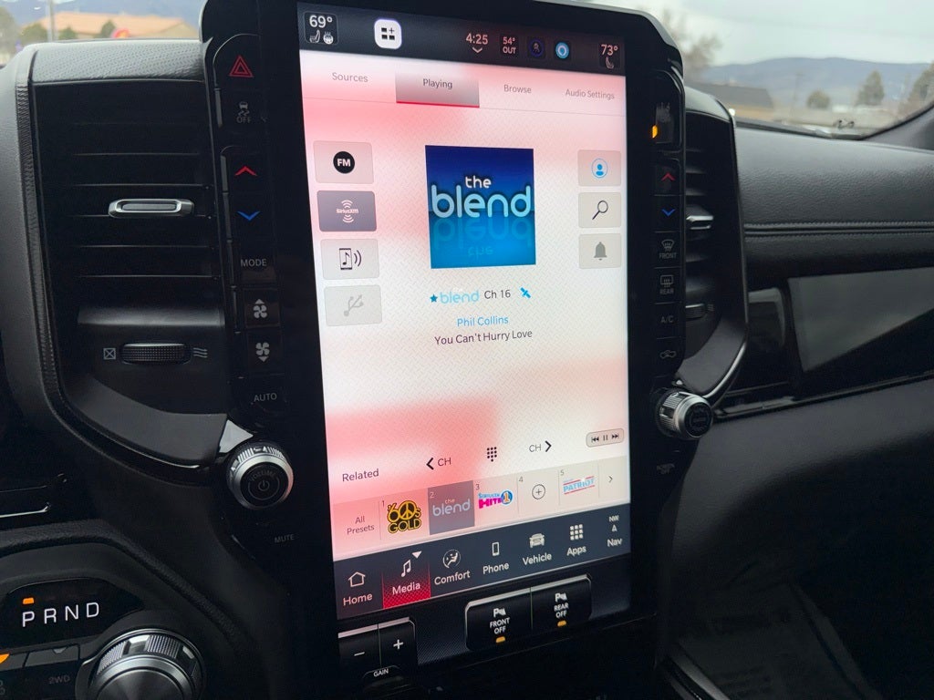 10 Speakers, 115V Auxiliary Rear Power Outlet, 14.4 Touchscreen Display, 2-Door Passive Entry, Front Door Locks, 3.92 Rear Axle Ratio, 33 Gallon Fuel Tank, 4 Way Front Headrests, 4-Wheel Disc Brakes, 4G LTE Wi-Fi Hot Spot, ABS brakes, Accent Color Door Handles, Accent Color Premium Power Mirrors, Accent Color Tailgate Handle, Active Noise Control System, Air Conditioning, Alloy wheels, AM/FM radio: SiriusXM with 360L, Apple CarPlay, Apple CarPlay/Android Auto, Auto High-beam Headlights, Auto Power-Folding Mirrors, Auto-Dimming Exterior Driver Mirror, Auto-dimming Rear-View mirror, Automatic temperature control, Bed Utility Group, Black Exterior Mirrors, Black Painted Exterior Mirrors Caps, Brake assist, Bucket Seats, Cloth/Vinyl Bucket Seats, Compass, Connected Travel and Traffic Services, Connectivity - US/Canada, Convex Wide-Angle Exterior Mirror Insert, Delay-off headlights, Disassociated Touchscreen Display, Driver door bin, Driver Seat Memory, Driver vanity mirror, Dual front impact airbags, Dual front side impact airbags, Dual Wireless Charging Pad, Electronic Stability Control, Engine Block Heater, Exterior 115V AC Outlet, Exterior Mirrors Approach Lamps, Exterior Mirrors Courtesy Lamps, Exterior Mirrors with Heating Element, Exterior Mirrors with Memory, Exterior Mirrors with Supplemental Signals, Front anti-roll bar, Front Bucket Seats, Front Center Armrest w/Storage, Front dual zone A/C, Front fog lights, Front License Plate Bracket, Front Passenger Interactive Display, Front reading lights, Front Seat Back Map Pockets, Front wheel independent suspension, Full Length Upgraded Floor Console, Fully automatic headlights, Garage door transmitter, Global Telematics Box Module, Google Android Auto, GPS Antenna Input, GPS Navigation, Harman/Kardon 19 Speaker Premium Sound, HD Radio, Heated door mirrors, Heated Front Seats, Heated front seats, Heated Second Row Seats, Heated Steering Wheel, Heated steering wheel, Illuminated entry, Integrated Center Stack Radio, Integrated Voice Command with Bluetooth®, Leather steering wheel, Low tire pressure warning, Manual Folding Exterior Mirrors, Manufacturer's Statement of Origin, Media Hub with 2 Charge Only USBs, MOPAR 4 Adjustable Cargo Tie-Down Hooks, Mopar Black Tubular Side Steps, MOPAR Spray in Bedliner, Navigation System, Occupant sensing airbag, Off-Road Information Pages, Outside temperature display, Overhead airbag, Overhead console, Panic alarm, ParkView Rear Back-Up Camera, Passenger door bin, Passenger vanity mirror, Power 2-Way Driver Lumbar Adjust, Power 2-Way Passenger Lumbar Adjust, Power Adjust 8-Way Driver Seat, Power Adjust 8-Way Front Passenger Seat, Power Adjustable Pedals with Memory, Power door mirrors, Power driver seat, Power steering, Power Tailgate, Power windows, Proximity Approach/Departure Lamps, Quick Order Package 21W Rebel, Radio data system, Radio: Uconnect 5 Nav with 14.4 Display, Radio: Uconnect 5 Navigation with 12.0 Display, Radio/Driver Seat/Mirrors/Pedals Memory, Rain Sensitive Windshield Wipers, Rear 60/40 Folding Seat, Rear anti-roll bar, Rear seat center armrest, Rear step bumper, Rear Wheelhouse Liners, Rear Window Defroster, Rebel Level 2 Equipment Group, Remote keyless entry, Security Alarm, SiriusXM Radio Service, SiriusXM with 360L, Smartphone as a Key Capable, Speed control, Split folding rear seat, Steering wheel mounted audio controls, Tachometer, Telescoping steering wheel, Tilt steering wheel, Traction control, Trailer Brake Control, Trip computer, USB Host Flip, Variably intermittent wipers, Voltmeter, Wheels: 18 x 8.0 Painted Mid-Gloss Black.