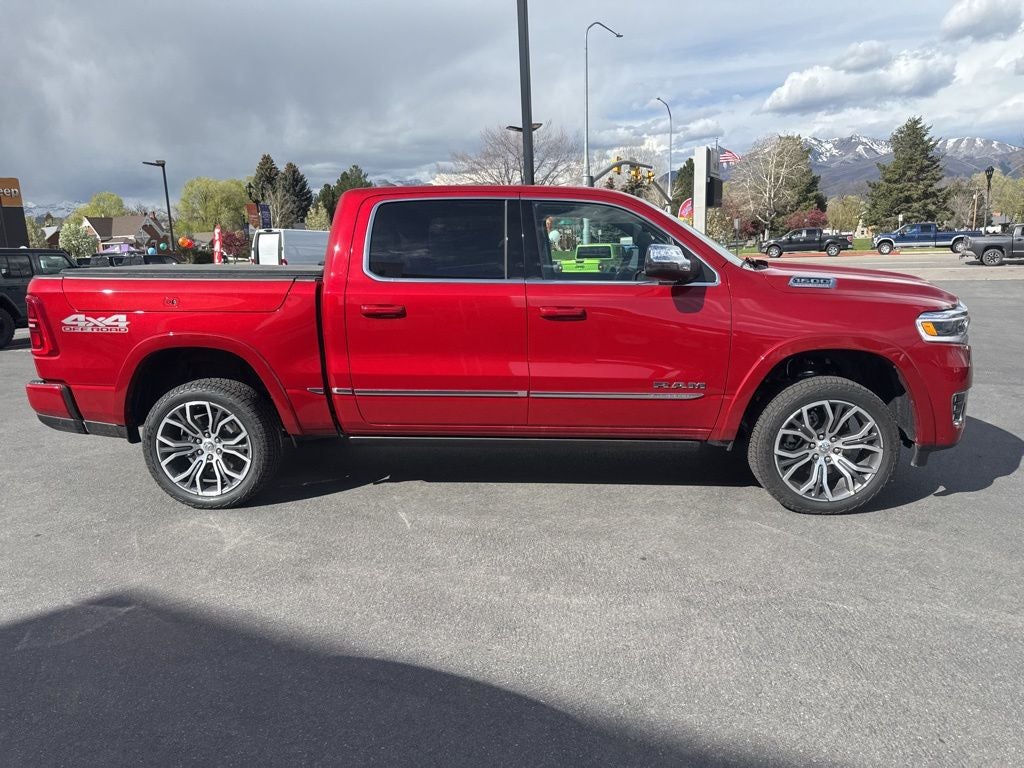 12-Way/1-Way Trailer Connector, 3.92 Rear Axle Ratio, 4-Wheel Disc Brakes, ABS brakes, Adjustable pedals, Air Conditioning, Alloy wheels, AM/FM radio, Apple CarPlay/Android Auto, Audio memory, Auto High-beam Headlights, Auto Power-Folding Mirrors, Auto-dimming door mirrors, Auto-Dimming Exterior Driver Mirror, Auto-dimming Rear-View mirror, Auto-leveling suspension, Automatic temperature control, Bed Utility Group, Bodyside moldings, Brake assist, Bumpers: body-color, Chrome Exterior Mirrors, Compass, Delay-off headlights, Driver door bin, Driver vanity mirror, Dual front impact airbags, Dual front side impact airbags, E-Locker Rear Axle, Electronic Stability Control, Exterior 115V AC Outlet, Exterior Mirrors Courtesy Lamps, Exterior Mirrors with Heating Element, Exterior Mirrors with Memory, Exterior Mirrors with Supplemental Signals, Exterior Parking Camera Rear, Falken Brand Tires, Front anti-roll bar, Front Bucket Seats, Front Center Armrest w/Storage, Front dual zone A/C, Front Extra Heavy Duty Shock Absorbers, Front fog lights, Front License Plate Bracket, Front reading lights, Front wheel independent suspension, Fully automatic headlights, Garage door transmitter, Heads-Up Display, Heated door mirrors, Heated front seats, Heated rear seats, Heated steering wheel, Illuminated entry, Leather steering wheel, Low tire pressure warning, Manufacturer's Statement of Origin, Memory seat, MOPAR 4 Adjustable Cargo Tie-Down Hooks, Navigation System, Occupant sensing airbag, Off Road Decals, Off Road Group, Outside temperature display, Overhead airbag, Overhead console, Panic alarm, Passenger door bin, Passenger vanity mirror, Pedal memory, Power adjustable front head restraints, Power door mirrors, Power driver seat, Power moonroof, Power passenger seat, Power steering, Power windows, Premium Leather Bucket Seats, Quick Order Package 22V Tungsten, Radio data system, Radio: Uconnect 5 Nav with 14.4 Display, Rain sensing wipers, Raised Ride Height, Rear anti-roll bar, Rear Extra Heavy Duty Shock Absorbers, Rear reading lights, Rear seat center armrest, Rear step bumper, Rear window defroster, Remote keyless entry, Security system, Selec-Speed Control, Speed control, Split folding rear seat, Steering wheel mounted audio controls, Tachometer, Telescoping steering wheel, Tilt steering wheel, Traction control, Trailer Brake Control, Trip computer, Truck Bed Cargo Divider, Turn signal indicator mirrors, Variably intermittent wipers, Ventilated front seats, Ventilated rear seats, Voltmeter, Wheels: 22 x 9 Polish/Painted with Inserts.