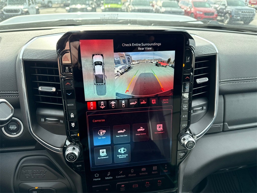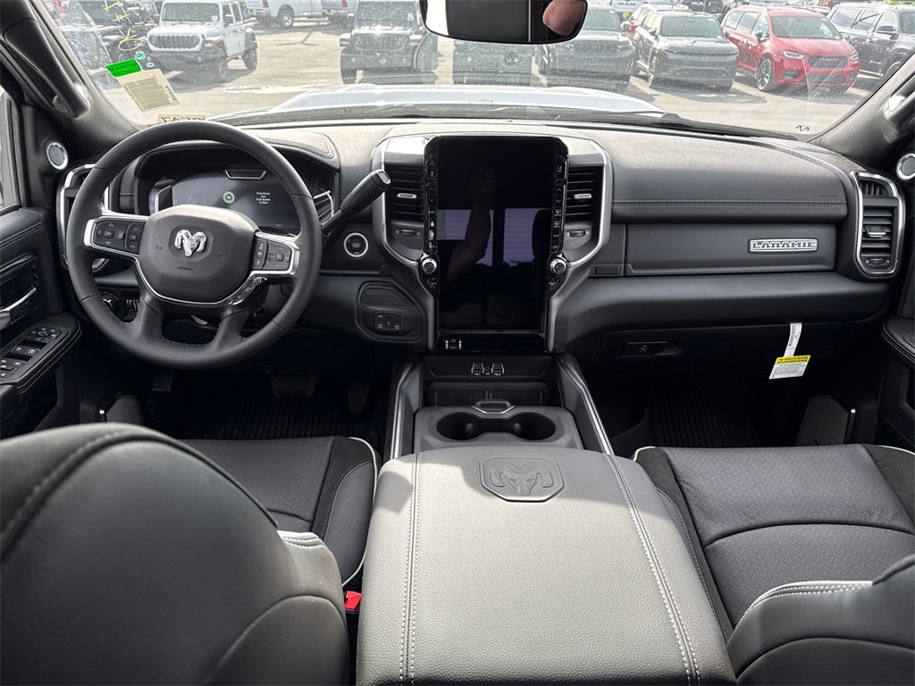 #1 Seat Foam Cushion, 10 Speakers, 115V Auxiliary Rear Power Outlet, 14.4 Touchscreen Display, 17 Speaker Harman/Kardon Premium Sound, 2 Way Rear Headrest Seat, 2nd Row in Floor Storage Bins, 4 Way Front Headrests, 4-Wheel Disc Brakes, 4G LTE Wi-Fi Hot Spot, 5th Wheel/Gooseneck Towing Prep Group, ABS brakes, Active Lane Management System, Adaptive Steering System, Air Conditioning, Alexa Built-in, Alloy wheels, AM/FM radio: SiriusXM with 360L, Anti-Spin Differential Rear Axle, Apple CarPlay, Apple CarPlay/Android Auto, Auto Adjust in Reverse Exterior Mirrors, Auto Dim Exterior Mirror, Auto High Beam Headlamp Control, Auto Power-Folding Mirrors, Auto-Dimming Exterior Passenger Mirror, Auto-dimming Rear-View mirror, Automatic temperature control, Black Exterior Mirrors, Black Exterior Truck Badging, Black Wheel Center Hub, Body Color Grille-Surround, Brake assist, Bucket Seats, Bumpers: body-color, Center Stop Lamp with Cargo View Camera, Chrome Exterior Mirrors, Cold Weather Group, Compass, Connected Travel and Traffic Services, Connectivity - US/Canada, Delay-off headlights, Disassociated Touchscreen Display, Driver door bin, Driver vanity mirror, Drowsy Driver Detection, Dual front impact airbags, Dual front side impact airbags, Dual Wireless Charging Pad, Electronic Stability Control, Emergency Vehicle Alert System (EVAS), Engine Block Heater, Exterior Mirrors Courtesy Lamps, Exterior Mirrors with Heating Element, Exterior Mirrors with Memory, Exterior Mirrors with Supplemental Signals, Foam Bottle Insert (door Trim Panel), Folding Flat Load Floor Storage, For Details, Visit DriveUconnect.com, For More Info, Call 800-643-2112, Forward and Reverse Utility Lights, Front anti-roll bar, Front Center Armrest w/Storage, Front dual zone A/C, Front fog lights, Front License Plate Bracket, Front reading lights, Front Seat Back Map Pockets, Full Length Upgraded Floor Console, Fully automatic headlights, Garage door transmitter, Global Telematics Box Module, Gloss Black Grille Billets/Accents, Google Android Auto, GPS Antenna Input, GPS Navigation, HD Radio, Heated door mirrors, Heated Front Seats, Heated front seats, Heated Steering Wheel, Heated steering wheel, High Back Seats, Illuminated entry, Integrated Voice Command with Bluetooth®, Laramie Level 2 Plus Equipment Group, Leather Trim 40/20/40 Bench Seat, Leather Trimmed Bucket Seats, LED Bed Lighting, Low tire pressure warning, Manufacturer's Statement of Origin, Mirror Running Lights, MOPAR Deployable Bed Step, MOPAR Front and Rear Rubber Floor Mats, MOPAR Spray in Bedliner, MOPAR Winter Front Grille Cover, Navigation System, Night Edition, Occupant sensing airbag, Off-Road Info Pages, Outside temperature display, Overhead airbag, Overhead console, Panic alarm, ParkView Rear Back-Up Camera, Passenger door bin, Passenger vanity mirror, Power 2-Way Driver Lumbar Adjust, Power 2-Way Passenger Lumbar Adjust, Power Adjust 8-Way Driver Seat, Power Adjust 8-Way Front Passenger Seat, Power Adjust Mirrors, Power Adjustable Pedals with Memory, Power Deployable Running Boards, Power door mirrors, Power driver seat, Power Heated Fold Telescopic Mirrors with Memory, Power passenger seat, Power steering, Power Sunroof, Power Telescoping Mirrors, Power windows, Power-Adjustable Convex Aux Mirrors, Quick Order Package 24H Laramie, Radio data system, Radio: Uconnect 5 Nav with 14.4 Display, Radio: Uconnect 5 Navigation with 12.0 Display, Radio/Driver Seat/Mirrors/Pedals Memory, Rain Sensitive Windshield Wipers, Rear 60/40 Folding Seat, Rear anti-roll bar, Rear reading lights, Rear seat center armrest, Rear step bumper, Rear window defroster, Remote keyless entry, Remote Tailgate Release, Security system, Selectable Tire Fill Alert, SiriusXM Radio Service, SiriusXM with 360L, Speed control, Split folding rear seat, Sport Performance Hood, Steering whe Price includes: $1000 - 2026 National Bonus Cash . Exp. 03/02/2