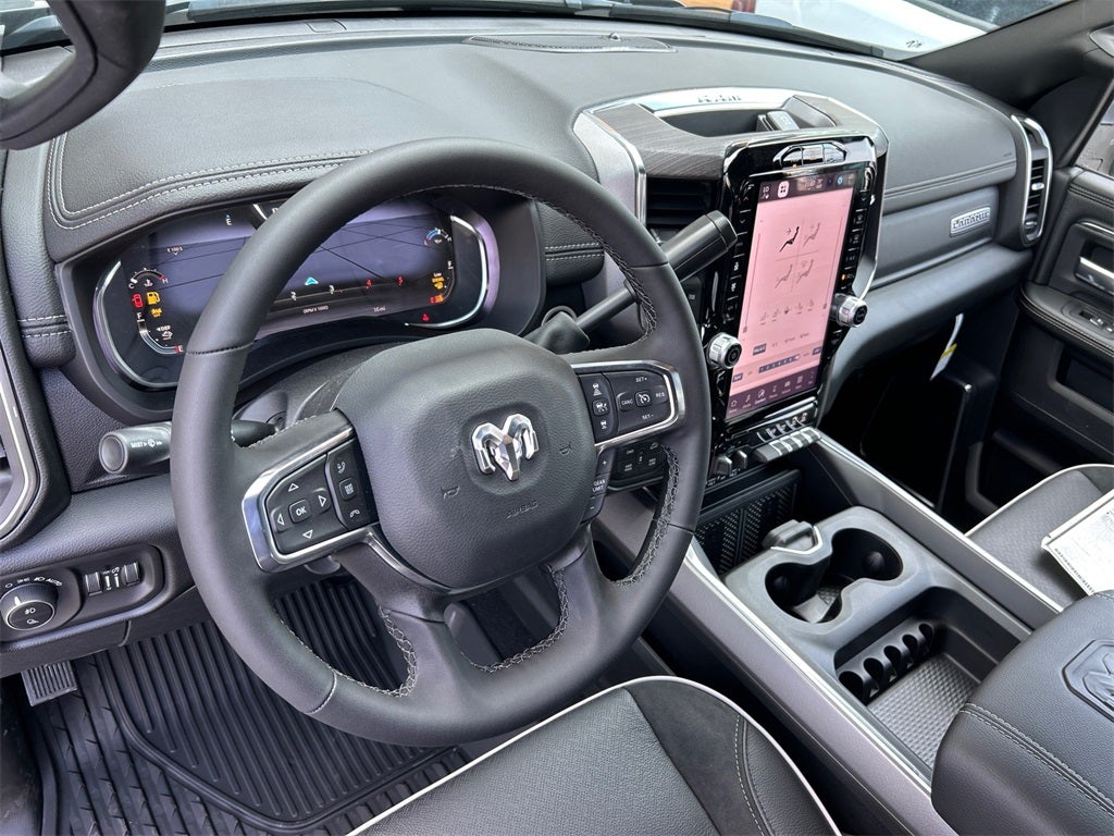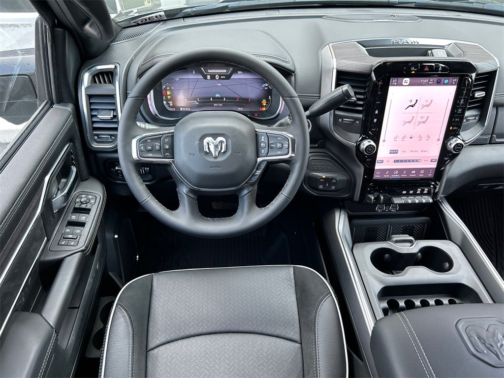 #1 Seat Foam Cushion, 10 Speakers, 115V Auxiliary Rear Power Outlet, 2 Way Rear Headrest Seat, 2nd Row in Floor Storage Bins, 4 Way Front Headrests, 4-Wheel Disc Brakes, 4G LTE Wi-Fi Hot Spot, 5th Wheel/Gooseneck Towing Prep Group, ABS brakes, Active Lane Management System, Adaptive Steering System, Air Conditioning, Alexa Built-in, Alloy wheels, AM/FM radio: SiriusXM with 360L, Anti-Spin Differential Rear Axle, Apple CarPlay, Apple CarPlay/Android Auto, Auto Adjust in Reverse Exterior Mirrors, Auto Dim Exterior Mirror, Auto High Beam Headlamp Control, Auto Power-Folding Mirrors, Auto-Dimming Exterior Passenger Mirror, Auto-dimming Rear-View mirror, Automatic temperature control, Black Wheel Center Hub, Brake assist, Bright Front Bumper, Bright Rear Bumper, Bucket Seats, Bumpers: body-color, Center Stop Lamp with Cargo View Camera, Chrome Bumper Package, Chrome Exterior Mirrors, Cold Weather Group, Compass, Connected Travel and Traffic Services, Connectivity - US/Canada, Delay-off headlights, Disassociated Touchscreen Display, Driver door bin, Driver vanity mirror, Drowsy Driver Detection, Dual front impact airbags, Dual front side impact airbags, Dual Wireless Charging Pad, Electronic Stability Control, Emergency Vehicle Alert System (EVAS), Engine Block Heater, Exterior Mirrors Courtesy Lamps, Exterior Mirrors with Heating Element, Exterior Mirrors with Memory, Exterior Mirrors with Supplemental Signals, Foam Bottle Insert (door Trim Panel), Folding Flat Load Floor Storage, For Details, Visit DriveUconnect.com, For More Info, Call 800-643-2112, Forward and Reverse Utility Lights, Front anti-roll bar, Front Center Armrest w/Storage, Front dual zone A/C, Front fog lights, Front License Plate Bracket, Front Performance Tuned Shock Absorbers, Front reading lights, Front Seat Back Map Pockets, Full Length Upgraded Floor Console, Fully automatic headlights, Garage door transmitter, Global Telematics Box Module, Google Android Auto, GPS Antenna Input, GPS Navigation, HD Radio, Heated door mirrors, Heated Front Seats, Heated front seats, Heated Steering Wheel, Heated steering wheel, High Back Seats, Hill Assist, Illuminated entry, Integrated Voice Command with Bluetooth®, Laramie Level 1 Plus Equipment Group, Leather Trim 40/20/40 Bench Seat, Leather Trimmed Bucket Seats, LED Bed Lighting, Low tire pressure warning, Manufacturer's Statement of Origin, Mirror Running Lights, MOPAR Deployable Bed Step, MOPAR Front and Rear Rubber Floor Mats, MOPAR Spray in Bedliner, MOPAR Winter Front Grille Cover, Navigation System, Occupant sensing airbag, Off Road Package, Off-Road Info Pages, Outside temperature display, Overhead airbag, Overhead console, Panic alarm, ParkView Rear Back-Up Camera, Passenger door bin, Passenger vanity mirror, Power 2-Way Driver Lumbar Adjust, Power 2-Way Passenger Lumbar Adjust, Power Adjust 8-Way Driver Seat, Power Adjust 8-Way Front Passenger Seat, Power Adjust Mirrors, Power Adjustable Pedals with Memory, Power door mirrors, Power driver seat, Power Heated Fold Telescopic Mirrors with Memory, Power passenger seat, Power steering, Power Telescoping Mirrors, Power windows, Power-Adjustable Convex Aux Mirrors, Quick Order Package 24H Laramie, Radio data system, Radio: Uconnect 5 Navigation with 12.0 Display, Radio/Driver Seat/Mirrors/Pedals Memory, Rain Sensitive Windshield Wipers, Rear 60/40 Folding Seat, Rear anti-roll bar, Rear Performance Tuned Shock Absorbers, Rear reading lights, Rear seat center armrest, Rear step bumper, Rear window defroster, Remote keyless entry, Remote Tailgate Release, Security system, Selectable Tire Fill Alert, SiriusXM Radio Service, SiriusXM with 360L, Speed control, Split folding rear seat, Steering wheel mounted audio controls, Surround View Camera System, Tac Price includes: $1000 - 2026 National Bonus Cash . Exp. 03/02/2026 $2000 - 2026 National Select Inventory Bonus Cash. Exp. 03/02/2