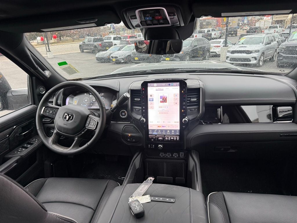 17 Speakers, 3.42 Axle Ratio, 4-Wheel Disc Brakes, 5th Wheel/Gooseneck Towing Prep Group, ABS brakes, Active Lane Management System, Adaptive Steering System, Adjustable pedals, Air Conditioning, Alloy wheels, AM/FM radio: SiriusXM with 360L, Apple CarPlay/Android Auto, Audio memory, Auto High-beam Headlights, Auto Level Rear Air Suspension, Auto-dimming door mirrors, Auto-dimming Rear-View mirror, Automatic temperature control, Black Exterior Truck Badging, Black Grille Limited, Black Wheel Center Hub, Body Color Grille Surround, Bodyside moldings, Brake assist, Bumpers: body-color, Center Stop Lamp with Cargo View Camera, Cold Weather Group, Compass, Delay-off headlights, Digital 3.0 Rear View Auto Dim Mirror, Digital Rearview Mirror, Driver door bin, Driver vanity mirror, Drowsy Driver Detection, Dual front impact airbags, Dual front side impact airbags, Electronic Stability Control, Engine Block Heater, Front anti-roll bar, Front Bucket Seats, Front Center Armrest w/Storage, Front dual zone A/C, Front fog lights, Front License Plate Bracket, Front reading lights, Fully automatic headlights, Garage door transmitter, Genuine wood console insert, Genuine wood dashboard insert, Genuine wood door panel insert, harman/kardon® Speakers, Heated door mirrors, Heated front seats, Heated rear seats, Heated steering wheel, Illuminated entry, Leather steering wheel, LED Bed Lighting, Limited Level 1 Equipment Group, Low tire pressure warning, Manufacturer's Statement of Origin, Memory seat, MOPAR Spray in Bedliner, MOPAR Trailer Camera Wiring with No Camera, MOPAR Winter Front Grille Cover, Navigation System, Night Edition, Occupant sensing airbag, Outside temperature display, Overhead airbag, Overhead console, Panic alarm, ParkView Rear Back-Up Camera, Passenger door bin, Passenger vanity mirror, Pedal memory, Pickup Box, Power Deployable Running Boards, Power door mirrors, Power driver seat, Power passenger seat, Power steering, Power Sunroof, Power windows, Quick Order Package 24M Limited, Radio data system, Radio: Uconnect 5 Nav with 14.4 Display, Rain sensing wipers, Rear reading lights, Rear seat center armrest, Rear step bumper, Rear window defroster, Remote keyless entry, Security system, Speed control, Split folding rear seat, Sport Performance Hood, Steering wheel mounted audio controls, Surround View Camera System, Tachometer, Tilt steering wheel, Tow Technology Plus Group, Traction control, Traffic Sign Recognition, Trailer Reverse Guidance, Trailer Reverse Steering Control, Trailer Tire Pressure Monitoring System, Trip computer, Turn signal indicator mirrors, Ultra Premium Leather Seats, Variably intermittent wipers, Vendor Painted Cargo Box, Vendor Painted Cargo Box Tracking, Ventilated front seats, Voltmeter, Wheels: 20 x 8 Diamond Cut Aluminum, Wheels: 20 x 8 Night Edition Black Aluminum. Price includes: $1000 - 2026 National Bonus Cash . Exp. 04/30/2026