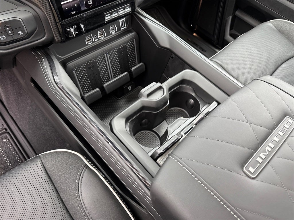17 Speakers, 4-Wheel Disc Brakes, ABS brakes, Active Lane Management System, Adaptive Steering System, Adjustable pedals, Air Conditioning, Alloy wheels, AM/FM radio: SiriusXM with 360L, Apple CarPlay/Android Auto, Audio memory, Auto High-beam Headlights, Auto-dimming door mirrors, Auto-dimming Rear-View mirror, Automatic temperature control, Black Exterior Truck Badging, Black Limited Grille, Black Wheel Center Hub, Body Color Grille Surround, Bodyside moldings, Brake assist, Bumpers: body-color, Center Stop Lamp with Cargo View Camera, Cold Weather Group, Compass, Dash Pass Thru Wire Circuits, Delay-off headlights, Digital Rearview Mirror, Driver door bin, Driver vanity mirror, Drowsy Driver Detection, Dual front impact airbags, Dual front side impact airbags, Electronic Stability Control, Engine Block Heater, Front anti-roll bar, Front Bucket Seats, Front Center Armrest w/Storage, Front dual zone A/C, Front fog lights, Front License Plate Bracket, Front reading lights, Fully automatic headlights, Garage door transmitter, Genuine wood console insert, Genuine wood dashboard insert, Genuine wood door panel insert, harman/kardon® Speakers, Heated door mirrors, Heated front seats, Heated rear seats, Heated steering wheel, Illuminated entry, Instrument Panel Mounted Auxiliary Switches, Leather steering wheel, LED Bed Lighting, Limited Level 1 Equipment Group, Low tire pressure warning, Manufacturer's Statement of Origin, Memory seat, MOPAR Spray in Bedliner, MOPAR Winter Front Grille Cover, Navigation System, Night Edition, Occupant sensing airbag, Outside temperature display, Overhead airbag, Overhead console, Panic alarm, ParkView Rear Back-Up Camera, Passenger door bin, Passenger vanity mirror, Pedal memory, Power Deployable Running Boards, Power door mirrors, Power driver seat, Power passenger seat, Power steering, Power Sunroof, Power windows, Quick Order Package 24M Limited, Radio data system, Radio: Uconnect 5 Nav with 14.4 Display, Rain sensing wipers, Rear reading lights, Rear seat center armrest, Rear step bumper, Rear window defroster, Remote keyless entry, Security system, Speed control, Split folding rear seat, Sport Performance Hood, Steering wheel mounted audio controls, Surround View Camera System, Tachometer, Tilt steering wheel, Tow-Mode Camera (Wired), Tow-Mode Digital Rear View Mirror Package, Traction control, Traffic Sign Recognition, Trailer Reverse Guidance, Trailer Tire Pressure Monitoring System, Trip computer, Turn signal indicator mirrors, Ultra Premium Leather Seats, Variably intermittent wipers, Vendor Painted Cargo Box, Vendor Painted Cargo Box Tracking, Ventilated front seats, Voltmeter, Wheels: 20 x 8.0 Diamond Cut Aluminum with Black Pt Pockets, Wheels: 20 x 8.0 Night Edition Black Aluminum. Price includes: $1000 - 2026 National Bonus Cash . Exp. 02/02/2026