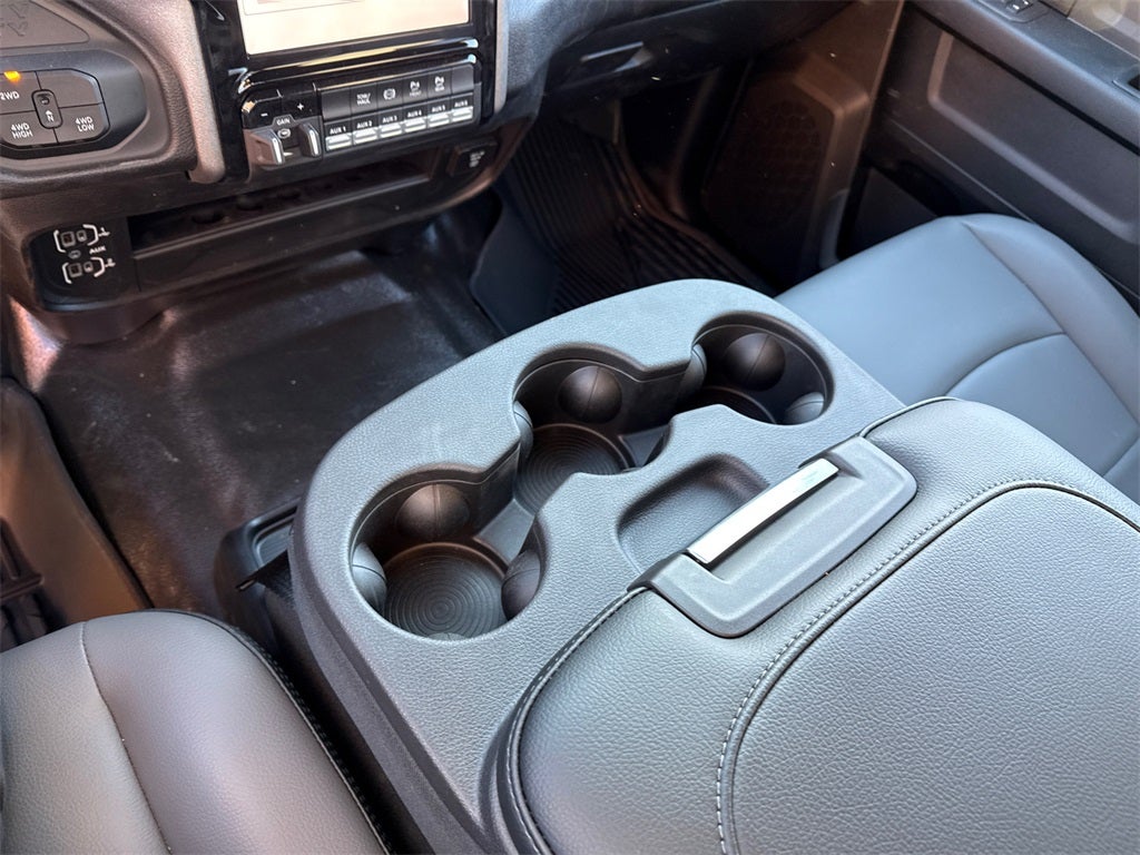 115-Volt Auxiliary Front Power Outlet, 12 Touchscreen Display, 2 Way Rear Headrest Seat, 4 Way Front Headrests, 4-Wheel Disc Brakes, 40/20/40 Split Bench Seat, 400W Inverter, 4G LTE Wi-Fi Hot Spot, 50 Gallon Fuel Tank, 5th Wheel/Gooseneck Towing Prep Group, 6 Speakers, ABS brakes, Air Conditioning, Air Conditioning ATC with Dual Zone Control, Alexa Built-in, AM/FM radio: SiriusXM, Apple CarPlay, Apple CarPlay/Android Auto, Auto Power-Folding Mirrors, Auto-Dimming Rear-View Mirror, Bed Utility Group, Black Exterior Mirrors, Black Wheel Center Hub, Blind Spot and Cross Path Detection, Brake assist, Bright Front Bumper, Bright Rear Bumper, Bright Wheel Skins, Carpet Floor Covering, Center Hub, Center Stop Lamp with Cargo View Camera, Chrome Grille Surround, Cloth 40/20/40 Bench Seat, Cold Weather Group, Compass, Connected Travel and Traffic Services, Connectivity - US/Canada, Convenience Group, Dash Pass Thru Wire Circuits, Delay-off headlights, Disassociated Touchscreen Display, Driver door bin, Dual front impact airbags, Dual front side impact airbags, Electronic Stability Control, Emergency Vehicle Alert System (EVAS), Engine Block Heater, Exterior 115V AC Outlet, Exterior Mirrors Courtesy Lamps, Exterior Mirrors with Heating Element, Exterior Mirrors with Supplemental Signals, For Details Visit DriveUconnect.com, For More Info, Call 800-643-2112, Forward and Reverse Utility Lights, Front and Rear Floor Mats, Front anti-roll bar, Front Armrest with Cupholders, Front Center Armrest w/Storage, Front fog lights, Front License Plate Bracket, Front reading lights, Fully automatic headlights, Global Telematics Box Module, Google Android Auto, GPS Antenna Input, GPS Navigation, HD Radio, Illuminated entry, Instrument Panel Mounted Auxiliary Switches, Integrated Voice Command with Bluetooth®, LED Bed Lighting, LED Tail Lamps, Low tire pressure warning, Manual Adjust 4-Way Driver Seat, Manual Adjust 4-Way Front Passenger Seat, Manual Folding Exterior Mirrors, Manual Telescoping Mirrors, Manufacturer's Statement of Origin, Matte Black Mesh with Chrome Grille, Mirror Running Lights, Mopar Black Tubular Side Steps, MOPAR Deployable Bed Step, MOPAR Front and Rear Rubber Floor Mats, MOPAR Spray in Bedliner, MOPAR Winter Front Grille Cover, Occupant sensing airbag, Off-Road Information Pages, Outside temperature display, Overhead airbag, Overhead console, Panic alarm, ParkSense Front/Rear Park Assist System, ParkView Rear Back-Up Camera, Passenger door bin, Passenger vanity mirror, Power Adjust Mirrors, Power Heat Fold Telescopic Mirrors, Power Heated Fold Telescopic Mirrors, Power steering, Power Telescoping Mirrors, Power windows, Power-Adjustable Convex Aux Mirrors, Quick Order Package 24A Tradesman, Radio data system, Radio: Uconnect 5 Navigation with 12.0 Display, Radio: Uconnect 5 with 8.4 Display, Rear Folding Seat, Rear Power Sliding Window, Rear step bumper, Rear window defroster, Red Tail Lamp Bezels, Remote keyless entry, Remote USB Port - Charge Only, Selectable Tire Fill Alert, SiriusXM Radio Service, SiriusXM with 360L, Speed control, Storage Tray, Surround View Camera System, Tachometer, Tilt steering wheel, Tinted Acoustic Windshield Glass, Towing Technology Group, Traction control, Tradesman Level 2A Equipment Group, Trailer Reverse Guidance, Trailer Tire Pressure Monitoring System, Trailer Tow Pages, Variably intermittent wipers, Voltmeter, Wheels: 18 x 8.0 Black Painted Steel, Wheels: 18 x 8.0 Steel Chrome Clad. Price includes: $1000 - 2026 National Bonus Cash . Exp. 02/02/2026