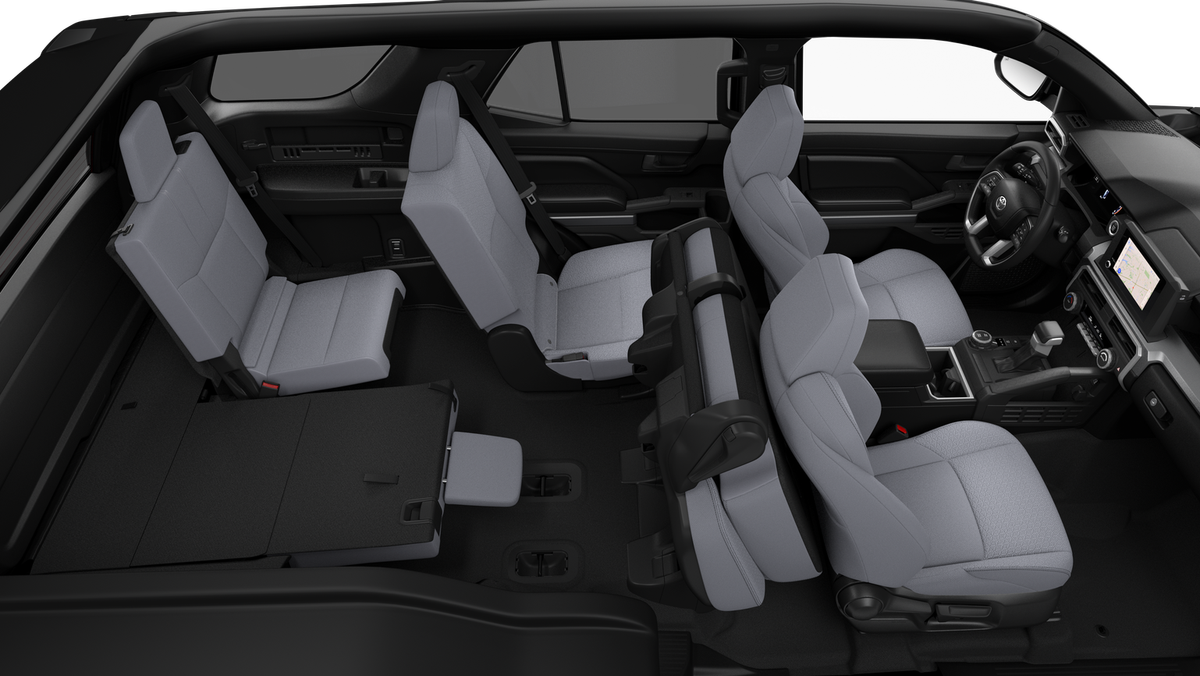 4WD, Boulder Fabric Cloth, 4-Wheel Disc Brakes, 8 Speakers, ABS brakes, Air Conditioning, Alloy wheels, AM/FM radio: SiriusXM, Anti-whiplash front head restraints, Apple CarPlay/Android Auto, Auto High-beam Headlights, Automatic temperature control, Brake assist, Bumpers: body-color, Color Keyed Bodyside Molding, Driver door bin, Driver vanity mirror, Dual front impact airbags, Dual front side impact airbags, Electronic Stability Control, Emergency communication system: Safety Connect (1-year trial), Exterior Parking Camera Rear, Fabric Seat Trim (FA), Front and Rear Molded Black 4Runner Mudguards, Front anti-roll bar, Front Bucket Seats, Front Center Armrest, Front dual zone A/C, Front fog lights, Front reading lights, Front Red Tow Hooks Upgrade, Front wheel independent suspension, Heated door mirrors, Illuminated entry, Knee airbag, Leather Shift Knob, Leather steering wheel, Low tire pressure warning, Occupant sensing airbag, Outside temperature display, Overhead airbag, Overhead console, Panic alarm, Passenger door bin, Passenger vanity mirror, Power door mirrors, Power steering, Power windows, Radio: 8 Audio, Rear anti-roll bar, Rear seat center armrest, Rear side impact airbag, Rear window defroster, Rear window wiper, Remote keyless entry, Security system, Speed control, Speed-sensing steering, Split folding rear seat, Spoiler, Steering wheel mounted audio controls, Tachometer, Telescoping steering wheel, Third Row Seating - Fabric, Tilt steering wheel, Traction control, TRD Cast Aluminum Black Side Steps, Trip computer, Variably intermittent wipers, Wheels: 17 Dark-Gray Painted Alloy, 4WD, Boulder Fabric Cloth.