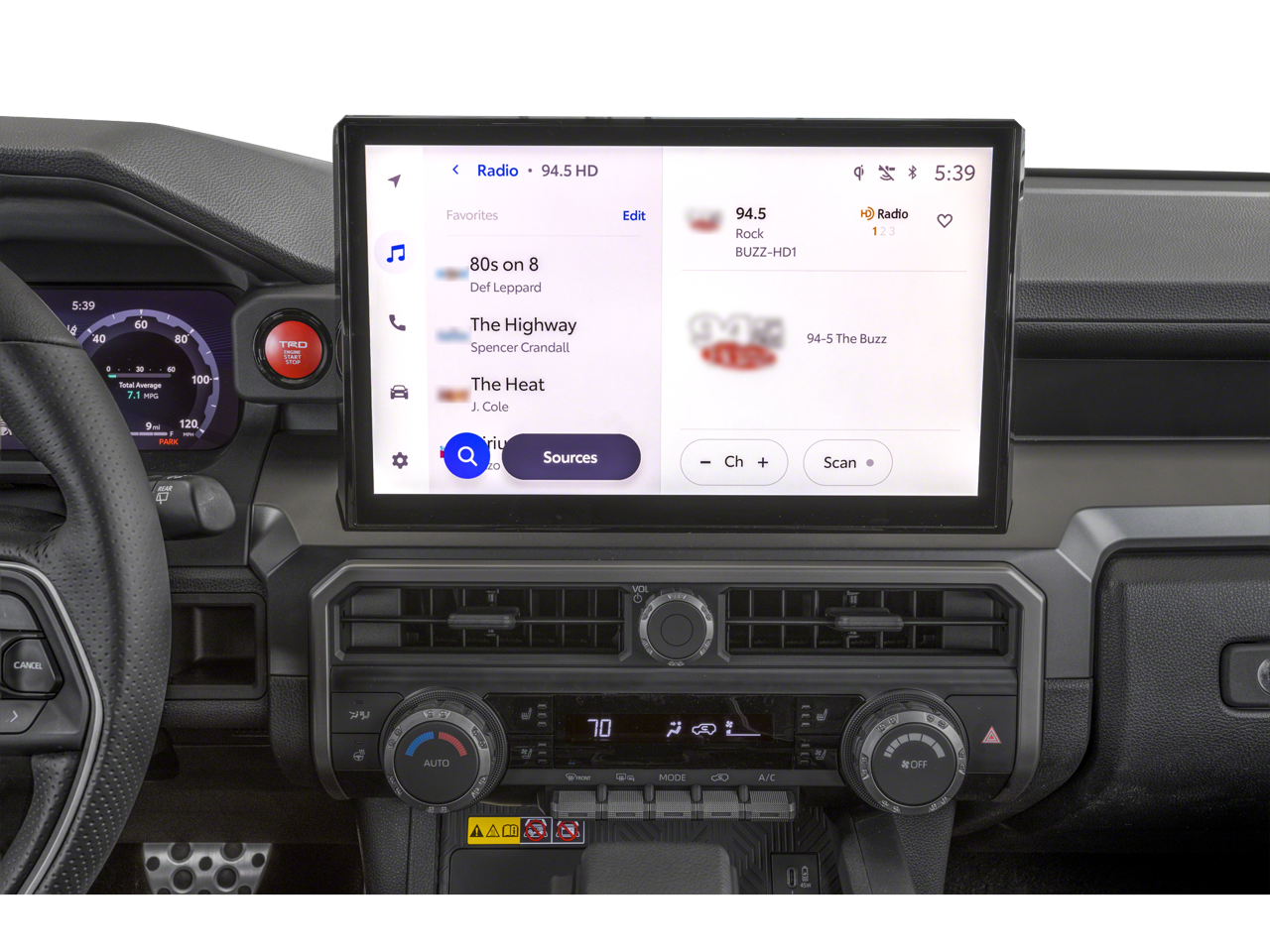 4WD, Black Artificial Leather, 15 Speakers, 4-Wheel Disc Brakes, ABS brakes, Air Conditioning, Alloy wheels, AM/FM radio: SiriusXM, Anti-whiplash front head restraints, Apple CarPlay/Android Auto, Auto High-beam Headlights, Automatic temperature control, Brake assist, Bumpers: body-color, Color Keyed Bodyside Molding, Driver door bin, Driver vanity mirror, Dual front impact airbags, Dual front side impact airbags, Electronic Stability Control, Emergency communication system: Safety Connect (1-year trial), Exterior Parking Camera Rear, Front anti-roll bar, Front Bucket Seats, Front Center Armrest, Front dual zone A/C, Front fog lights, Front reading lights, Front wheel independent suspension, Heated and Ventilated Front Bucket Seats, Heated door mirrors, Heated front seats, Heated steering wheel, Illuminated entry, Interior D-Pillar Cargo Lights, Knee airbag, Leather Shift Knob, Leather steering wheel, Low tire pressure warning, Memory seat, Moonroof, Navigation System, Occupant sensing airbag, Outside temperature display, Overhead airbag, Overhead console, Panic alarm, Passenger door bin, Passenger vanity mirror, Power door mirrors, Power driver seat, Power passenger seat, Power steering, Power windows, Radio: 14 Audio, Rear anti-roll bar, Rear seat center armrest, Rear side impact airbag, Rear window defroster, Rear window wiper, Remote keyless entry, Security system, SofTex Seat Trim, Speed control, Speed-sensing steering, Split folding rear seat, Spoiler, Steering wheel mounted audio controls, Tachometer, Telescoping steering wheel, Tilt steering wheel, Tow Technology Package, Traction control, TRD Cast Aluminum Black Side Steps, TRD Sport Premium, Trip computer, Variably intermittent wipers, Ventilated front seats, Wheels: 20 Dark-Gray Painted Alloy, 4WD, Black Artificial Leather.