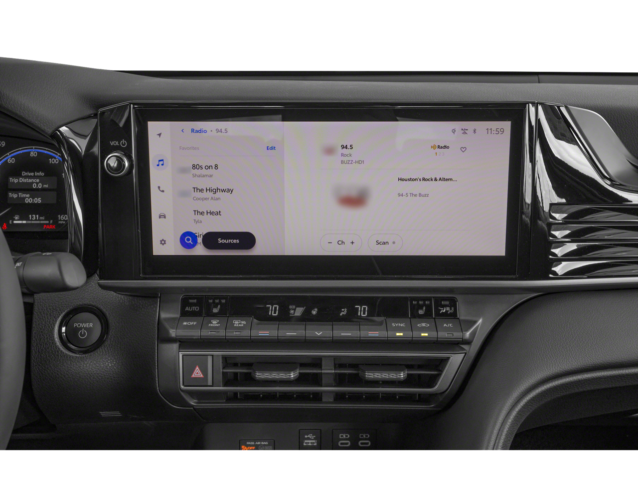 Black Leather, 10 Color Head-Up Display, 4-Wheel Disc Brakes, 6 Speakers, 9-Speaker JBL Premium Audio System, ABS brakes, Air Conditioning, All Weather Floor Protection, Alloy wheels, AM/FM radio: SiriusXM, Apple CarPlay/Android Auto, Auto High-beam Headlights, Auto-dimming Rear-View mirror, Automatic temperature control, Brake assist, Bumpers: body-color, Delay-off headlights, Digital Key Compatibility, Door Edge Guard, Door Sill Enhancement, Driver door bin, Driver vanity mirror, Driver's Seat and Outer-Mirror Memory, Dual front impact airbags, Dual front side impact airbags, Electronic Stability Control, Emergency communication system: Safety Connect (5-year trial), Exterior Parking Camera Rear, Four wheel independent suspension, Front anti-roll bar, Front Bucket Seats, Front Center Armrest, Front dual zone A/C, Front reading lights, Fully automatic headlights, Garage door transmitter: HomeLink, Heated door mirrors, Heated Front Seats, Heated front seats, Heated steering wheel, Illuminated entry, Knee airbag, Leather Seat Trim, Leather Shift Knob, Leather steering wheel, Low tire pressure warning, Mudguards, Multimedia Glass Screen Protector, Navigation system: Drive Connect (1 year trial) includes Cloud Navigation with real time traffic and Google POI, Occupant sensing airbag, Outside temperature display, Overhead airbag, Overhead console, Panic alarm, Panoramic Glass Roof, Passenger door bin, Passenger vanity mirror, Power door mirrors, Power driver seat, Power passenger seat, Power steering, Power windows, Premium Package, Radio data system, Radio: 12.3 Toyota Multimedia Audio, Rain-Sensing Windshield Wipers, Rear anti-roll bar, Rear reading lights, Rear seat center armrest, Rear window defroster, Remote keyless entry, Security system, Speed control, Speed-sensing steering, Split folding rear seat, Spoiler, Steering wheel mounted audio controls, Telescoping steering wheel, Tilt steering wheel, Traction control, Trip computer, Turn signal indicator mirrors, Variably intermittent wipers, Ventilated Front Seats, Wheels: 19 Smoked Gray and Black-Finished Alloy, Black Leather.
