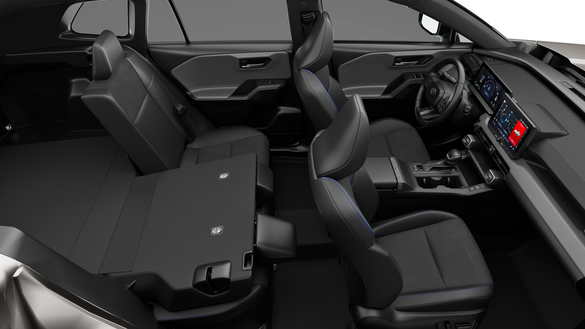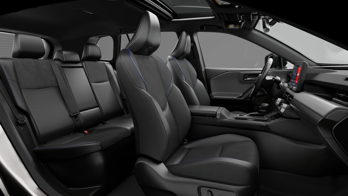 AWD, Black Blue Artificial Leather, 4-Wheel Disc Brakes, 6 Speakers, ABS brakes, Air Conditioning, Alloy wheels, AM/FM radio: SiriusXM with 360L, Apple CarPlay/Android Auto, Auto High-beam Headlights, Auto-dimming Rear-View mirror, Automatic temperature control, Brake assist, Bumpers: body-color, Carpet Floor Mats/Cargo Mat, Delay-off headlights, Driver door bin, Driver vanity mirror, Dual front impact airbags, Dual front side impact airbags, Electronic Stability Control, Emergency communication system: Safety Connect (5-year trial), Exterior Parking Camera Rear, Four wheel independent suspension, Front anti-roll bar, Front Bucket Seats, Front Center Armrest, Front dual zone A/C, Front fog lights, Front reading lights, Fully automatic headlights, Garage door transmitter: HomeLink, Heated door mirrors, Heated front seats, Heated Leather Steering Wheel, Heated/Ventilated Front Bucket Seats, Illuminated entry, JBL Premium Audio with 9 Speakers, Knee airbag, Leather Shift Knob, Leather steering wheel, Low tire pressure warning, Memory seat, Mudguards, Navigation system: Drive Connect (1 year trial) includes Cloud Navigation with real time traffic and Google POI, Occupant sensing airbag, Outside temperature display, Overhead airbag, Overhead console, Panic alarm, Passenger door bin, Passenger vanity mirror, Power door mirrors, Power driver seat, Power Liftgate, Power moonroof, Power passenger seat, Power steering, Power windows, Radio data system, Radio: 12.9 Toyota Audio Multimedia with 6 Speakers, Rain Sensing Windshield Wipers, Rear anti-roll bar, Rear seat center armrest, Rear window defroster, Rear window wiper, Remote keyless entry, Security system, SofTex/Synthetic Suede Seat Trim, Speed control, Speed-sensing steering, Split folding rear seat, Spoiler, Steering wheel mounted audio controls, Telescoping steering wheel, Tilt steering wheel, Traction control, Trip computer, Turn signal indicator mirrors, Variably intermittent wipers, Ventilated front seats, Weather Package, Wheels: 20 Multi-Spoke Black Sport Alloy, Windshield De-Icer, AWD, Black Blue Artificial Leather.