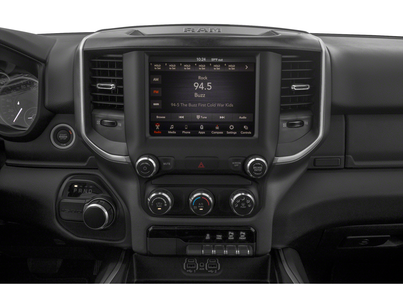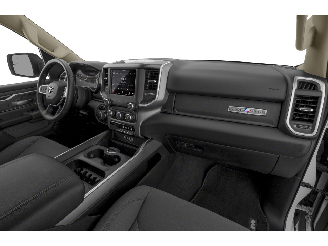 115V Auxiliary Power Outlet, 115V Auxiliary Rear Power Outlet, 2 USB Full Function/Charge Only Media Hub, 3 Rear Seat Head Restraints, 3.21 Rear Axle Ratio, 4 Way Front Headrests, 4-Wheel Disc Brakes, 400W Inverter, 48V Belt Starter Generator, 6 Speakers, 8.4 Touchscreen Display, ABS brakes, Air Conditioning, Air Conditioning ATC w/Dual Zone Control, Alloy wheels, AM/FM radio, Auto-Dimming Rear-View Mirror, Big Horn IP Badge, Big Horn Level 2 Equipment Group, Brake assist, Bumpers: chrome, Class IV Receiver Hitch, Cloth Bench Seat, Cluster 7.0 TFT Color Display, Compass, Dampened Tailgate, Delay-off headlights, Driver door bin, Dual front impact airbags, Dual front side impact airbags, Electronic Stability Control, Foam Bottle Insert (Door Trim Panel), Front anti-roll bar, Front Center Armrest w/Storage, Front fog lights, Front reading lights, Front Seat Back Map Pockets, Front wheel independent suspension, Fully automatic headlights, Glove Box Lamp, GPS Antenna Input, Heated door mirrors, Heated Front Seats, Heated Steering Wheel, Illuminated entry, Integrated Center Stack Radio, Leather steering wheel, Low tire pressure warning, Manual Adjust 4-Way Front Passenger Seat, Manufacturer's Statement of Origin, Occupant sensing airbag, Outside temperature display, Overhead airbag, Overhead console, Panic alarm, ParkSense Front/Rear Park Assist w/Stop, ParkView Rear Back-Up Camera, Passenger door bin, Passenger vanity mirror, Power 4-Way Driver Lumbar Adjust, Power 8-Way Driver Seat, Power Adjustable Pedals, Power door mirrors, Power Heated Fold Away Mirrors, Power steering, Power windows, Quick Order Package 27Z Big Horn/Lone Star, Radio data system, Radio: Uconnect 3 w/5 Display, Radio: Uconnect 4 w/8.4 Display, Rear 60/40 Folding Seat, Rear anti-roll bar, Rear Dome w/On/Off Switch Lamp, Rear Power Sliding Window, Rear seat center armrest, Rear step bumper, Rear Window Defroster, Remote keyless entry, Remote Start System, Security Alarm, Single Disc Remote CD Player, SiriusXM Satellite Radio, Speed control, Split folding rear seat, Steering Wheel Mounted Audio Controls, Sun Visors w/Illuminated Vanity Mirrors, Tachometer, Telescoping steering wheel, Tilt steering wheel, Traction control, Trip computer, Universal Garage Door Opener, Variably intermittent wipers, Voltmeter, Wheels: 18 x 8.