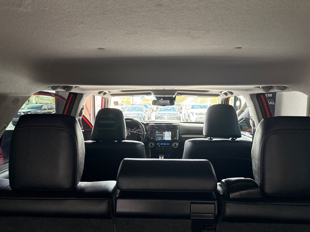 4WD, Black/Graphite w/SofTex Seat Trim, 15 Speakers, 3.727 Axle Ratio, 4-Wheel Disc Brakes, ABS brakes, Air Conditioning, Alloy wheels, AM/FM radio: SiriusXM, Anti-whiplash front head restraints, Apple CarPlay/Android Auto, Auto High-beam Headlights, Auto-dimming Rear-View mirror, Automatic temperature control, Black Lug Nuts, Brake assist, Bumpers: body-color, Compass, Driver door bin, Driver vanity mirror, Dual front impact airbags, Dual front side impact airbags, Dual Zone Auto Climate Control, Electronic Stability Control, Emergency communication system: Safety Connect (1-year trial), Fog Lights, Fox Shocks, Front anti-roll bar, Front Bucket Seats, Front Center Armrest, Front dual zone A/C, Front fog lights, Front reading lights, Front wheel independent suspension, Garage Door Opener, Garage door transmitter: HomeLink, Heated door mirrors, Heated Front Bucket Seats, Heated front seats, Heated Outside Rear-View Mirrors, Illuminated entry, Knee airbag, Leather Shift Knob, Low tire pressure warning, Moonroof w/Tilt Up & Slide, Multi-Terrain Back Monitor, Navigation System, Occupant sensing airbag, Outside temperature display, Overhead airbag, Overhead console, Panic alarm, Passenger door bin, Passenger vanity mirror, Power door mirrors, Power driver seat, Power moonroof, Power passenger seat, Power steering, Power windows, Radio: Premium Audio w/JBL, Rear anti-roll bar, Rear seat center armrest, Rear window defroster, Rear window wiper, Remote keyless entry, Roof rack, Roof Rack, Security system, SofTex Seat Trim, Speed control, Speed-sensing steering, Split folding rear seat, Spoiler, Steering wheel mounted audio controls, Tachometer, Telescoping steering wheel, Tilt steering wheel, Traction control, TRD Pro All Weather Floor Liner, TRD Pro Badging, TRD Pro Exhaust, TRD Shift Knob, Trip computer, Variably intermittent wipers, Wheel Locks, Wheels: 17 Matte Black Flow-Formed TRD Alloy, 4WD, Black/Graphite w/SofTex Seat Trim.