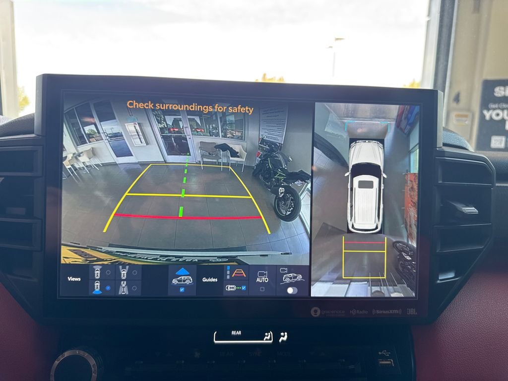 V6 Hybrid, 10-Speed Automatic, 4WD, 3.31 Axle Ratio, 3rd row seats: split-bench, 4-Wheel Disc Brakes, ABS brakes, Air Conditioning, Alloy wheels, AM/FM radio: SiriusXM, Anti-whiplash front head restraints, Apple CarPlay/Android Auto, Auto High-beam Headlights, Auto-dimming door mirrors, Auto-dimming Rear-View mirror, Automatic temperature control, Brake assist, Bumpers: body-color, Delay-off headlights, Driver door bin, Driver vanity mirror, Dual front impact airbags, Dual front side impact airbags, Electronic Stability Control, Emergency communication system: Safety Connect (10-year trial), Exterior Parking Camera Rear, Front anti-roll bar, Front Bucket Seats, Front Center Armrest w/Storage, Front dual zone A/C, Front fog lights, Front reading lights, Front wheel independent suspension, Fully automatic headlights, Headlight cleaning, Heated door mirrors, Heated front seats, Illuminated entry, Knee airbag, Leather steering wheel, Low tire pressure warning, Occupant sensing airbag, Outside temperature display, Overhead airbag, Overhead console, Panic alarm, Passenger door bin, Passenger vanity mirror, Power door mirrors, Power driver seat, Power moonroof, Power passenger seat, Power steering, Power windows, Rear air conditioning, Rear reading lights, Rear seat center armrest, Rear window defroster, Rear window wiper, Reclining 3rd row seat, Remote keyless entry, Security system, Speed control, Speed-sensing steering, Split folding rear seat, Spoiler, Steering wheel mounted audio controls, Tachometer, Telescoping steering wheel, Tilt steering wheel, Traction control, Trip computer, Turn signal indicator mirrors, Variably intermittent wipers, Voltmeter, V6 Hybrid, 10-Speed Automatic, 4WD.