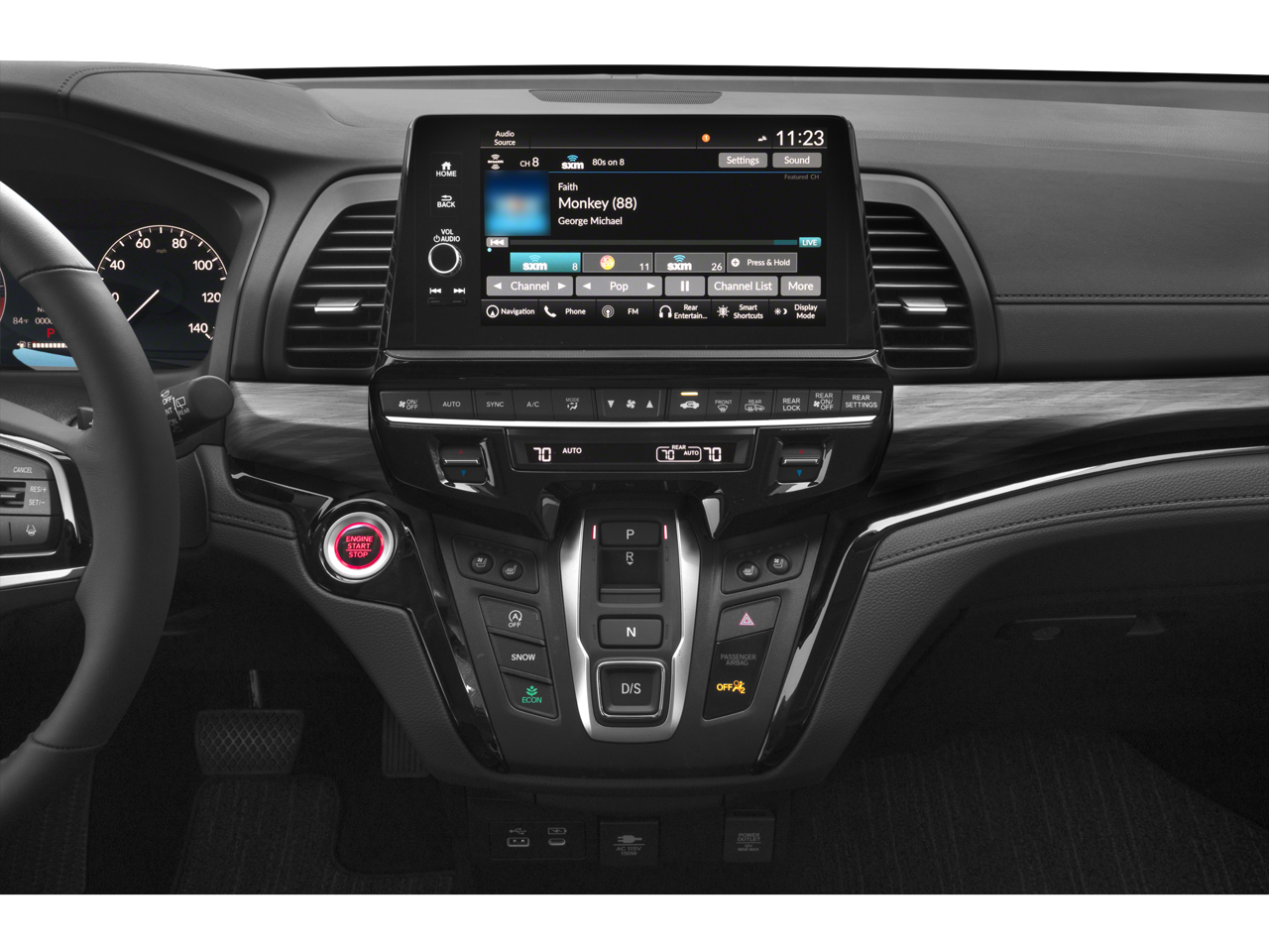 - Radio: 500-Watt AM/FM/HD Premium Audio System -inc: 11 speakers including subwoofer, 9" color touchscreen display, 7" TFT Meter, multi-zone audio, Bluetooth® HandsFreeLink, Bluetooth® streaming audio, HondaLink, HondaLink subscription services, Speed-Sensitive Volume Compensation (SVC), Radio Data System (RDS), wireless Apple CarPlay compatibility, wireless Android Auto compatibility, Wi-Fi Hotspot capability, SiriusXM, 2.5-amp USB smartphone/audio interface, CabinTalk in-car PA system, advanced rear entertainment system w/12.8" high-resolution screen, HDMI interface w/USB-A, headphone jack (3rd row), Honda Satellite-Linked Navigation System w/voice recognition and Honda HD digital traffic, CabinWatch rear seat monitor, illuminated steering wheel-mounted controls and fin-type roof-mounted antenna, All SiriusXM services require a subscription, sold separately by SiriusXM after the trial period, If you decide to continue service, the plan you choose will automatically renew at the then-current rates, Fees and taxes apply, See the SiriusXM customer agreement and privacy policy at www.siriusxm.com for full terms and how to cancel, which includes calling 1-866-635-2349, Available in the 48 contiguous U.S, and D.C, Some services and features are subject to device capabilities and location restrictions, All fees, content and features are subject to change, SiriusXM, Pandora and all related logos are trademarks of Sirius XM Radio Inc, and its respective subsidiaries