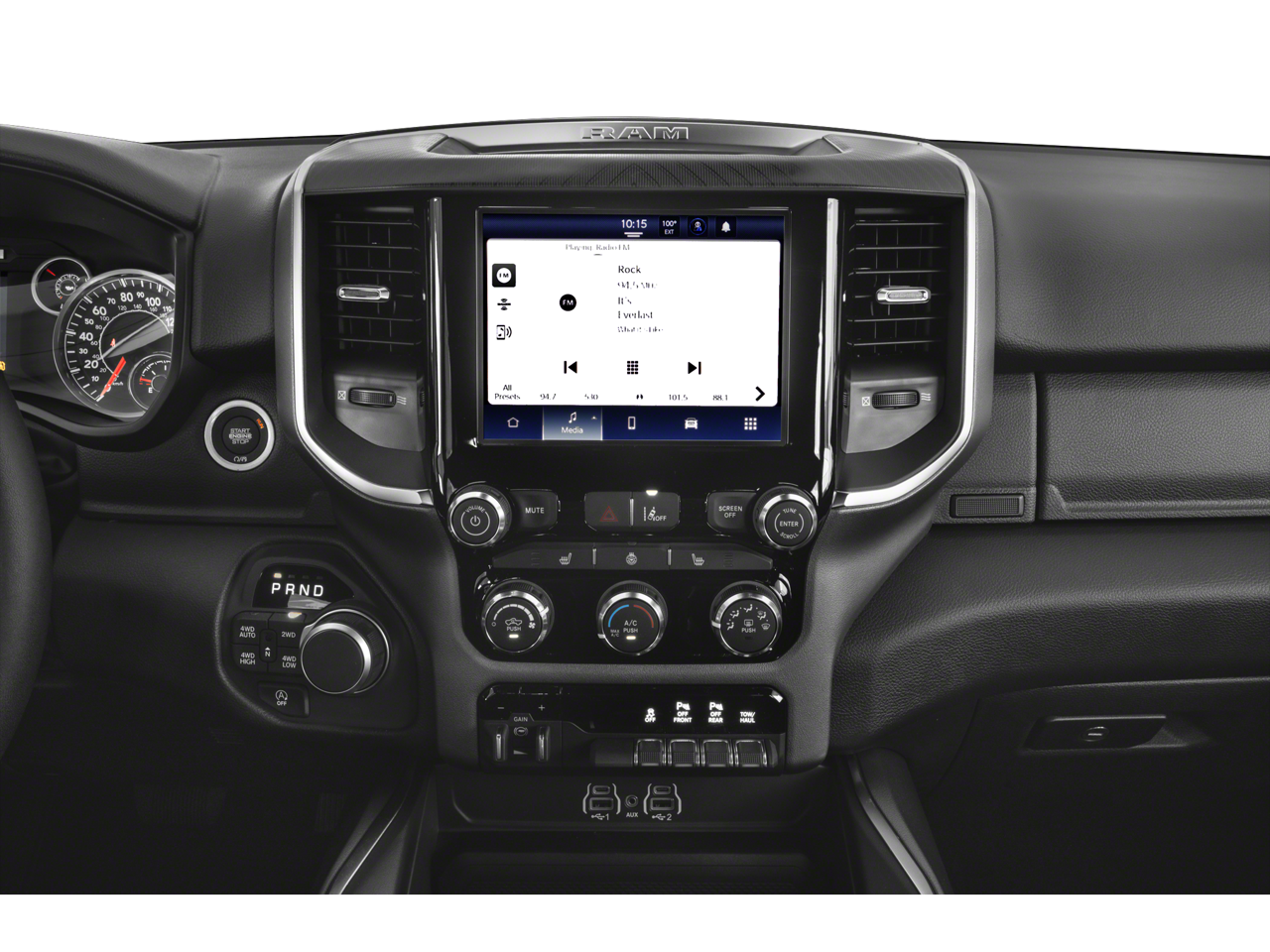 115V Auxiliary Power Outlet, 115V Auxiliary Rear Power Outlet, 12 Touchscreen Display, 2nd Row In Floor Storage Bins, 3 Rear Seat Head Restraints, 4 Way Front Headrests, 4-Wheel Disc Brakes, 400W Inverter, 4G LTE Wi-Fi Hot Spot, 6 Speakers, 9 Amplified Speakers w/Subwoofer, ABS brakes, Air Conditioning, Air Conditioning ATC w/Dual Zone Control, Alloy wheels, AM/FM radio, Apple CarPlay, Apple CarPlay/Android Auto, Auto High-beam Headlights, Auto Power-Folding Mirrors, Auto-Dimming Exterior Driver Mirror, Auto-Dimming Rear-View Mirror, Big Horn Level 2 Equipment Group, Black Exterior Mirrors, Black Premium Power Mirrors, Brake assist, Bumpers: chrome, Cloth Bench Seat, Cluster 7.0 TFT Color Display, Compass, Configurable Drive Mode, Connected Travel & Traffic Services, Connectivity - US/Canada, Convex Wide-Angle Exterior Mirror Insert, Delay-off headlights, Driver door bin, Dual front impact airbags, Dual front side impact airbags, Electronic Stability Control, Exterior Mirrors Courtesy Lamps, Exterior Mirrors w/Heating Element, Exterior Mirrors w/Supplemental Signals, Front anti-roll bar, Front Center Armrest w/Storage, Front fog lights, Front License Plate Bracket, Front reading lights, Front Seat Back Map Pockets, Front wheel independent suspension, Fully automatic headlights, Glove Box Lamp, Google Android Auto, GPS Antenna Input, GPS Navigation, HD Radio, Heated door mirrors, Heated Front Seats, Heated Steering Wheel, Illuminated entry, Integrated Voice Command w/Bluetooth®, Leather Wrapped Steering Wheel, LED Dome Lamp w/On/Off Switch, LED Footwell Lighting, Low tire pressure warning, Manual Adjust 4-Way Front Passenger Seat, Manual Folding Exterior Mirrors, Manufacturer's Statement of Origin, Media Hub w/2 Charge Only USBs, Occupant sensing airbag, Outside temperature display, Overhead airbag, Overhead console, Overhead LED Lamps, Panic alarm, ParkView Rear Back-Up Camera, Passenger door bin, Passenger vanity mirror, Power 2-Way Driver Lumbar Adjust, Power Adjust 8-Way Driver Seat, Power Adjustable Pedals, Power door mirrors, Power steering, Power windows, Premium Overhead Console, Quick Order Package 21Z Big Horn, Radio data system, Radio: Uconnect 5 Nav w/12.0 Display, Radio: Uconnect 5 W w/8.4 Display, RAM Grille Badge - Chrome, Rear 60/40 Folding Seat, Rear anti-roll bar, Rear Power Sliding Window, Rear seat center armrest, Rear step bumper, Rear Window Defroster, Remote keyless entry, Remote Tailgate Release, Security Alarm, SiriusXM w/360L, Speed control, Split folding rear seat, Steering Wheel Mounted Audio Controls, Sun Visors w/Illuminated Vanity Mirrors, Supplier Part Tracking (J-1), Tachometer, Telescoping steering wheel, Tilt steering wheel, Traction control, Trip computer, Universal Garage Door Opener, USB Host Flip, Variably intermittent wipers, Voltmeter, Wheels: 18 x 8 Cast-Aluminum Painted.