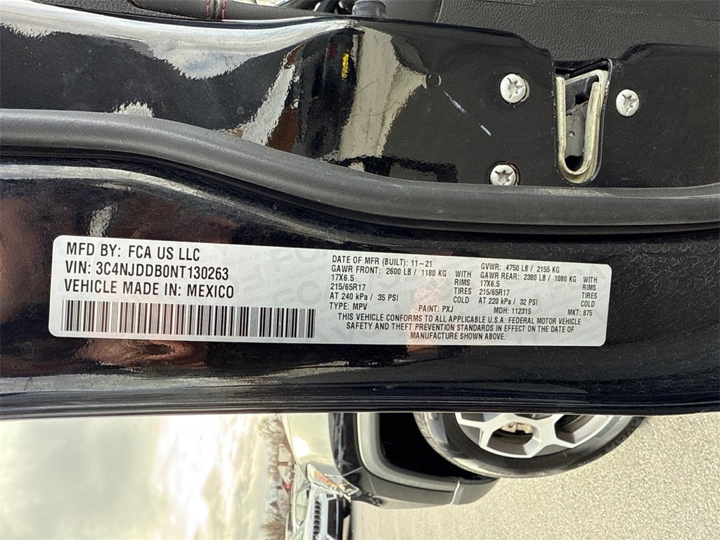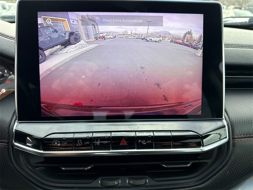 4WD, 10.1 Touchscreen Display, 115V Auxiliary Power Outlet, 2nd Row USB Type A/C Charge Only, 4 Pin Wiring Harness, 4-Wheel Disc Brakes, 4.334 Axle Ratio, 6 Speakers, ABS brakes, Air Conditioning, Alloy wheels, AM/FM radio: SiriusXM, Anti-whiplash front head restraints, Auto High-beam Headlights, Auto-dimming Rear-View mirror, Automatic temperature control, Brake assist, Bumpers: body-color, Class III Receiver Hitch, Compass, Delay-off headlights, Disassociated Touchscreen Display, Driver door bin, Driver vanity mirror, Dual front impact airbags, Dual front side impact airbags, Electronic Stability Control, Emergency communication system: SiriusXM Guardian, Four wheel independent suspension, Front anti-roll bar, Front Bucket Seats, Front Center Armrest w/Storage, Front dual zone A/C, Front fog lights, Front License Plate Bracket, Front reading lights, Fully automatic headlights, Global Telematics Box Module (TBM), Heated door mirrors, Heated Front Seats, Illuminated entry, Knee airbag, Leather Shift Knob, Leather Wrapped Steering Wheel, Low tire pressure warning, Occupant sensing airbag, Outside temperature display, Overhead airbag, Overhead console, Panic alarm, ParkView Rear Back-Up Camera, Passenger door bin, Passenger vanity mirror, Power 2-Way Driver Lumbar Adjust, Power Adjust 8-Way Driver Seat, Power door mirrors, Power steering, Power windows, Premium Cloth/Leather Trim Bucket Seats, Quick Order Package 2GE, Radio: Uconnect 5 w/10.1 Display, Rain sensing wipers, Rear anti-roll bar, Rear seat center armrest, Rear window defroster, Rear window wiper, Remote keyless entry, Remote Start System, Reversible Carpet/Vinyl Cargo Mat, Roof rack: rails only, Security system, Speed control, Split folding rear seat, Spoiler, Steering wheel mounted audio controls, Tachometer, Telescoping steering wheel, Tilt steering wheel, Traction control, Trailer Tow Group, Trailhawk Convenience Group, Trip computer, Turn signal indicator mirrors, Variably intermittent wipers, Vehicle Information Center, Wheels: 17 x 6.5 Painted Diamond Cut Aluminum, Windshield Wiper De-Icer, 4WD.