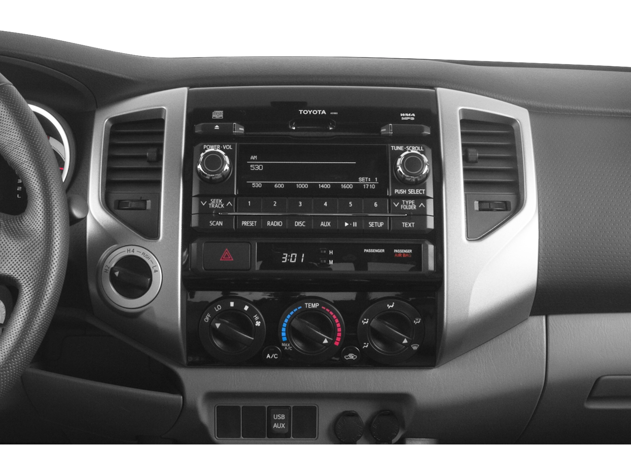 4WD, 16 x 7J+30 Style Steel Wheels, 3.727 Axle Ratio, 6 Speakers, ABS brakes, Air Conditioning, AM/FM radio, Anti-whiplash front head restraints, Brake assist, CD player, Driver door bin, Dual front impact airbags, Dual front side impact airbags, Electronic Stability Control, Front anti-roll bar, Front Bucket Seats, Front Center Armrest, Front reading lights, Front wheel independent suspension, Illuminated entry, Low tire pressure warning, Occupant sensing airbag, Overhead airbag, Overhead console, Passenger cancellable airbag, Passenger door bin, Passenger vanity mirror, Power steering, Power windows, Radio: Entune AM/FM/CD, Rear step bumper, Speed-sensing steering, Tachometer, Telescoping steering wheel, Tilt steering wheel, Traction control, 4WD.