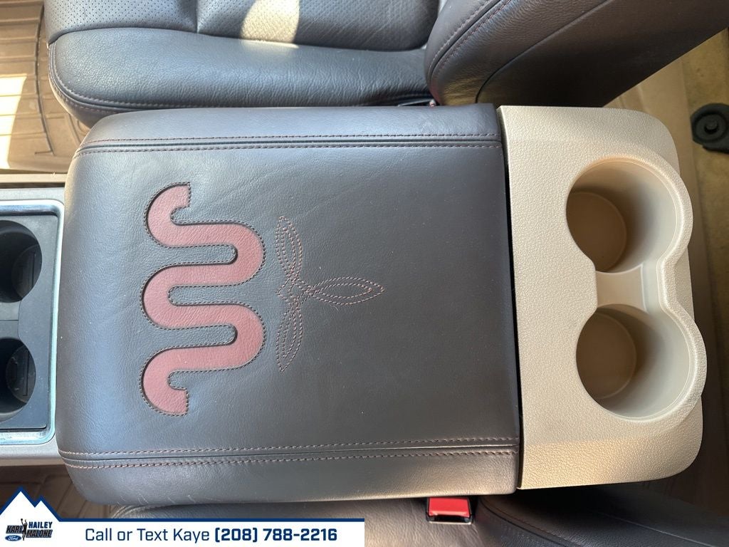 4WD, 10 Speakers, 18 Chrome Clad Cast Aluminum Wheels, 20 Chrome Clad Cast Aluminum Wheels, 3.73 Axle Ratio, 4-Wheel Disc Brakes, ABS brakes, Adjustable pedals, Air Conditioning, Alloy wheels, AM/FM radio: SiriusXM, Auto-dimming Rear-View mirror, Automatic temperature control, Brake assist, Bumpers: chrome, CD player, Compass, Delay-off headlights, Driver door bin, Driver vanity mirror, Dual front impact airbags, Dual front side impact airbags, Electronic Locking w/3.55 Axle Ratio, Electronic Stability Control, Engine Block Heater, Exterior Parking Camera Rear, Extra Heavy-Duty 200-Amp Alternator, Front anti-roll bar, Front Bucket Seats, Front Center Armrest, Front dual zone A/C, Front fog lights, Front reading lights, Fully automatic headlights, FX4 Off-Road Package, GVWR: 10,000 lb Payload Package, Heated door mirrors, Heated Rear Seats, Illuminated entry, King Ranch Monochromatic Paint Package, King Ranch w/Chrome Package, Leather steering wheel, Low tire pressure warning, Order Code 608A, Outside temperature display, Overhead airbag, Overhead console, Panic alarm, Passenger door bin, Passenger vanity mirror, Power door mirrors, Power driver seat, Power Moonroof, Power passenger seat, Power steering, Power windows, PowerScope Trailer Tow Mirrors, Premium audio system: Sony, Premium Leather Seating Surfaces 40/Console/40, Radio data system, Radio: Premium Sony Audio w/Single-CD/MP3, Rear Parking Sensors, Rear reading lights, Rear seat center armrest, Rear step bumper, Rear window defroster, Remote keyless entry, Remote Start System, Security system, SiriusXM Satellite Radio, Speed control, Split folding rear seat, Steering wheel mounted audio controls, SYNC w/MyFord Touch & SYNC Services, Tachometer, Tailgate Step & Handle, Telescoping steering wheel, Tilt steering wheel, Traction control, Trip computer, Turn signal indicator mirrors, Unique King Ranch Leather 40/Console/40 Front Seats, Universal Garage Door Opener, Upfitter Switches (4), Variably intermittent wipers, Voice-Activated Navigation, 4WD.