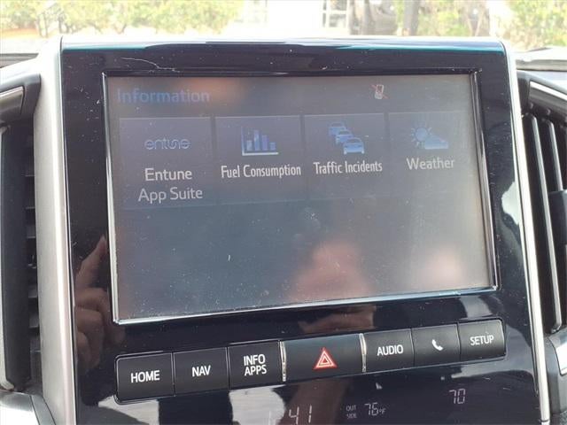 Leather, 14 Speakers, 3.307 Axle Ratio, 3rd row seats: split-bench, 4-Wheel Disc Brakes, A/V remote, ABS brakes, Air Conditioning, Alloy wheels, AM/FM radio: SiriusXM, Anti-whiplash front head restraints, Auto High-beam Headlights, Auto tilt-away steering wheel, Auto-dimming door mirrors, Auto-dimming Rear-View mirror, Automatic temperature control, Bodyside moldings, Brake assist, Bumpers: body-color, CD player, Compass, Delay-off headlights, Driver door bin, Driver vanity mirror, Dual front impact airbags, Dual front side impact airbags, DVD-Audio, Electronic Stability Control, Emergency communication system: Safety Connect, Exterior Parking Camera Rear, Front anti-roll bar, Front Bucket Seats, Front Center Armrest w/Storage, Front dual zone A/C, Front fog lights, Front reading lights, Front wheel independent suspension, Fully automatic headlights, Garage door transmitter: HomeLink, Headlight cleaning, Headphones, Heated door mirrors, Heated front seats, Heated rear seats, Heated steering wheel, Illuminated entry, Knee airbag, Leather steering wheel, Low tire pressure warning, Memory seat, Multi-Stage Heated and Ventilated Front Seats, Navigation System, Occupant sensing airbag, Outside temperature display, Overhead airbag, Overhead console, Panic alarm, Passenger door bin, Passenger vanity mirror, Power door mirrors, Power driver seat, Power moonroof, Power passenger seat, Power steering, Power windows, Radio data system, Radio: Entune Premium w/JBL Audio & Navigation, Rain sensing wipers, Rear air conditioning, Rear anti-roll bar, Rear audio controls, Rear dual zone A/C, Rear reading lights, Rear seat center armrest, Rear side impact airbag, Rear window defroster, Rear window wiper, Reclining 3rd row seat, Remote keyless entry, Roof rack, Security system, Semi-Aniline Perforated Leather-Trimmed Seating, Speed control, Speed-sensing steering, Speed-Sensitive Wipers, Split folding rear seat, Spoiler, Steering wheel memory, Steering wheel mounted audio controls, Tachometer, Telescoping steering wheel, Tilt steering wheel, Traction control, Trip computer, Turn signal indicator mirrors, Variably intermittent wipers, Ventilated front seats, Voltmeter, Wheels: 18 Split-Spoke Alloy, Leather.