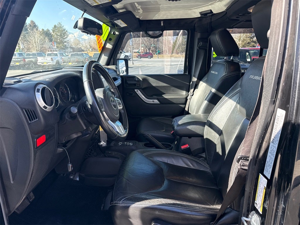 17 x 7.5 Polished Mineral Gray Wheels, 4-Wheel Disc Brakes, 4.10 Rear Axle Ratio, 40GB Hard Drive w/28GB Available, 5-Year SiriusXM Travel Link Service, 6.5 Touchscreen Display, 8 Speakers, ABS brakes, Accent Stitching, Add 4.10 Axle Ratio, Air Conditioning, Air Conditioning w/Auto Temperature Control, Air Filtering, Alloy wheels, Alpine 9-Speaker w/All Weather Subwoofer, AM/FM radio: SiriusXM, Audio Jack Input for Mobile Devices, Auto-dimming Rear-View mirror, Black 3-Piece Hard Top, Black/Chrome Screws Fuel Filler Door, Brake assist, CD player, Chrome/Leather Wrapped Shift Knob, Class II Receiver Hitch, Cloth Seats w/Adjustable Head Restraints, Compass, Connectivity Group, Delete Sunrider Soft Top, Driver door bin, Driver Height Adjuster Seat, Driver vanity mirror, Dual front impact airbags, Electronic Stability Control, Freedom Panel Storage Bag, Front anti-roll bar, Front Bucket Seats, Front Center Armrest w/Storage, Front fog lights, Front reading lights, Front Seat Back Map Pockets, Fully automatic headlights, GPS Navigation, Heated door mirrors, Heated Front Seats, Hood w/Power Dome, Humidity Sensor, Illuminated entry, Integrated roll-over protection, Jeep Trail Rated Kit, Leather steering wheel, Leather Trimmed Bucket Seats, Low tire pressure warning, Manufacturer's Statement of Origin, Max Tow Package, MOPAR Slush Mats, Occupant sensing airbag, Outside temperature display, Panic alarm, Passenger door bin, Passenger vanity mirror, Performance Suspension, Power door mirrors, Power steering, Power windows, Premium Black Sunrider Soft Top, Premium EVIC Message Center, Quick Order Package 24J Rubicon Hard Rock (DISC), Radio data system, Radio: 130, Radio: 430 Nav, Rear anti-roll bar, Rear Window Defroster, Rear Window Wiper/Washer, Red Front & Rear Tow Hooks, Red Trail Rated Badge, Remote keyless entry, Remote Start System, Remote USB Port, Rubicon Hard Rock Package, Rubicon Hood Decal, Security system, Silver Interior Accents, SiriusXM Travel Link, Speed control, Split folding rear seat, Steel Front Bumper, Steel Rear Bumper, Steering wheel mounted audio controls, Tachometer, Tilt steering wheel, Tire Pressure Monitoring Display, Traction control, Trailer Tow w/4-Pin Connector Wiring, Trip computer, Uconnect Voice Command w/Bluetooth®, Variably intermittent wipers, Vehicle Information Center, Wheels: 17 x 7.5 Polished Semi-Gloss Blk (DISC).