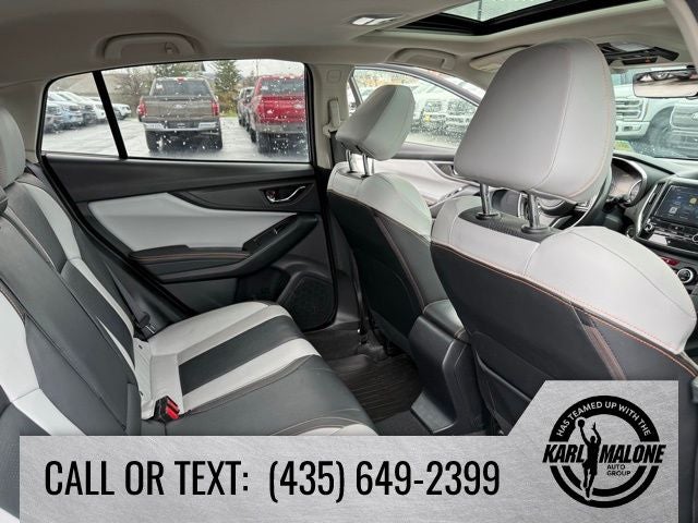 Recent Arrival! 3.90 Axle Ratio, 4-Wheel Disc Brakes, 6 Speakers, ABS brakes, Adaptive Cruise Control, Air Conditioning, All-Weather Floor Liners, Alloy wheels, AM/FM radio: SiriusXM, Apple CarPlay/Android Auto, Auto-Dimming Mirror w/Compass & HomeLink, Automatic temperature control, Brake assist, Bumpers: body-color, CD player, Charge-Coupled Device Cameras, Driver door bin, Driver vanity mirror, Dual front impact airbags, Dual front side impact airbags, Electronic Stability Control, Emergency communication system: STARLINK, Exterior Parking Camera Rear, EyeSight System & Moonroof Package, Four wheel independent suspension, Front anti-roll bar, Front Bucket Seats, Front Center Armrest, Front fog lights, Front reading lights, Fully automatic headlights, Heated door mirrors, Heated Front Bucket Seats, Heated front seats, High Beam Assist (HBA), Illuminated entry, Knee airbag, Lane Keep Assist, Leather Shift Knob, Leather-Trimmed Upholstery, Low tire pressure warning, Occupant sensing airbag, Outside temperature display, Overhead airbag, Overhead console, Panic alarm, Passenger door bin, Passenger vanity mirror, Popular Package #2, Power door mirrors, Power driver seat, Power Moonroof, Power steering, Power windows, Pre-Collision Brake Assist, Pre-Collision Braking System, Pre-Collision Following Distance Warning, Radio data system, Radio: Subaru Starlink 8.0 Multimedia Plus System, Rear anti-roll bar, Rear Bumper Cover, Rear seat center armrest, Rear Seatback Protector, Rear window defroster, Rear window wiper, Remote keyless entry, Reverse Automatic Braking System (RAB), Roof rack: rails only, Security system, Speed control, Speed-sensing steering, Splash Guards, Split folding rear seat, Spoiler, Steering wheel mounted audio controls, Subaru Starlink Smartphone Integration, Tachometer, Telescoping steering wheel, Tilt steering wheel, Traction control, Trip computer, Turn signal indicator mirrors, Variably intermittent wipers, Wheel Locks - Alloy Wheels, Wheels: 18 x 7.0J Aluminum Alloy.