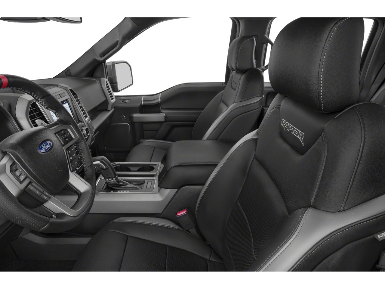 4WD, 10-Way Power Driver & Passenger Seats, 17 Cast Aluminum Wheels, 360 Degree Camera, 4-Wheel Disc Brakes, 4.10 Front Axle w/Torsen Differential, 7 Speakers, 8-Way Power Driver's Seat w/Power Lumbar, 8 Productivity Screen, ABS brakes, Adaptive Cruise Control w/Stop-and-Go, Advanced Security Pack, Air Conditioning, Alloy wheels, AM/FM radio: SiriusXM, Ambient Lighting - Ice Blue Color Only, AppLink/Apple CarPlay and Android Auto, Auto High-beam Headlights, Auto-dimming Rear-View mirror, BLIS Blind Spot Information System, Brake assist, Compass, Delay-off headlights, Driver door bin, Driver vanity mirror, Dual front impact airbags, Dual front side impact airbags, Dual-Zone Electronic Automatic Temperature Control, Electronic Locking w/4.10 Axle Ratio, Electronic Stability Control, Emergency communication system: SYNC 3 911 Assist, Equipment Group 802A Luxury, Exterior Parking Camera Rear, Front anti-roll bar, Front Bucket Seats, Front Center Armrest, Front License Plate Bracket, Front reading lights, Front wheel independent suspension, Fully automatic headlights, GVWR: 7,050 lbs Payload Package, Heated Leather 40/Console/40 Front Seats, Heated Steering Wheel, Illuminated entry, Inflatable Rear Safety Belts, Integrated Trailer Brake Controller, Intelligent Access w/Push-Button Start, Lane Keeping System w/Alert & Assist, Leather steering wheel, LED Box Lighting, LED Sideview Mirror Spotlights, Low tire pressure warning, Memory System (Seat, Pedal, Exterior Mirror), Occupant sensing airbag, Outside temperature display, Overhead airbag, Overhead console, Panic alarm, Passenger door bin, Passenger vanity mirror, Power door mirrors, Power driver seat, Power Glass Heated Sideview Mirrors, Power steering, Power Tilt/Telescoping Steering Column w/Memory, Power windows, Power-Adjustable Pedals, Power-Sliding Rear Window, Pro Trailer Backup Assist, Radio data system, Radio: B&O Sound System by Bang & Olufsen, Radio: SiriusXM w/7 Speakers, Rain-Sensing Windshield Wipers, Raptor Carbon Fiber Package, Raptor Technology Package, Rear Parking Sensors, Rear reading lights, Rear step bumper, Rear window defroster, Remote keyless entry, Remote Start System w/Remote Tailgate Release, Second-Row Heated Seats, Security system, Speed control, Speed-sensing steering, Split folding rear seat, Steering wheel mounted audio controls, SYNC 3, Tachometer, Tailgate Applique FORD, Tailgate Step w/Tailgate Lift Assist, Telescoping steering wheel, Tilt steering wheel, Traction control, Trip computer, Twin Panel Moonroof, Unique Cloth Trim Seats, Unique High Gloss Black Carbon Fiber Shift Knob, Universal Garage Door Opener, Variably intermittent wipers, Voice-Activated Touchscreen Navigation, 4WD.