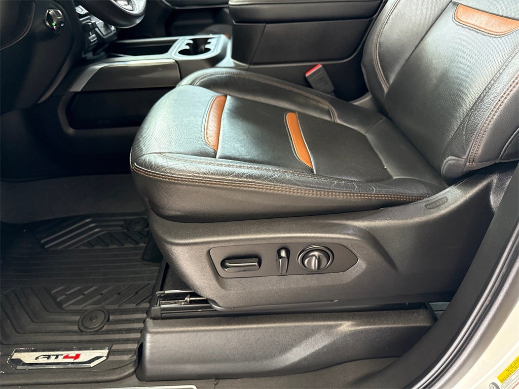 10-Speed Automatic, 4WD, Jet Black With Kalahari Accents Leather, 10-Way Power Driver Seat Adjuster w/Lumbar, 10-Way Power Passenger Seat Adjuster w/Lumbar, 12-Volt Rear Auxiliary Power Outlet, 120-Volt Bed Mounted Power Outlet, 120-Volt Instrument Panel Power Outlet, 2 USB Ports (First Row), 2 USB Ports Inside Console, 2-Speed Active Transfer Case, 220 Amp Alternator, 2nd Row Dual USB Charge-Only Ports, 2nd Row Heated Outboard Seats, 4-Wheel Disc Brakes, 4.2 Diagonal Color Display Driver Info Center, 4G LTE Wi-Fi Hotspot Capable, 6 Speakers, 6-Speaker Audio System Feature, 6 Rectangular Black Tubular Assist Steps (LPO), 8 Driver Information Center, ABS brakes, Air Conditioning, All-Weather Floor Liners w/AT4 Logo (LPO), Alloy wheels, AM/FM radio: SiriusXM with 360L, Apple CarPlay/Android Auto, AT4 Preferred Package, AT4 Premium Package, Auto-dimming door mirrors, Auto-Dimming Inside Rearview Mirror w/Camera, Auto-dimming Rear-View mirror, Automatic Emergency Braking, Automatic temperature control, Bed View Camera, Body Color Wheel Arch Moldings (LPO), Bose Premium 7 Speaker Sound System, Brake assist, Bumpers: body-color, Compass, Compass Located In Instrument Cluster, Deep-Tinted Glass, Delay-off headlights, Driver Alert Package I, Driver Alert Package II, Driver door bin, Driver Memory, Driver vanity mirror, Dual front impact airbags, Dual front side impact airbags, Electric Rear-Window Defogger, Electrical Lock Control Steering Column, Electronic Stability Control, Engine Block Heater, Exhaust Brake, Floor-Mounted Center Console, Following Distance Indicator, Forward Collision Alert, Front anti-roll bar, Front Bucket Seats, Front Center Armrest, Front dual zone A/C, Front fog lights, Front reading lights, Front wheel independent suspension, Fully automatic headlights, GMC Connected Access Capable, Gooseneck/5th Wheel Package, Gooseneck/5th Wheel Prep Package, HD Radio, HD Rear Vision Camera, HD Surround Vision w/2 Trailer View Camera Provisions, Heated door mirrors, Heated Driver & Front Outboard Passenger Seats, Heated front seats, Heated rear seats, Heated steering wheel, Heavy-Duty 80 Amp Battery, High Idle Switch, Hill Descent Control, Hitch Guidance w/Hitch View, Illuminated entry, In-Vehicle Trailering System App, Integrated Trailer Brake Controller, IntelliBeam Automatic High Beam On/Off, Keyless Open & Start, Lane Change Alert w/Side Blind Zone Alert, Lane Departure Warning System, LED Cargo Area Lighting, LED Smoked Amber Roof Marker Lamps, Low tire pressure warning, Manual Tilt-Wheel/Telescoping Steering Column, Memory seat, Multicolor 15 Diagonal Head-Up Display, Occupant sensing airbag, Off-Road Suspension, OnStar & GMC Connected Services Capable, Outside temperature display, Overhead airbag, Overhead console, Painted Blk Surround Grille w/High Gloss Blk Mesh, Panic alarm, Passenger door bin, Passenger vanity mirror, Perforated Leather-Appointed Front Seat Trim, Pickup Bed, Power Door Locks, Power door mirrors, Power driver seat, Power Front Passenger Windows w/Express Up/Down, Power Front Windows w/Driver Express Up/Down, Power passenger seat, Power Rear Windows w/Express Down, Power Sliding Rear Window w/Defogger, Power steering, Power Sunroof, Power windows, Preferred Equipment Group 4SB, Premium audio system: Premium GMC Infotainment System, ProGrade Trailering System, Radio: AM/FM w/Prem GMC Infotainment System & Navi, Radio: AM/FM w/Premium GMC Infotainment System, Rear Cross Traffic Alert, Rear reading lights, Rear seat center armrest, Rear step bumper, Rear Wheelhouse Liners, Rear window defroster, Red Recovery Hooks, Remote keyless entry, Remote Vehicle Starter System, Safety Alert Seat, Security system, SiriusXM w/360L, Speed control, Speed-sensing steering, Split folding rear seat, Spray-On Pickup Bed Liner w/AT4 Logo, Steering Wheel Audio Controls, Steering wheel mounted audio c