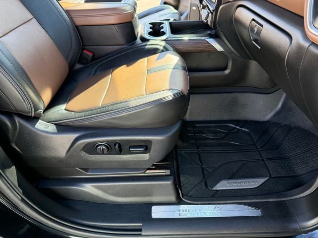 10-Speed Automatic, 4WD, Jet Black/Umber Leather, 10-Way Power Driver Seat Adjuster w/Lumbar, 10-Way Power Passenger Seat Adjuster w/Lumbar, 12-Volt Rear Auxiliary Power Outlet, 120-Volt Bed Mounted Power Outlet, 120-Volt Instrument Panel Power Outlet, 170 Amp Alternator, 220 Amp Alternator, 2nd Row Dual USB Charge-Only Ports, 2nd Row Heated Outboard Seats, 4-Wheel Disc Brakes, 4G LTE Wi-Fi Hotspot Capable, 6 Rectangular Chromed Tubular Assist Steps, 7 Speakers, 8 Driver Information Center, ABS brakes, Advanced Trailering System, Air Conditioning, Alloy wheels, AM/FM radio: SiriusXM with 360L, Apple CarPlay/Android Auto, Auto-dimming door mirrors, Auto-Dimming Inside Rear-View Mirror, Auto-Dimming Inside Rearview Mirror w/Camera, Auto-dimming Rear-View mirror, Automatic Emergency Braking, Automatic temperature control, Bed View Camera w/2 Trailer Camera Provisions, Bluetooth® For Phone, Bose Premium 7 Speaker Sound System, Brake assist, Bumpers: body-color, Chevrolet Connected Access Capable, Chevytec Spray-On Black Bedliner w/Chevrolet Logo, Chrome Front Grille Bar w/Chrome Grille Inserts, Chrome Mirror Caps, Chrome Recovery Hooks, Color-Keyed Carpeting Floor Covering, Compass, Compass Located In Instrument Cluster, Deep-Tinted Glass, Delay-off headlights, Driver door bin, Driver Memory, Driver vanity mirror, Dual front impact airbags, Dual front side impact airbags, Durabed Pickup Bed, Electric Rear-Window Defogger, Electrical Lock Control Steering Column, Electronic Stability Control, Engine Block Heater, Exhaust Brake, Floor-Mounted Center Console, Following Distance Indicator, Forward Collision Alert, Front anti-roll bar, Front Bucket Seats, Front Carpeted Floor Mats, Front Center Armrest, Front dual zone A/C, Front fog lights, Front LED Fog Lamps, Front reading lights, Front wheel independent suspension, Fully automatic headlights, Garage door transmitter, Gooseneck/5th Wheel Prep Package, HD Radio, HD Surround Vision w/2 Trailer View Camera Provisions, Heated door mirrors, Heated Driver & Front Outboard Passenger Seats, Heated front seats, Heated rear seats, Heated Steering Wheel, Heated steering wheel, Heavy-Duty 80 Amp Battery, High Country Deluxe, Hill Descent Control, Hitch Guidance w/Hitch View, Illuminated entry, Integrated Trailer Brake Controller, IntelliBeam Automatic High Beam On/Off, Keyless Open & Start, Lane Change Alert w/Side Blind Zone Alert, Lane Departure Warning System, Leather-Wrapped Steering Wheel, LED Cargo Area Lighting, Low tire pressure warning, Manual Tilt/Telescoping Steering Column, Memory seat, Multicolor 15 Diagonal Head-Up Display, Navigation System, Occupant sensing airbag, OnStar & Chevrolet Connected Services Capable, Outside temperature display, Overhead airbag, Overhead console, Panic alarm, Passenger door bin, Passenger vanity mirror, Perforated Leather Seating Surfaces, Polished Exhaust Tip, Power Door Locks, Power door mirrors, Power driver seat, Power Front Passenger Windows w/Express Up/Down, Power Front Windows w/Driver Express Up/Down, Power passenger seat, Power Rear Windows w/Express Down, Power Sliding Rear Window w/Defogger, Power steering, Power Sunroof, Power windows, Power-Adjustable Outside Mirrors, Power-Retractable Assist Steps, Preferred Equipment Group 3LZ, Premium audio system: Chevrolet Infotainment 3 Premium, Radio: Chevrolet Infotainment 3 Premium System, Rear Carpeted Floor Mats, Rear Cross Traffic Alert, Rear reading lights, Rear seat center armrest, Rear step bumper, Rear Wheelhouse Liners, Rear window defroster, Remote keyless entry, Remote Vehicle Starter System, Safety Alert Seat, Safety Package II, Security system, SiriusXM w/360L, Speed control, Speed-sensing steering, Split folding rear seat, Steering Wheel Audio Controls, Steering wheel mounted audio controls, Steering Wheel Mounted Electronic Cruise Contro