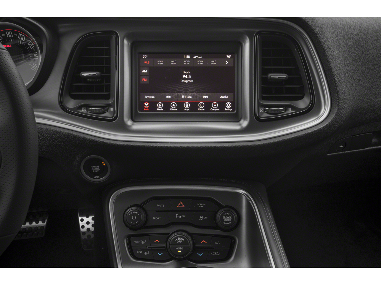 4-Wheel Disc Brakes, 6 Speakers, ABS brakes, Air Conditioning, Alloy wheels, AM/FM radio, Anti-whiplash front head restraints, Apple CarPlay, Apple CarPlay/Android Auto, Auto-dimming Rear-View mirror, Automatic temperature control, Black Fuel Filler Door, Black Grille w/Bezel, Blacktop Package, Brake assist, Bumpers: body-color, Challenger Blacktop Grille Badge, Compass, Delay-off headlights, Driver door bin, Driver vanity mirror, Dual front impact airbags, Dual front side impact airbags, Electronic Stability Control, For More Info, Call 800-643-2112, Four wheel independent suspension, Front anti-roll bar, Front Bucket Seats, Front Center Armrest, Front dual zone A/C, Front fog lights, Front reading lights, Fully automatic headlights, Garage door transmitter, Gloss Black I/P Cluster Trim Rings, Google Android Auto, GPS Antenna Input, GT Black Grille Badge, Heated door mirrors, Houndstooth Cloth Performance Seats, Illuminated entry, Integrated Center Stack Radio, Integrated Voice Command w/Bluetooth®, Leather Shift Knob, Low tire pressure warning, Media Hub (2 USB, AUX), Outside temperature display, Overhead airbag, Overhead console, Panic alarm, ParkView Rear Back-Up Camera, Passenger door bin, Passenger vanity mirror, Power door mirrors, Power driver seat, Power steering, Power windows, Quick Order Package 2EL, Radio data system, Radio: Uconnect 4 w/7 Display, Rear anti-roll bar, Rear Black Spoiler, Rear reading lights, Rear seat center armrest, Rear window defroster, Remote keyless entry, Satin Black Dodge Tail Lamp Badge, Security system, SiriusXM Radio Service, SiriusXM Satellite Radio, Speed control, Speed-sensing steering, Split folding rear seat, Spoiler, Sport steering wheel, Steering wheel mounted audio controls, Tachometer, Telescoping steering wheel, Tilt steering wheel, Traction control, Trip computer, USB Host Flip, Variably intermittent wipers, Wheels: 20 x 8.0 Black Noise Painted, Wheels: 20 x 8.0 Satin Carbon Painted.