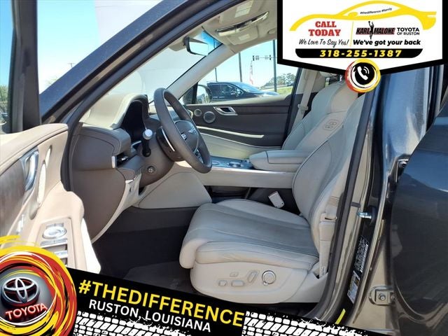 12 Speakers, 3-Zone Climate, 4-Wheel Disc Brakes, 4.363 Axle Ratio, ABS brakes, Active Motion Seat, Air Conditioning, Alloy wheels, AM/FM radio: SiriusXM, Android Auto & Apple CarPlay, Anti-whiplash front head restraints, Auto High-beam Headlights, Auto tilt-away steering wheel, Auto-dimming door mirrors, Auto-dimming Rear-View mirror, Auto-leveling suspension, Automatic temperature control, Blind-Spot View Monitor, Brake assist, Bumper Applique, Bumpers: body-color, Compass, Delay-off headlights, Driver door bin, Driver vanity mirror, Dual front impact airbags, Dual front side impact airbags, Electronic Stability Control, Electronically Controlled Suspension, Emergency communication system: Genesis Connected Services, Exterior Parking Camera Rear, Four wheel independent suspension, Front anti-roll bar, Front Bucket Seats, Front Center Armrest, Front dual zone A/C, Front reading lights, Fully automatic headlights, Garage door transmitter: HomeLink, Genuine wood console insert, Genuine wood dashboard insert, Genuine wood door panel insert, Heads-Up Display, Heated & Ventilated Front Bucket Seats, Heated 2nd Row Seats, Heated door mirrors, Heated front seats, Heated steering wheel, Illuminated entry, Knee airbag, Leather Seating Surfaces, Leather steering wheel, Leatherette Seating Surfaces, Lexicon Premium Audio w/21-Speakers, Low tire pressure warning, Memory seat, Navigation System, Occupant sensing airbag, Outside temperature display, Overhead airbag, Overhead console, Panic alarm, Passenger door bin, Passenger vanity mirror, Power door mirrors, Power driver seat, Power Driver Seat Bolster & Cushion Extension, Power Liftgate, Power moonroof, Power passenger seat, Power steering, Power windows, Prestige Package 04, Radio data system, Radio: AM/FM/SiriusXM/HD Premium Audio System, Rain sensing wipers, Rear air conditioning, Rear anti-roll bar, Rear Parking Collision-Avoidance Assist, Rear reading lights, Rear seat center armrest, Rear side impact airbag, Rear window defroster, Rear window wiper, Remote keyless entry, Remote Smart Parking Assist, Road Active Noise Cancellation, Security system, Speed control, Speed-sensing steering, Speed-Sensitive Wipers, Split folding rear seat, Spoiler, Steering wheel memory, Steering wheel mounted audio controls, Surround View Monitor, Tachometer, Telescoping steering wheel, Tilt steering wheel, Tow Hitch, Traction control, Trip computer, Turn signal indicator mirrors, Variably intermittent wipers, Ventilated front seats, Wheel Locks, Wheels: 19 x 8.5J Alloy, Wheels: 20 x 8.5J Alloy, Wheels: 22 x 9.5J Alloy.