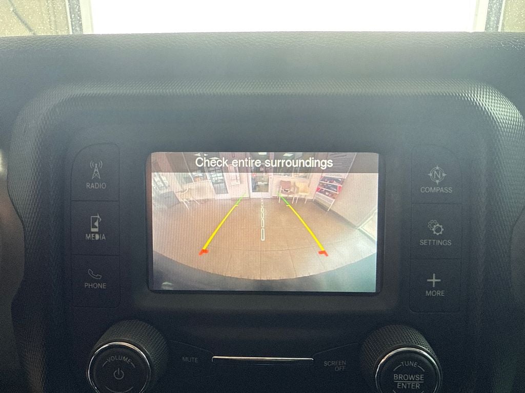 3.45 Rear Axle Ratio, 4-Wheel Disc Brakes, 8 Speakers, ABS brakes, Air Conditioning, AM/FM radio, Anti-Spin Differential Rear Axle, Aux Battery, Black 3-Piece Hard Top, Brake assist, Cloth Low-Back Bucket Seats, Compass, Delay-off headlights, Driver door bin, Driver vanity mirror, Dual front impact airbags, Dual front side impact airbags, Electronic Stability Control, Freedom Panel Storage Bag, Front anti-roll bar, Front Bucket Seats, Front Center Armrest w/Storage, Front fog lights, Front reading lights, Integrated roll-over protection, Low tire pressure warning, Manufacturer's Statement of Origin, No Soft Top, Non-Lock Fuel Cap w/o Discriminator, Normal Duty Suspension, Occupant sensing airbag, Outside temperature display, ParkView Rear Back-Up Camera, Passenger door bin, Passenger vanity mirror, Power steering, Quick Order Package 25B Sport, Radio data system, Radio: Uconnect 3 w/5 Display, Rear anti-roll bar, Rear reading lights, Rear Window Defroster, Rear Window Wiper/Washer, Speed control, Split folding rear seat, Steering wheel mounted audio controls, Stop-Start Dual Battery System, Tachometer, Telescoping steering wheel, Tilt steering wheel, Traction control, Trip computer, Variably intermittent wipers, Wheels: 17 x 7.5 Black Steel Styled.