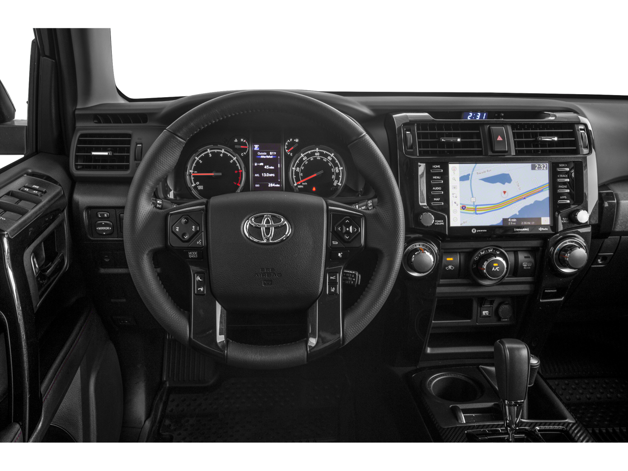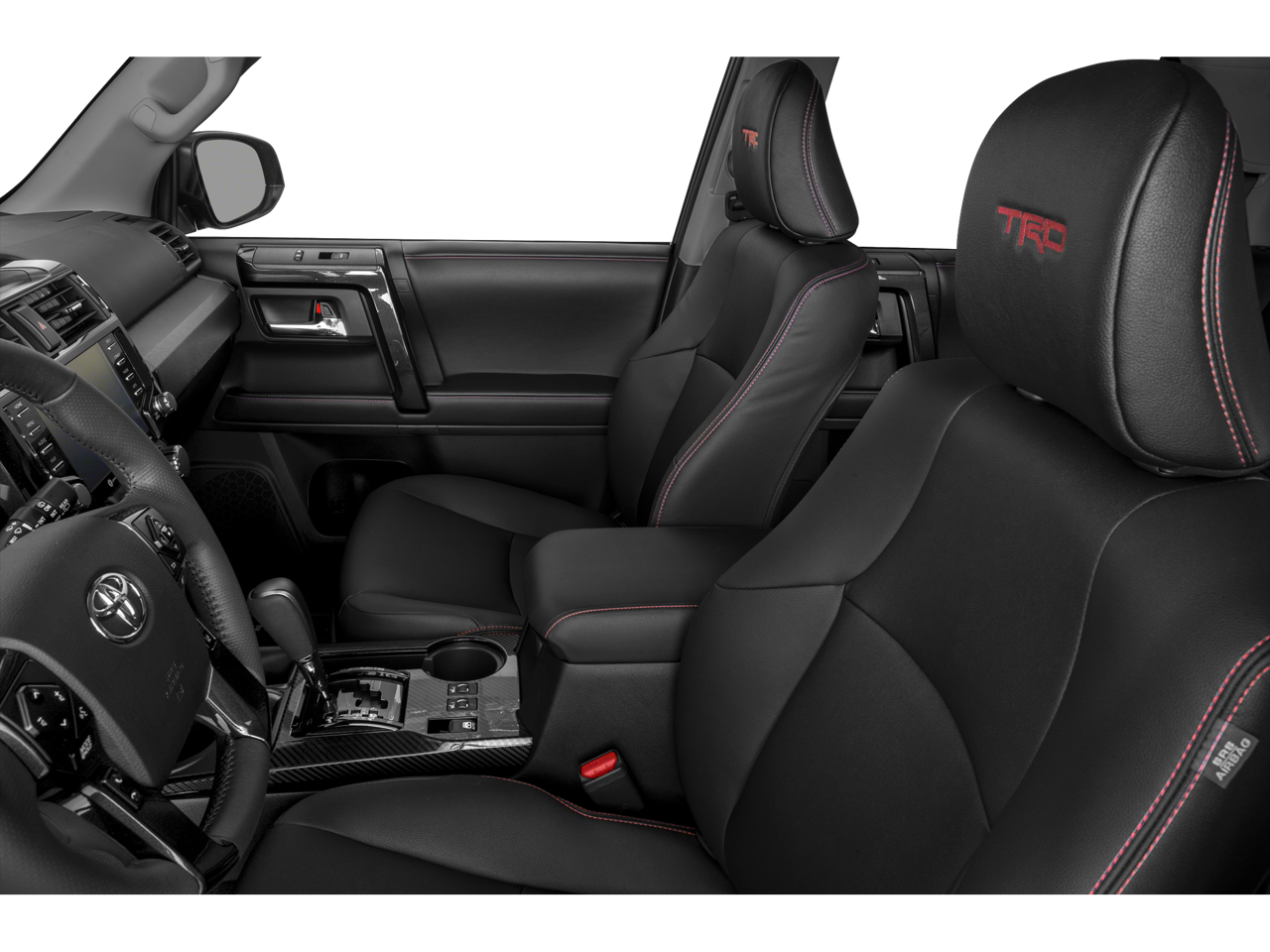 4WD, Black/Graphite w/Softex Synthetic Leather Seat Trim, 3.727 Axle Ratio, 4-Wheel Disc Brakes, 8 Speakers, ABS brakes, Air Conditioning, Alloy wheels, AM/FM radio: SiriusXM, Anti-whiplash front head restraints, Apple CarPlay/Android Auto, Auto High-beam Headlights, Auto-dimming Rear-View mirror, Black Roof Rails, Body Color Heated Mirrors, Brake assist, Bumpers: body-color, Compass, Driver door bin, Driver vanity mirror, Dual front impact airbags, Dual front side impact airbags, Electronic Stability Control, Emergency communication system: Safety Connect with 1-year trial, Exterior Parking Camera Rear, Front anti-roll bar, Front Bucket Seats, Front Center Armrest, Front fog lights, Front reading lights, Front wheel independent suspension, Garage Door Opener, Garage door transmitter: HomeLink, Heated door mirrors, Heated front seats, Illuminated entry, Knee airbag, Leather Shift Knob, Leather steering wheel, Low tire pressure warning, Navigation System, Occupant sensing airbag, Outside temperature display, Overhead airbag, Overhead console, Panic alarm, Passenger door bin, Passenger vanity mirror, Power door mirrors, Power driver seat, Power passenger seat, Power steering, Power windows, Radio: Premium Audio w/Dynamic Navigation, Rear anti-roll bar, Rear seat center armrest, Rear window defroster, Rear window wiper, Remote keyless entry, Roof rack, Security system, Softex Synthetic Leather Seat Trim, Speed control, Speed-sensing steering, Split folding rear seat, Spoiler, Steering wheel mounted audio controls, Tachometer, Telescoping steering wheel, Tilt steering wheel, Traction control, Trip computer, Turn signal indicator mirrors, Variably intermittent wipers, Wheels: 17 Matte Black Flow-Formed TRD Alloy, 4WD, Black/Graphite w/Softex Synthetic Leather Seat Trim.