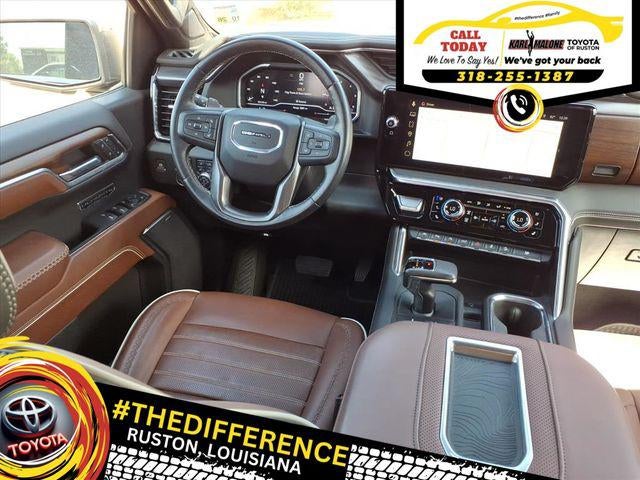 10-Speed Automatic, 4WD, Alpine Umber Leather, 12 Speakers, 120-Volt Bed Mounted Power Outlet, 120-Volt Instrument Panel Power Outlet, 16-Way Power Driver Seat Adjuster w/Lumbar, 16-Way Power Passenger Seat Adjuster w/Lumbar, 170 Amp Alternator, 2 Charge/Data USB Ports Inside Center Console, 2 Type-C Charge-Only Rear USB Ports, 2 USB Ports, 220 Amp Alternator, 3 Years of OnStar Safety & Security, 3.23 Rear Axle Ratio, 4-Wheel Disc Brakes, ABS brakes, Adaptive suspension, Air Conditioning, Alloy wheels, AM/FM radio: SiriusXM with 360L, Apple CarPlay/Android Auto, Auto High-beam Headlights, Auto-dimming door mirrors, Auto-dimming Rear-View mirror, Auto-Locking Rear Differential, Automatic Emergency Braking, Automatic temperature control, Bed View Camera, Bose Premium Series w/12-Speaker System, Brake assist, Buckle to Drive, Bumpers: body-color, Carbon Fiber Composite Bed, Chrome Recovery Hooks, Color-Keyed Carpeting Floor Covering, Compass, Deep-Tinted Glass, Delay-off headlights, Denali Premium Suspension w/Adaptive Ride Control, Driver door bin, Driver Memory, Driver vanity mirror, Dual front impact airbags, Dual front side impact airbags, Electric Rear-Window Defogger, Electrical Steering Column Lock, Electronic Stability Control, Emergency communication system: OnStar and GMC Connected Services capable, Engine Block Heater, Enhanced Automatic Emergency Braking, Floor-Mounted Center Console, Following Distance Indicator, Forward Collision Alert, Front anti-roll bar, Front Bucket Seats, Front Center Armrest, Front dual zone A/C, Front fog lights, Front License Plate Kit, Front Pedestrian Braking, Front Rainsensing Wipers, Front reading lights, Front wheel independent suspension, Full Grain Leather Seat Trim, Fully automatic headlights, Garage door transmitter, Genuine wood console insert, Genuine wood dashboard insert, Genuine wood door panel insert, GMC Connected Access Capable, HD Surround Vision, Heads-Up Display, Heated 2nd Row Outboard Seats, Heated door mirrors, Heated Driver & Front Outboard Passenger Seating, Heated front seats, Heated rear seats, Heated steering wheel, Heavy-Duty Air Filter, Hill Descent Control, Hitch Guidance, Hitch Guidance w/Hitch View, Illuminated entry, In-Vehicle Trailering App, Integrated Trailer Brake Controller, IntelliBeam Automatic High Beam On/Off, Keyless Open & Start, Lane Keep Assist w/Lane Departure Warning, LED Cargo Area Lighting, Low tire pressure warning, Memory seat, Multicolor 15 Diagonal Head-Up Display, MultiPro Audio System by Kicker (LPO), Navigation System, Not Equipped w/Steering Column Lock, Not Equipped w/Super Cruise/Auto Emergency Braking, Occupant sensing airbag, OnStar & GMC Connected Services Capable, Outside temperature display, Overhead airbag, Overhead console, Panic alarm, Passenger door bin, Passenger vanity mirror, Perimeter Lighting, Power Door Locks, Power door mirrors, Power driver seat, Power Front Passenger Windows w/Express Up/Down, Power Front Windows w/Driver Express Up/Down, Power moonroof, Power passenger seat, Power Rake & Telescoping Steering Column, Power Rear Windows w/Express Down, Power Sliding Rear Window w/Rear Defogger, Power steering, Power Sunroof, Power windows, Preferred Equipment Group 5SB, Premium audio system: GMC Infotainment System, Push Button Start, Radio data system, Radio: Premium GMC Infotainment Audio System, Rain sensing wipers, Rear Cross Traffic Braking, Rear Pedestrian Detection, Rear reading lights, Rear seat center armrest, Rear step bumper, Rear window defroster, Remote keyless entry, Remote Vehicle Starter System, Safety Alert Seat, Security system, SiriusXM w/360L, Speed control, Speed-sensing steering, Split folding rear seat, Steering Wheel Audio Controls, Steering wheel mounted audio controls, Super Cruise, Tachometer, Telescoping steering wheel, Theft Deterrent System (Unauthorized Entry), Tilt steering wheel, Tract
