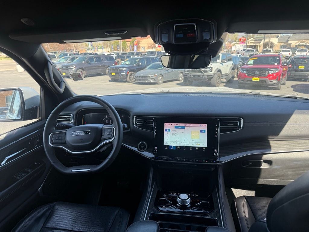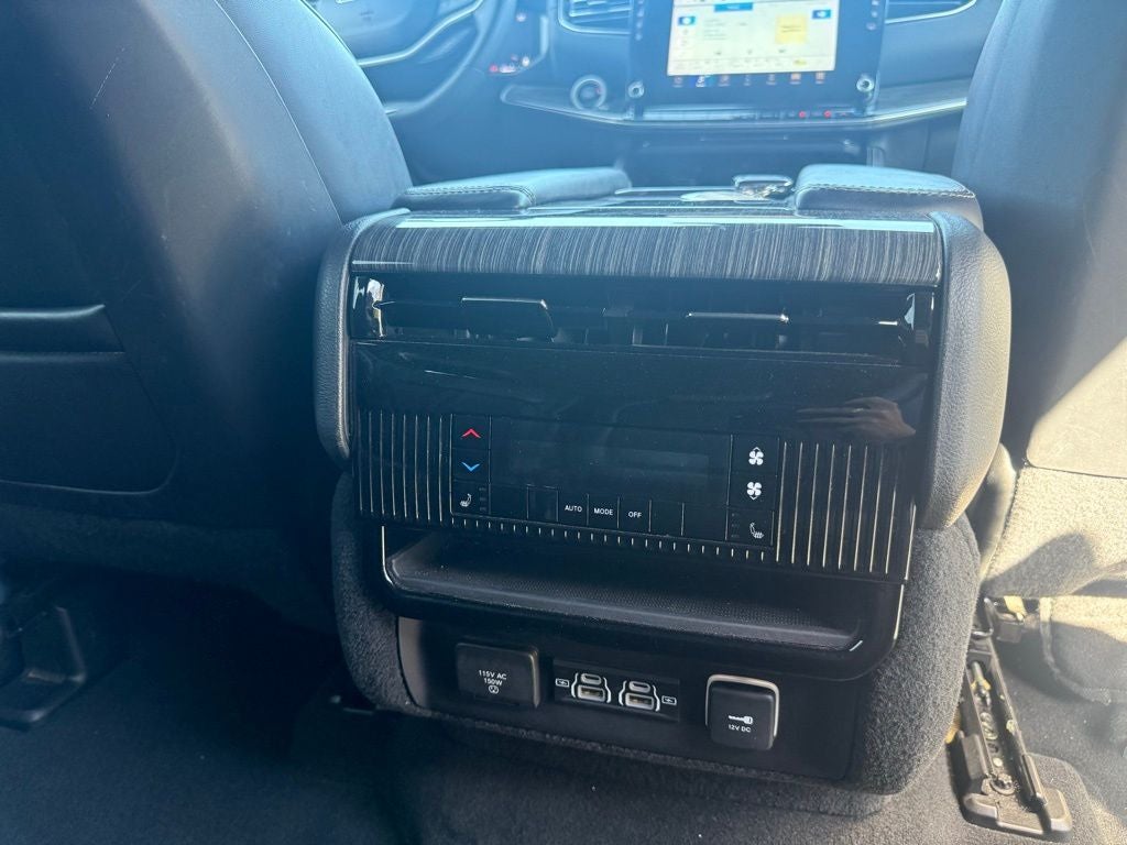 10 Speakers, 3.21 Rear Axle Ratio, 3rd row seats: bench, 4-Wheel Disc Brakes, ABS brakes, Adjustable pedals, Air Conditioning, Alloy wheels, AM/FM radio: SiriusXM with 360L, Anti-whiplash front head restraints, Audio memory, Auto High-beam Headlights, Auto-dimming door mirrors, Auto-dimming Rear-View mirror, Auto-leveling suspension, Automatic temperature control, Brake assist, Bumpers: body-color, Compass, Delay-off headlights, Driver door bin, Driver vanity mirror, Driver's Seat Mounted Armrest, Dual front impact airbags, Dual front side impact airbags, Electronic Stability Control, Exterior Parking Camera Rear, Four wheel independent suspension, Front anti-roll bar, Front Bucket Seats, Front Center Armrest w/Storage, Front dual zone A/C, Front fog lights, Front reading lights, Fully automatic headlights, Garage door transmitter, Genuine wood console insert, Genuine wood dashboard insert, Genuine wood door panel insert, Heads-Up Display, Heated door mirrors, Heated front seats, Heated rear seats, Heated steering wheel, Illuminated entry, Knee airbag, Leather Trimmed Bucket Seats, Low tire pressure warning, Memory seat, Navigation System, Normal Duty Suspension, Occupant sensing airbag, Outside temperature display, Overhead airbag, Overhead console, Panic alarm, Passenger door bin, Passenger seat mounted armrest, Passenger vanity mirror, Pedal memory, Power adjustable front head restraints, Power door mirrors, Power driver seat, Power Liftgate, Power passenger seat, Power steering, Power windows, Quick Order Package 22N, Radio data system, Radio: Uconnect 5 Nav w/10.1 Display, Rain sensing wipers, Rear air conditioning, Rear anti-roll bar, Rear dual zone A/C, Rear reading lights, Rear seat center armrest, Rear window defroster, Rear window wiper, Reclining 3rd row seat, Remote keyless entry, Security system, Speed control, Speed-sensing steering, Speed-Sensitive Wipers, Split folding rear seat, Steering wheel memory, Steering wheel mounted audio controls, Tachometer, Telescoping steering wheel, Tilt steering wheel, Traction control, Trip computer, Turn signal indicator mirrors, Variably intermittent wipers, Ventilated front seats, Voltmeter, Wheels: 20 x 9.0 Premium 2 Aluminum.