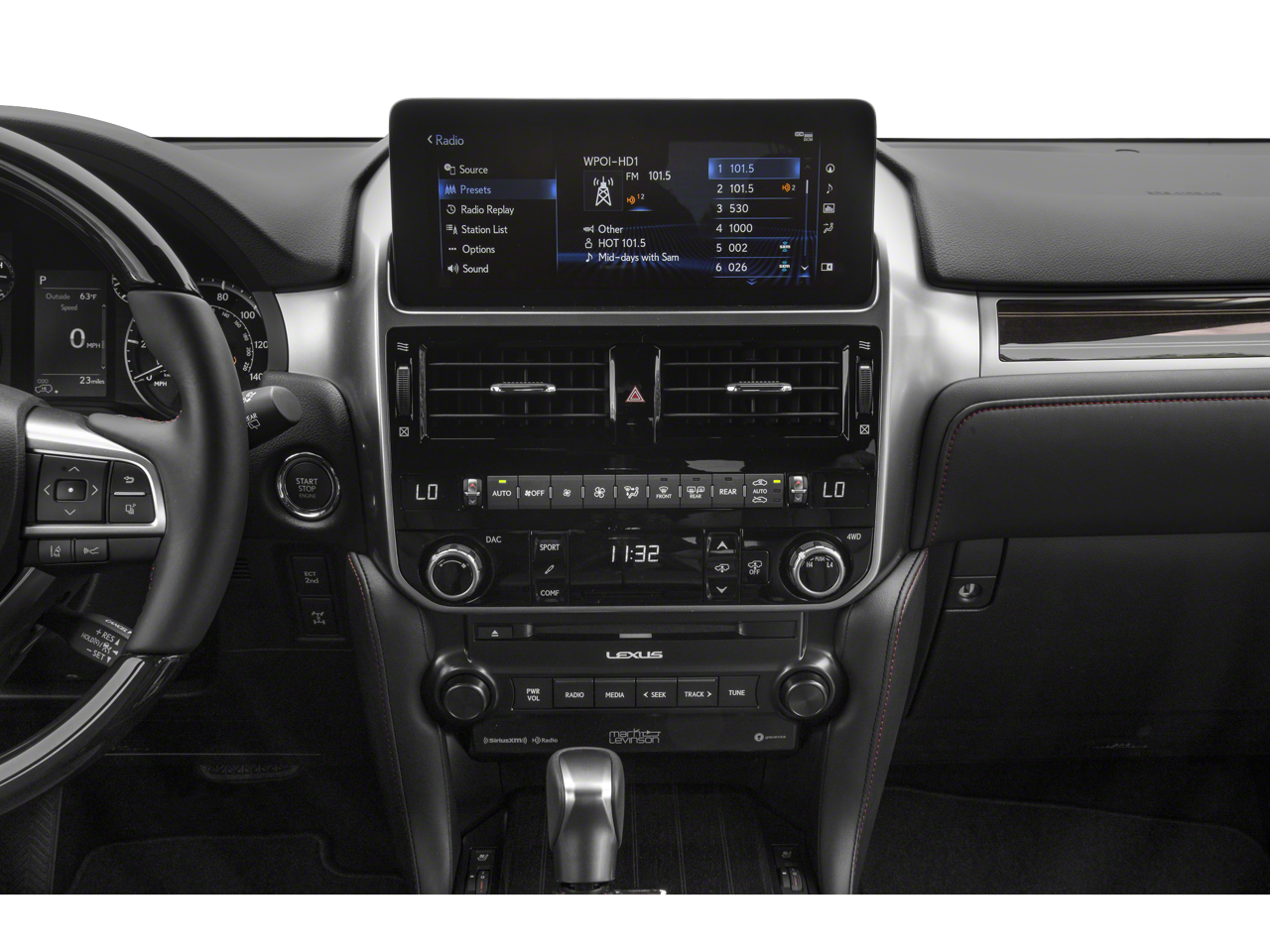 18 x 7.5J Aluminum Alloy Wheels, 3.909 Axle Ratio, 3rd row seats: split-bench, 4-Wheel Disc Brakes, 9 Speakers, ABS brakes, Air Conditioning, Alloy wheels, AM/FM radio: SiriusXM, Anti-whiplash front head restraints, Apple CarPlay/Android Auto, Auto High-beam Headlights, Auto tilt-away steering wheel, Auto-dimming Rear-View mirror, Automatic temperature control, Brake assist, Bumpers: body-color, CD player, Compass, Delay-off headlights, Driver door bin, Driver vanity mirror, Driver's Seat Mounted Armrest, Dual front impact airbags, Dual front side impact airbags, Electronic Stability Control, Emergency communication system, Exterior Parking Camera Rear, Front anti-roll bar, Front Bucket Seats, Front dual zone A/C, Front reading lights, Front wheel independent suspension, Fully automatic headlights, Garage door transmitter: HomeLink, Heated door mirrors, Illuminated entry, Illuminated running boards, Knee airbag, Leather Shift Knob, Leather steering wheel, Low tire pressure warning, Memory seat, Navigation System, NuLuxe Synthetic Leather Seat Trim, Occupant sensing airbag, Outside temperature display, Overhead airbag, Overhead console, Panic alarm, Passenger door bin, Passenger seat mounted armrest, Passenger vanity mirror, Power door mirrors, Power driver seat, Power moonroof, Power passenger seat, Power steering, Power windows, Radio data system, Radio: Lexus Multimedia System, Rear anti-roll bar, Rear reading lights, Rear seat center armrest, Rear side impact airbag, Rear window defroster, Rear window wiper, Remote keyless entry, Roof rack: rails only, Security system, Speed control, Speed-sensing steering, Split folding rear seat, Spoiler, Steering wheel memory, Steering wheel mounted audio controls, Tachometer, Telescoping steering wheel, Tilt steering wheel, Traction control, Trip computer, Turn signal indicator mirrors, Variably intermittent wipers.
