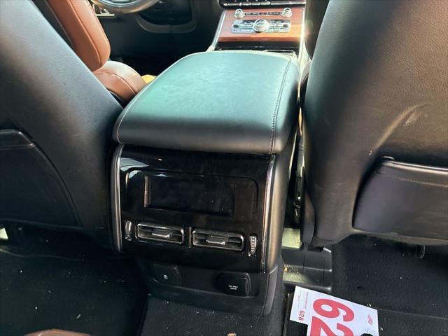 14 Speakers, 2nd Row Bench Seat, 3.58 Axle Ratio, 30-Way Perfect Position Seats w/Active Motion, 3rd row seats: split-bench, 4-Wheel Disc Brakes, ABS brakes, Active Park Assist 2.0, Adaptive Suspension, Air Conditioning, Alloy wheels, AM/FM radio: SiriusXM, Audio memory, Auto Air Refresh, Auto Heated/Ventilated Driver & Passenger Seats, Auto High-beam Headlights, Auto-dimming door mirrors, Auto-dimming Rear-View mirror, Automatic temperature control, Body-Color Exterior Elements (DISC), Brake assist, Bumpers: body-color, Cargo Area Cover, Compass, Delay-off headlights, Driver door bin, Driver vanity mirror, Dual front impact airbags, Dual front side impact airbags, Electronic Stability Control, Elements Package Plus, Emergency communication system, Equipment Group 201A, Evasive Steering Assist, Four wheel independent suspension, Front anti-roll bar, Front Bucket Seats, Front Center Armrest, Front dual zone A/C, Front fog lights, Front reading lights, Fully automatic headlights, Garage door transmitter, Head-Up Display, Heated door mirrors, Heated front seats, Heated Steering Wheel, Heated VisioBlade Wipers, Heated/Ventilated 2nd Row Outboard Seats, HVAC memory, Illuminated entry, Intelligent Adaptive Cruise Control, Knee airbag, Leather steering wheel, Lincoln Co-Pilot360 1.5 Plus, Low tire pressure warning, Luxury Package, Memory seat, Monochromatic Package (DISC), Navigation System, Occupant sensing airbag, Outside temperature display, Overhead airbag, Overhead console, Panic alarm, Passenger door bin, Passenger vanity mirror, Phone As A Key, Power door mirrors, Power driver seat, Power Liftgate, Power moonroof: Panoramic Vista Roof, Power passenger seat, Power steering, Power windows, Premium Lthr Heated/Ventilated Fnt Captain's Chairs, Radio data system, Radio: Revel AM/FM Audio System w/14 Speakers, Radio: Revel Ultima 3D Audio System w/28 Speakers, Rain sensing wipers, Rear air conditioning, Rear anti-roll bar, Rear audio controls, Rear Door Sunshades, Rear dual zone A/C, Rear reading lights, Rear window defroster, Rear window wiper, Remote keyless entry, Reverse Brake Assist, Security system, SiriusXM Radio, Speed control, Speed-Sensitive Wipers, Split folding rear seat, Spoiler, Steering wheel memory, Steering wheel mounted A/C controls, Steering wheel mounted audio controls, SYNC 3 Communication & Entertainment System, Tachometer, Telescoping steering wheel, Tilt steering wheel, Traction control, Trip computer, Turn signal indicator mirrors, Variably intermittent wipers, Wheels: 20 Bright-Machined Aluminum, Wheels: 22 Black Aluminum.
