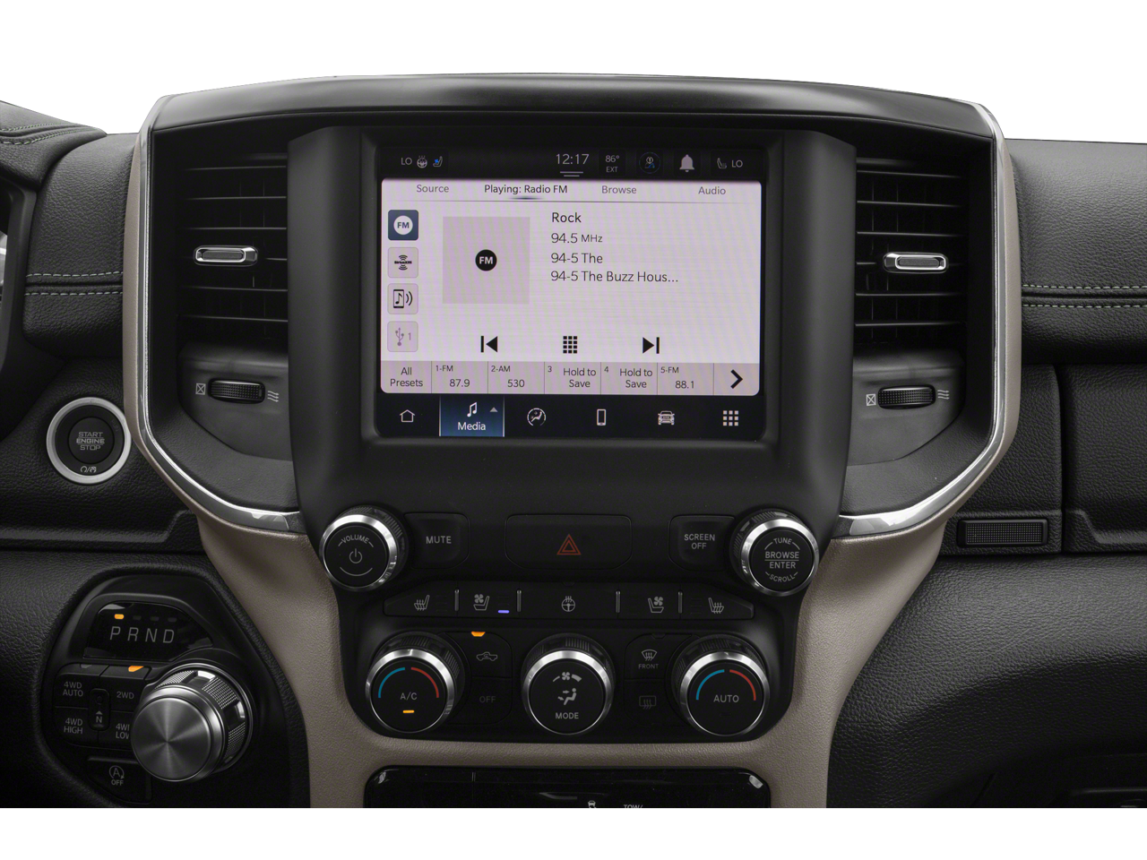 #1 Seat Foam Cushion, 10 Speakers, 12 Touchscreen Display, 2nd Row In Floor Storage Bins, 3 Rear Seat Head Restraints, 33 Gallon Fuel Tank, 4 Way Front Headrests, 4-Corner Air Suspension, 4-Wheel Disc Brakes, 48V Belt Starter Generator, 4G LTE Wi-Fi Hot Spot, 8.4 Touchscreen Display, ABS brakes, Adaptive Cruise Control w/Stop & Go, Adjustable pedals, Advanced Safety Group, Air Conditioning, All Plant-Installed Decals, All R1 High Radios, All Radio Equipped Vehicles, Alloy wheels, AM/FM radio: SiriusXM, Apple CarPlay, Apple CarPlay/Android Auto, Audio memory, Auto High Beam Headlamp Control, Auto-dimming door mirrors, Auto-Dimming Exterior Driver Mirror, Auto-dimming Rear-View mirror, Automatic temperature control, Bed Utility Group, Blind Spot & Cross Path Detection, Brake assist, Bumpers: chrome, Chrome Exterior Mirrors, Compass, Connected Travel & Traffic Services, Connectivity - US/Canada, Convex Wide-Angle Mirror Insert, Delay-off headlights, Disassociated Touchscreen Display, Dome Dual LED Reading Lamp, Driver door bin, Driver Seat Memory, Driver vanity mirror, Dual front impact airbags, Dual front side impact airbags, Dual-Pane Panoramic Sunroof, E-Locker Rear Axle, Electronic Stability Control, Exterior 115V AC Outlet, Exterior Mirrors Courtesy Lamps, Exterior Mirrors w/Heating Element, Exterior Mirrors w/Memory, Exterior Mirrors w/Supplemental Signals, Foam Bottle Insert (Door Trim Panel), For Details, Visit DriveUconnect.com, For More Info, Call 800-643-2112, Front anti-roll bar, Front Center Armrest w/Storage, Front dual zone A/C, Front Extra HD Shock Absorbers, Front fog lights, Front License Plate Bracket, Front reading lights, Front Seat Back Map Pockets, Front wheel independent suspension, Fully automatic headlights, Garage door transmitter, Global Telematics Box Module (TBM), Google Android Auto, GPS Antenna Input, GPS Navigation, HD Radio, Heated door mirrors, Heated Front Seats, Heated front seats, Heated Second Row Seats, Heated Steering Wheel, Heated steering wheel, Heavy-Duty Engine Cooling, Hill Descent Control, Illuminated entry, Integrated Center Stack Radio, Integrated Voice Command w/Bluetooth®, Lane Keep Assist, Laramie Level 2 Equipment Group (DISC), Leather steering wheel, Leather Trim 40/20/40 Bench Seat, LED Dome/Reading Lamp, Low tire pressure warning, Manufacturer's Statement of Origin, Memory seat, MOPAR 4 Adjustable Cargo Tie-Down Hooks, MOPAR Front & Rear Rubber Floor Mats, Occupant sensing airbag, Off Road Decals, Off Road Group, Off-Road Information Pages, Outside temperature display, Overhead airbag, Overhead console, Panic alarm, Parallel & Perp Park Assist w/Stop, ParkSense Front/Rear Park Assist w/Stop, ParkView Rear Back-Up Camera, Passenger door bin, Passenger vanity mirror, Pedal memory, Pedestrian Emergency Braking, Pick-Up Box Lighting, Power 2-Way Driver Lumbar Adjust, Power 2-Way Passenger Lumbar Adjust, Power 8-Way Driver & Passenger Seats, Power door mirrors, Power driver seat, Power passenger seat, Power Running Boards, Power steering, Power windows, Power-Folding Mirrors, Quick Order Package 25H Laramie, Radio data system, Radio: Uconnect 5 Nav w/12.0 Display, Radio: Uconnect 5 Nav w/8.4 Display, Radio: Uconnect 5 W w/8.4 Display, Rain Sensitive Windshield Wipers, Raised Ride Height, RamBox Cargo Management System, Rear 60/40 Folding Seat, Rear 60/40 Folding Split Recline Seat, Rear anti-roll bar, Rear Extra HD Shock Absorbers, Rear seat center armrest, Rear step bumper, Rear Underseat Compartment Storage (DISC), Rear Wheelhouse Liners, Rear window defroster, Remote keyless entry, Remote Tailgate Release, Security system, SiriusXM Radio Service, SiriusXM w/360L, Speed control, Split folding rear seat, Steering wheel mounted audio controls, Surround View Camera System, Tachometer, Tailgate Ajar Warning Lamp, Telescoping steering