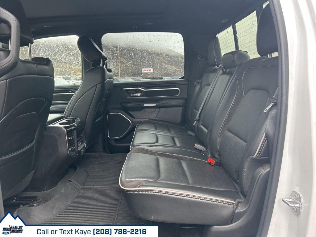 #1 Seat Foam Cushion, 10 Speakers, 12 Touchscreen Display, 2nd Row In Floor Storage Bins, 3 Rear Seat Head Restraints, 3.21 Rear Axle Ratio, 4 Way Front Headrests, 4-Wheel Disc Brakes, 48V Belt Starter Generator, 4G LTE Wi-Fi Hot Spot, 8.4 Touchscreen Display, ABS brakes, Accent Color Premium Power Mirrors, Adjustable pedals, Air Conditioning, All R1 High Radios, All Radio Equipped Vehicles, Alloy wheels, AM/FM radio: SiriusXM, Anti-Spin Differential Rear Axle, Apple CarPlay, Apple CarPlay/Android Auto, Audio memory, Auto High Beam Headlamp Control, Auto-dimming door mirrors, Auto-Dimming Exterior Driver Mirror, Auto-dimming Rear-View mirror, Automatic temperature control, Bed Utility Group, Black Exterior Truck Badging, Black Headlamp Bezels, Black Interior Accents, Black Painted Exterior Mirrors Caps, Blind Spot & Cross Path Detection, Body Color Door Handles, Body Color Front Bumper, Body Color Rear Bumper w/Step Pads, Brake assist, Bucket Seats, Bumpers: chrome, Chrome Exterior Mirrors, Compass, Connected Travel & Traffic Services, Connectivity - US/Canada, Convex Wide-Angle Mirror Insert, Delay-off headlights, Delete LED Lamp - Floor Console Bin, Disassociated Touchscreen Display, Dome Dual LED Reading Lamp, Driver door bin, Driver Seat Memory, Driver vanity mirror, Dual Exhaust w/Black Tips, Dual front impact airbags, Dual front side impact airbags, Dual-Pane Panoramic Sunroof, Electronic Stability Control, Exterior Mirrors Courtesy Lamps, Exterior Mirrors w/Heating Element, Exterior Mirrors w/Memory, Exterior Mirrors w/Supplemental Signals, Foam Bottle Insert (Door Trim Panel), For Details, Visit DriveUconnect.com, For More Info, Call 800-643-2112, Front anti-roll bar, Front Center Armrest w/Storage, Front dual zone A/C, Front fog lights, Front License Plate Bracket, Front reading lights, Front Seat Back Map Pockets, Front wheel independent suspension, Full Length Upgraded Floor Console, Fully automatic headlights, Garage door transmitter, Global Telematics Box Module (TBM), Google Android Auto, GPS Antenna Input, GPS Navigation, Grille Surround 3 Black Texture 2 Black, HD Radio, Heated door mirrors, Heated Front Seats, Heated front seats, Heated Steering Wheel, Heated steering wheel, Heavy-Duty Engine Cooling, Illuminated entry, Integrated Center Stack Radio, Integrated Voice Command w/Bluetooth®, Laramie Level II Equipment Group, Leather steering wheel, Leather Trim 40/20/40 Bench Seat, Leather Trimmed Bucket Seats, LED Dome/Reading Lamp, Low tire pressure warning, Memory seat, MOPAR 4 Adjustable Cargo Tie-Down Hooks, Mopar Black Tubular Side Steps, MOPAR Front & Rear Rubber Floor Mats, Night Edition, Occupant sensing airbag, Outside temperature display, Overhead airbag, Overhead console, Panic alarm, ParkSense Front/Rear Park Assist w/Stop, ParkView Rear Back-Up Camera, Passenger door bin, Passenger vanity mirror, Pedal memory, Pick-Up Box Lighting, Power 2-Way Driver Lumbar Adjust, Power 2-Way Passenger Lumbar Adjust, Power 8-Way Driver & Passenger Seats, Power door mirrors, Power driver seat, Power passenger seat, Power steering, Power windows, Power-Folding Mirrors, Quick Order Package 27H Laramie, Radio data system, Radio: Uconnect 5 Nav w/12.0 Display, Radio: Uconnect 5 Nav w/8.4 Display, Radio: Uconnect 5 W w/8.4 Display, Rain Sensitive Windshield Wipers, Rear 60/40 Folding Seat, Rear anti-roll bar, Rear seat center armrest, Rear step bumper, Rear Underseat Compartment Storage (DISC), Rear window defroster, Remote keyless entry, Remote Tailgate Release, Security system, SiriusXM Radio Service, SiriusXM w/360L, Speed control, Split folding rear seat, Sport Performance Hood, Steering wheel mounted audio controls, Tachometer, Telescoping steering wheel, Tilt steering wheel, Traction control, Trailer Brake Control, Trip computer, Turn signal indicator mirrors, Twill F